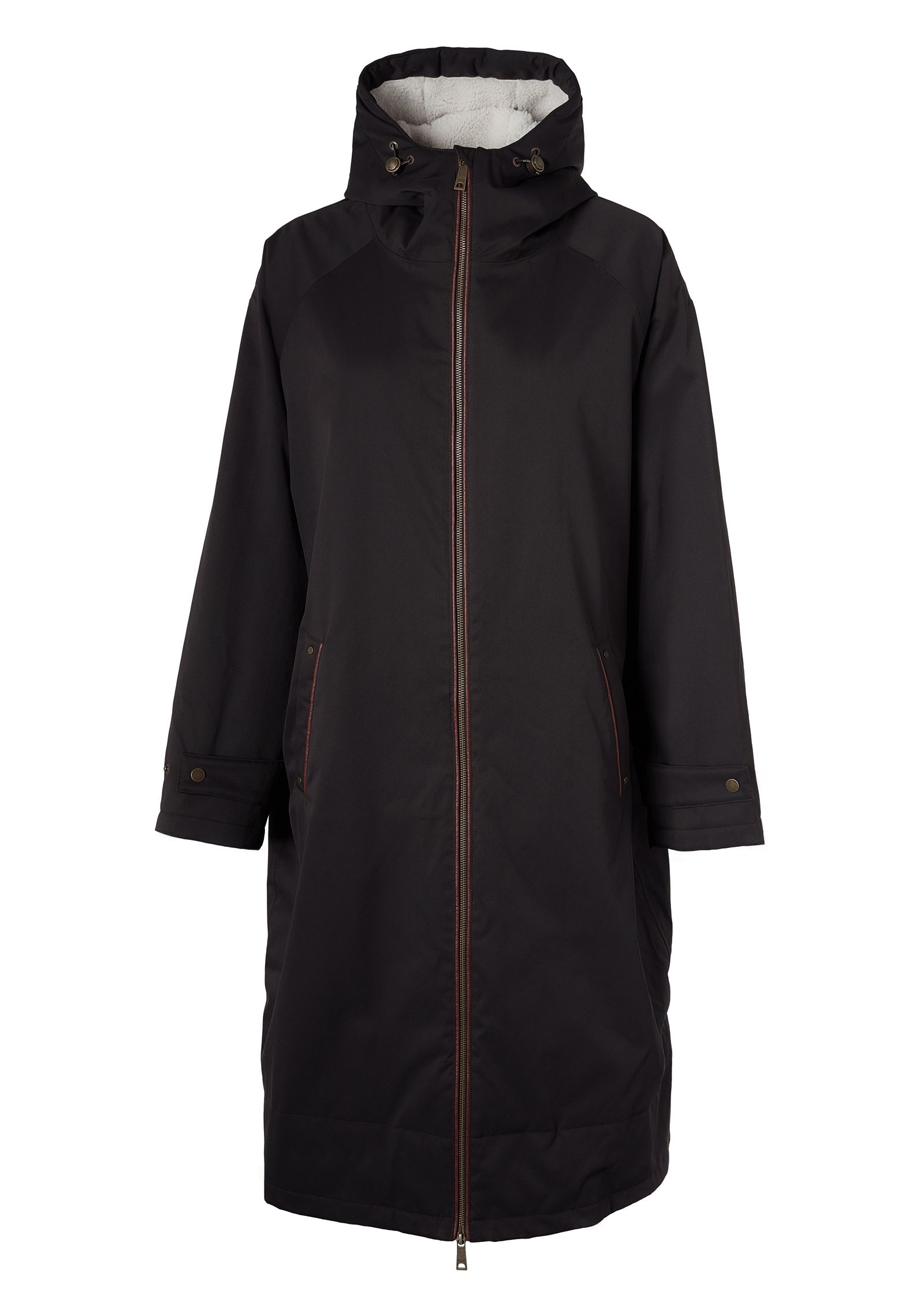 A must-have for the discerning adventurer, this super oversized coat boasts over-knee length for maximum coverage, ensuring you stay stylish and protected in any weather. Crafted with a waterproof outer shell fabric and fully taped waterproof seams, the full zip closure and cuff adjustment provides both functionality and versatility. With a borg lined hood with welt pockets to the front, the faux leather piping enhances this practical piece.