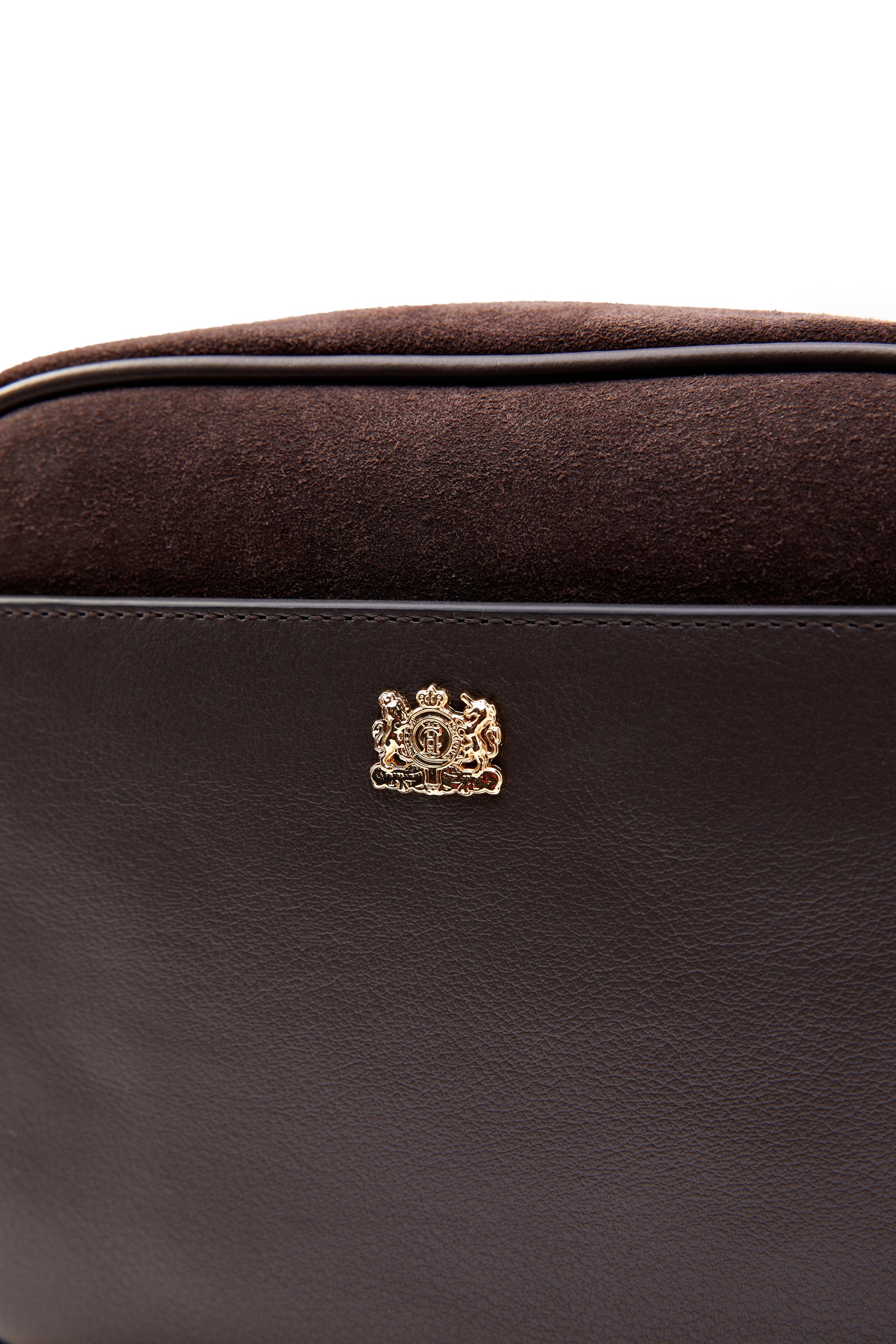 Designed with a classic camera bag shape from premium suede with leather detailing, this bag has been created with a sleek compact profile for ensuring your valuables are kept safe. With an elegant chain shoulder strap with HC trim & bold HC logo to the front.