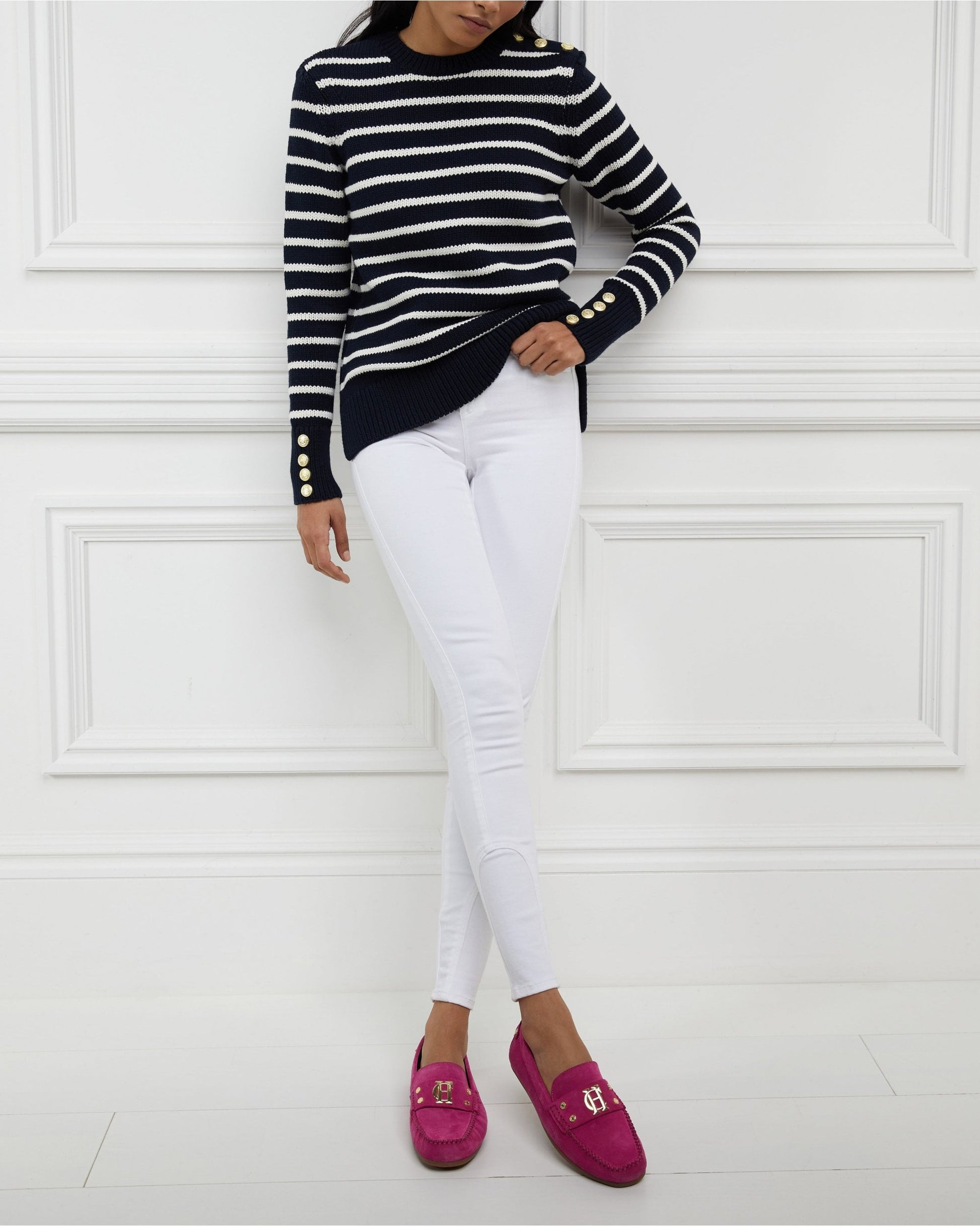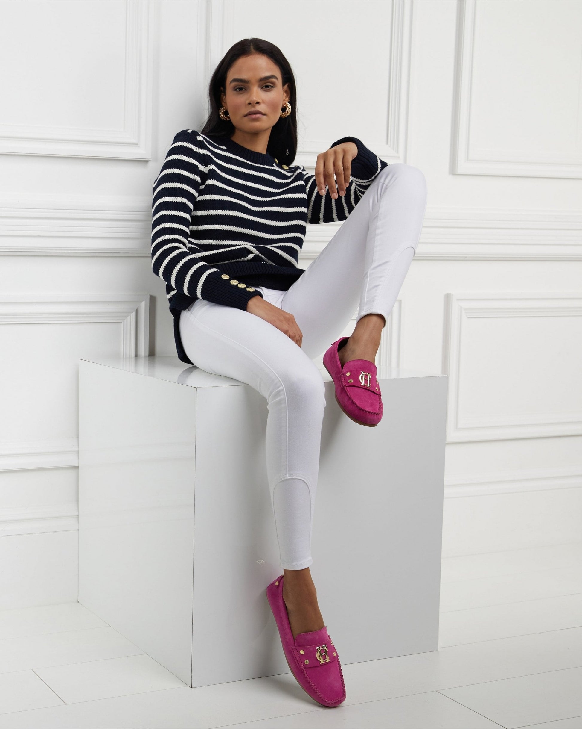 The ultimate driving shoe, these loafers have been created from a supple suede leather and reinforced with a traditional grip sole. Hand stitched and detailed with HC iconic hardware, these shoes are both practical and stylish.