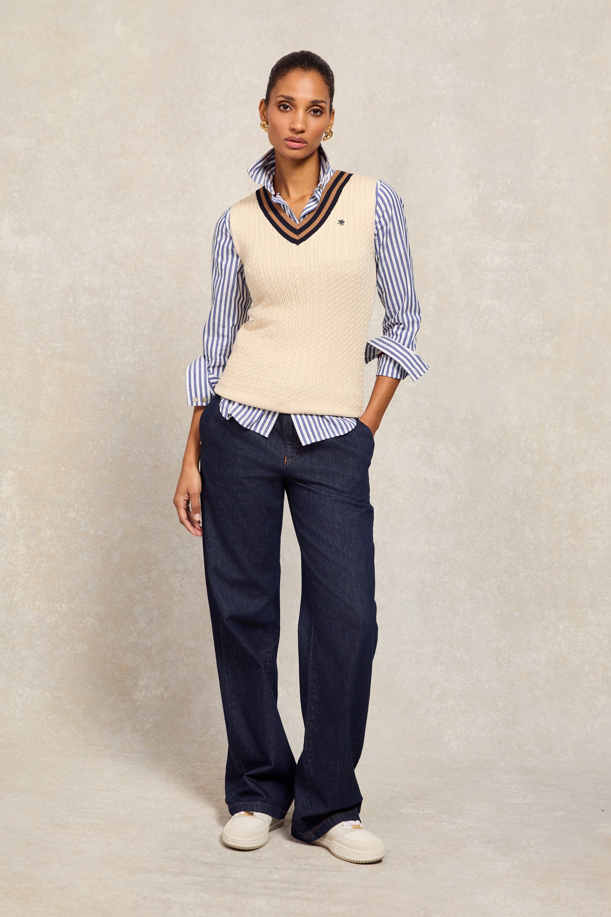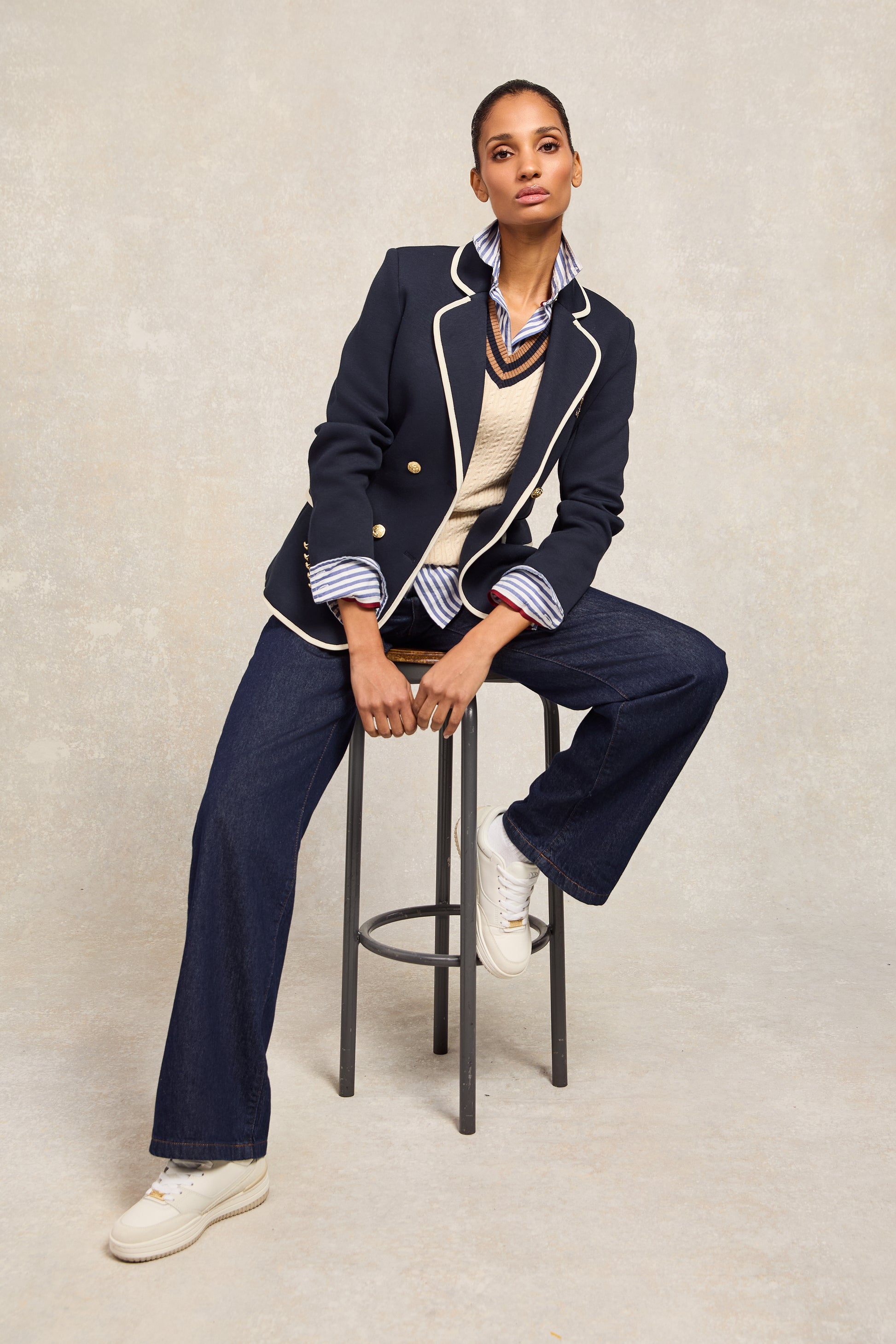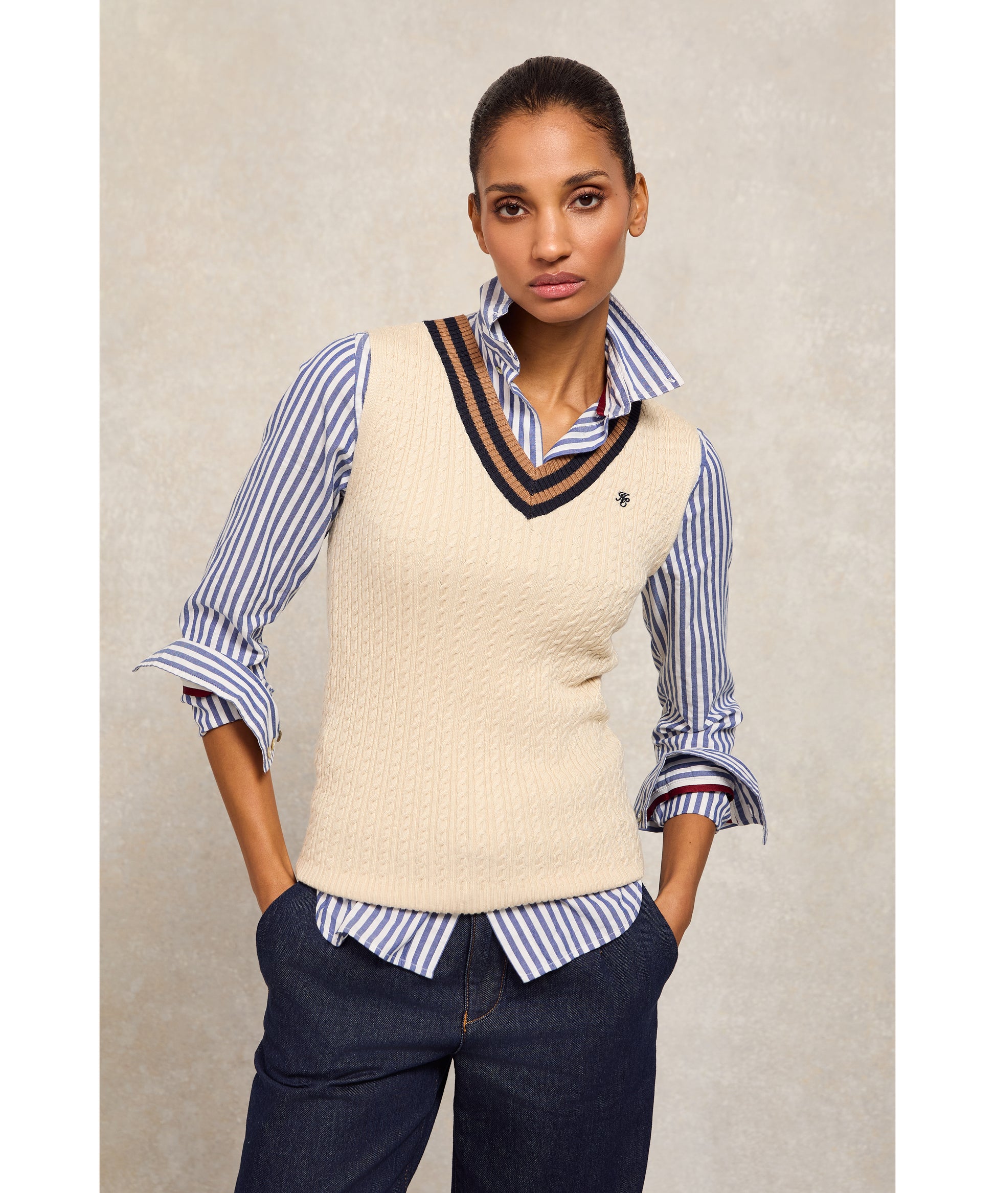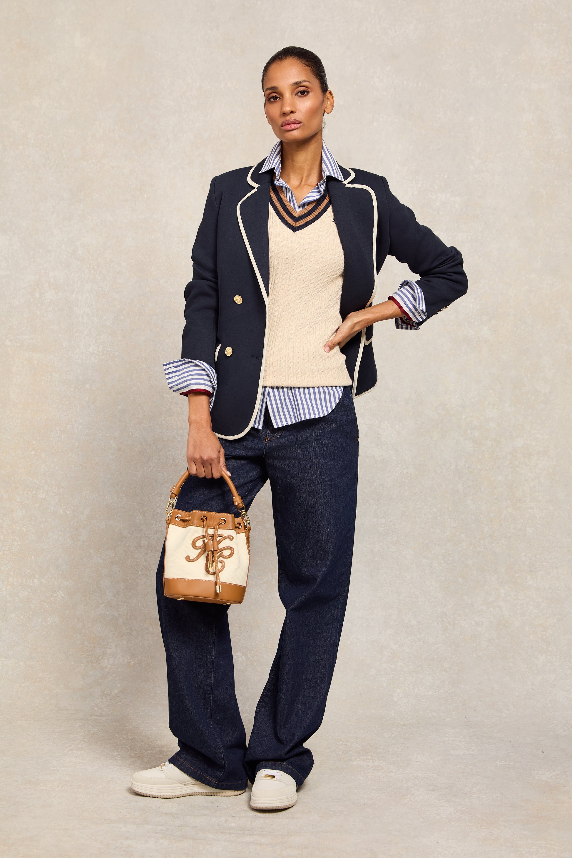 This slim-fitting long-sleeve polo epitomizes refined elegance with its delicate cabling detail, enhancing the garment's texture and depth. The contrasting collar and placket add a sharp, modern edge, while the branded shell buttons inject a touch of classic sophistication. Highlighting our attention to detail, the contrast HC embroidery on the chest and the chic double stripe on the cuff and collar elevate this piece into the realm of timeless style. Finished with our signature gold hardware.
