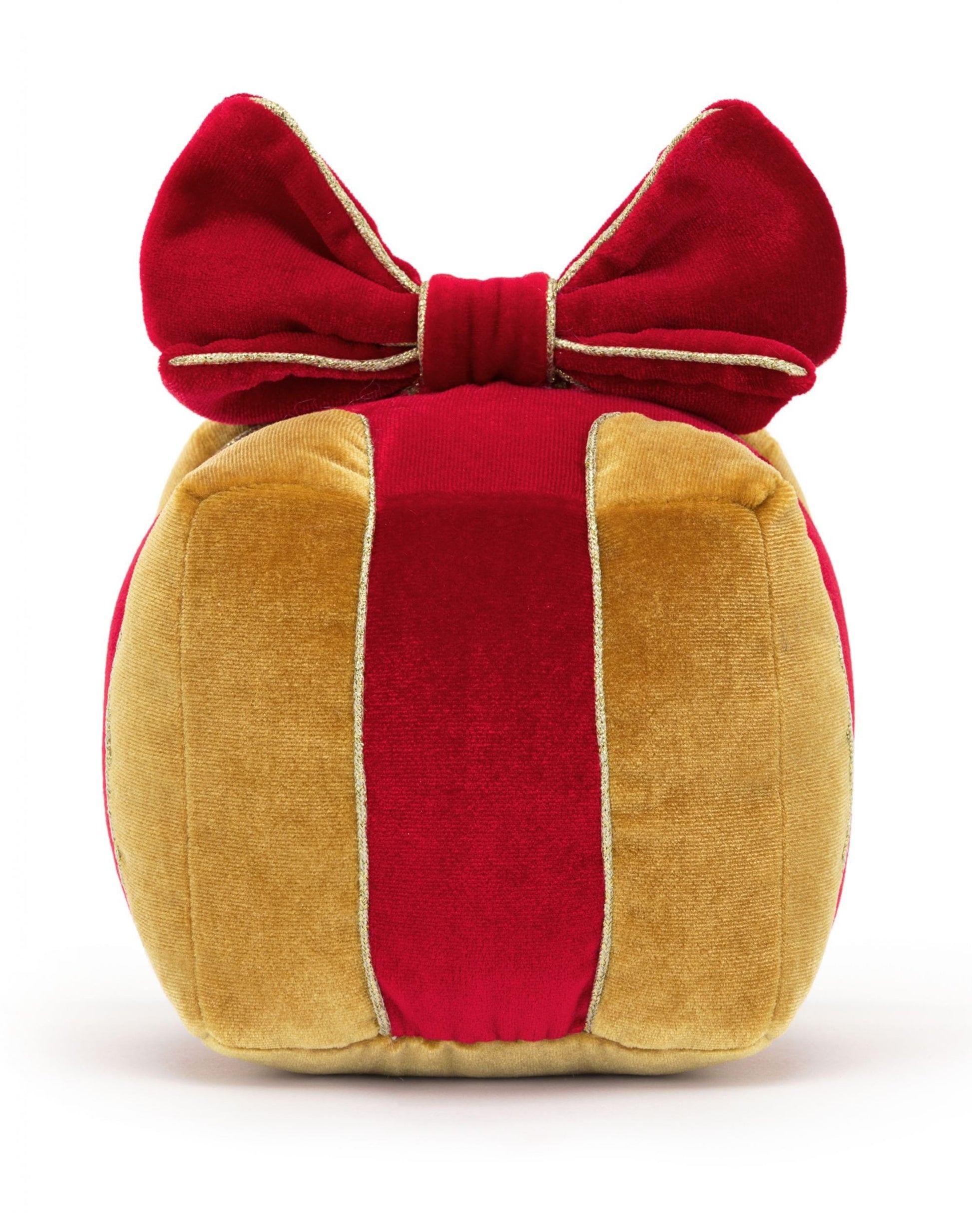 Give the gift of year-round cuddles with Amuseable Present! Snuggly soft in gold velvety fur, this pretty present is all tied up in a red velvety ribbon with gold edging; and cocoa cordy boots make it perfect for Pass the Parcel!