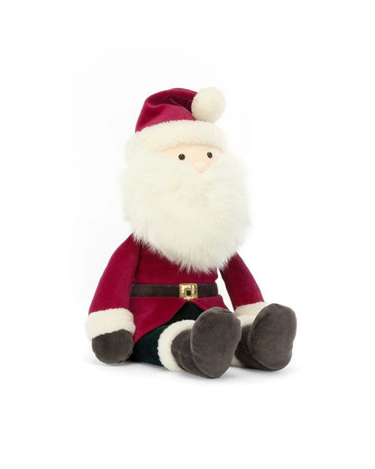 Jolly Santa is ready for Christmas Eve! With a rich berry coat and matching hat, fluffy cream cuffs, a snowy pompom, charcoal boots and a soft gold belt buckle, Santa's ready to fly!