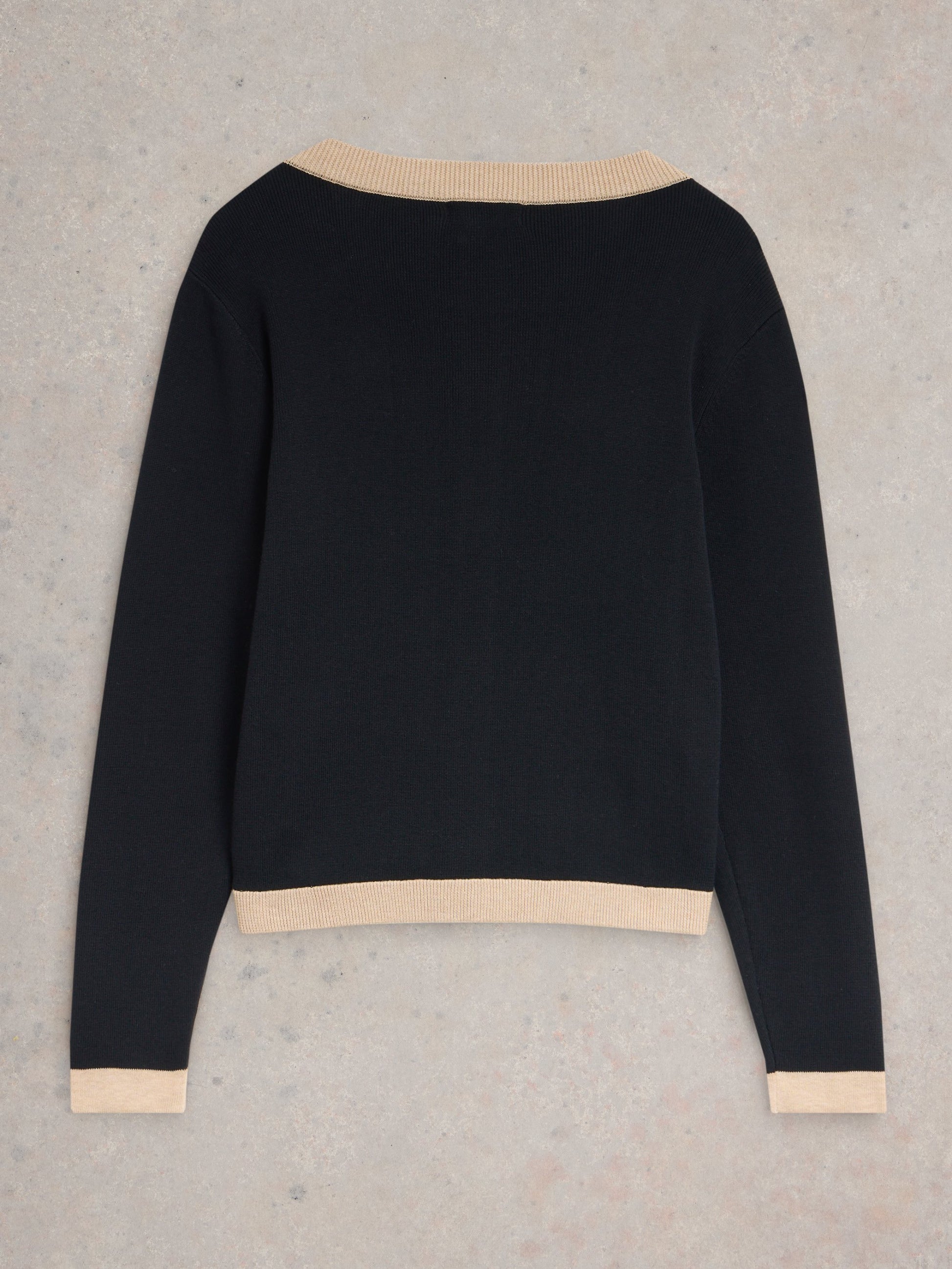 This is a smart choice. 100% organic cotton. Classic cardigan shape. With cute, fake pockets and contrast tipping that give it a polished look. It’s like your cardi just got a promotion.