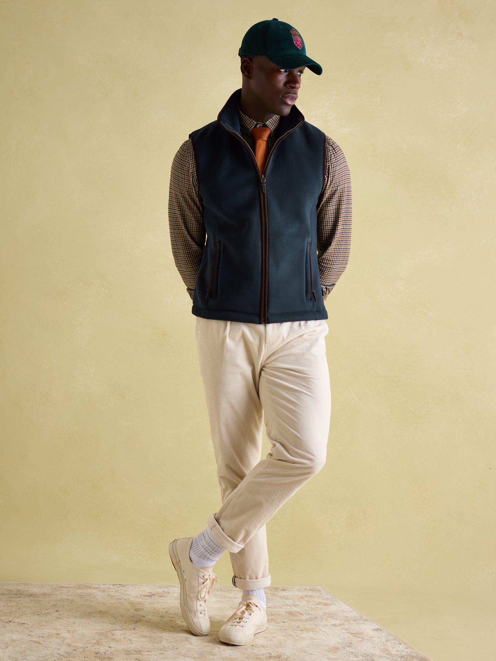 Worn over a shirt or a jumper (or both) this fleece gilet will cut a practical dash, whilst freeing your arms for clambering over stiles, foraging for autumn fruits or plundering the farm shop with ease.