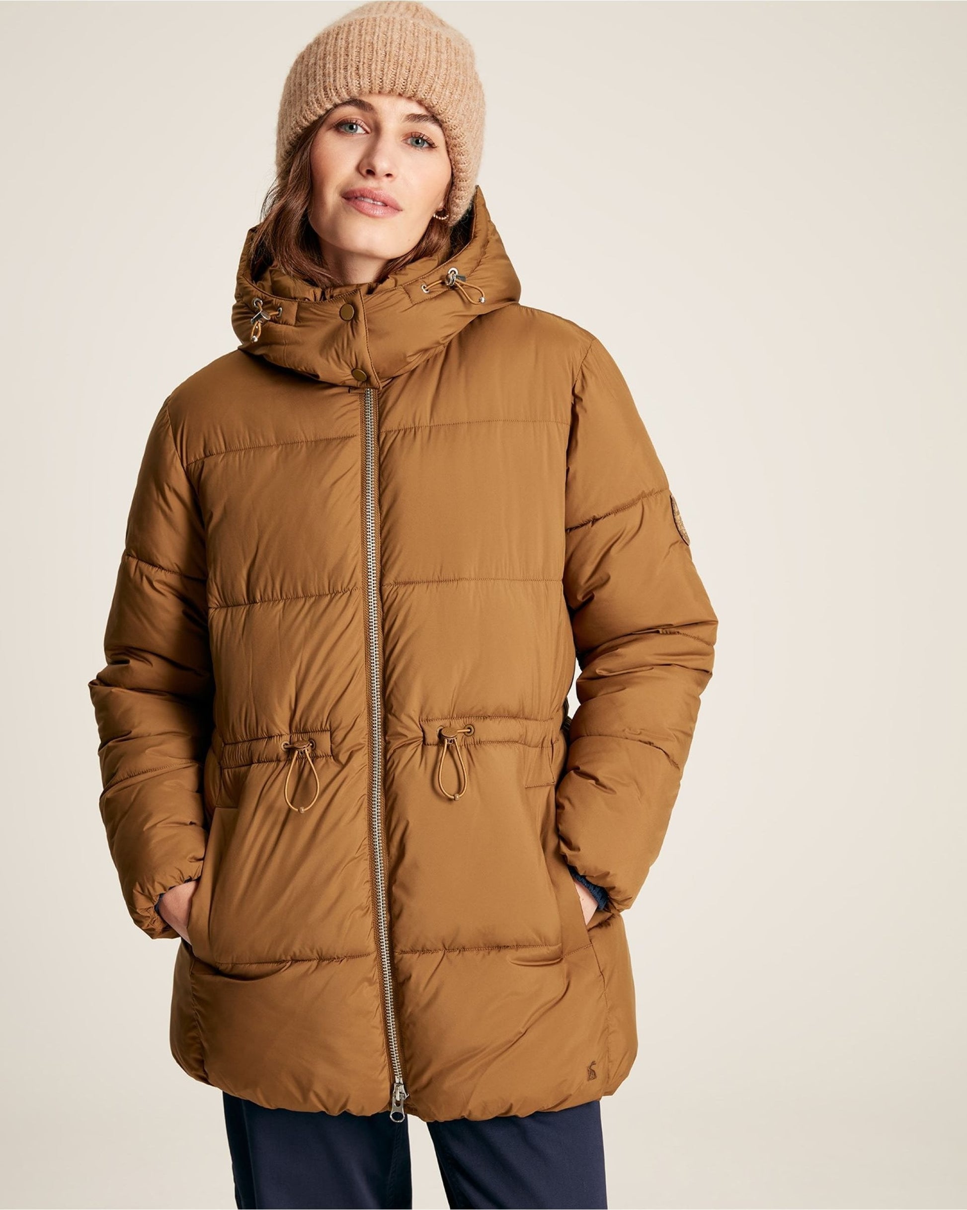 If you're looking for a sporty-style statement coat to keep you warm in the colder months, let us introduce you to Joules Holsworth padded coat. It has faux down padding and jumbo baffles for maximum comfort, and their designers have cleverly added an adjustable waist so it can be cinched in. It has a buttery soft hand feel with a pearlised finish, and is showerproof making it ideal for light bursts of rain. Included is a detachable hood and two fleece-lined pockets to keep your hands toasty on chilly days.