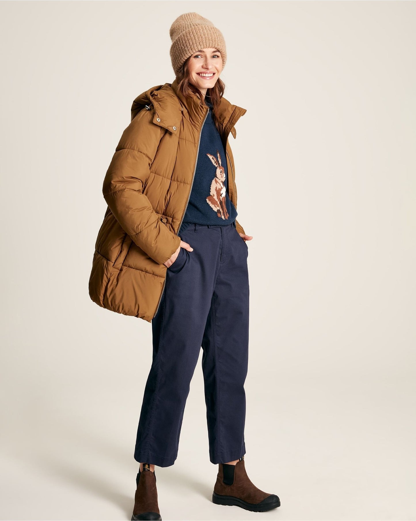 - Branded rubber badge to the arm and Joules hare embroidery to the hem