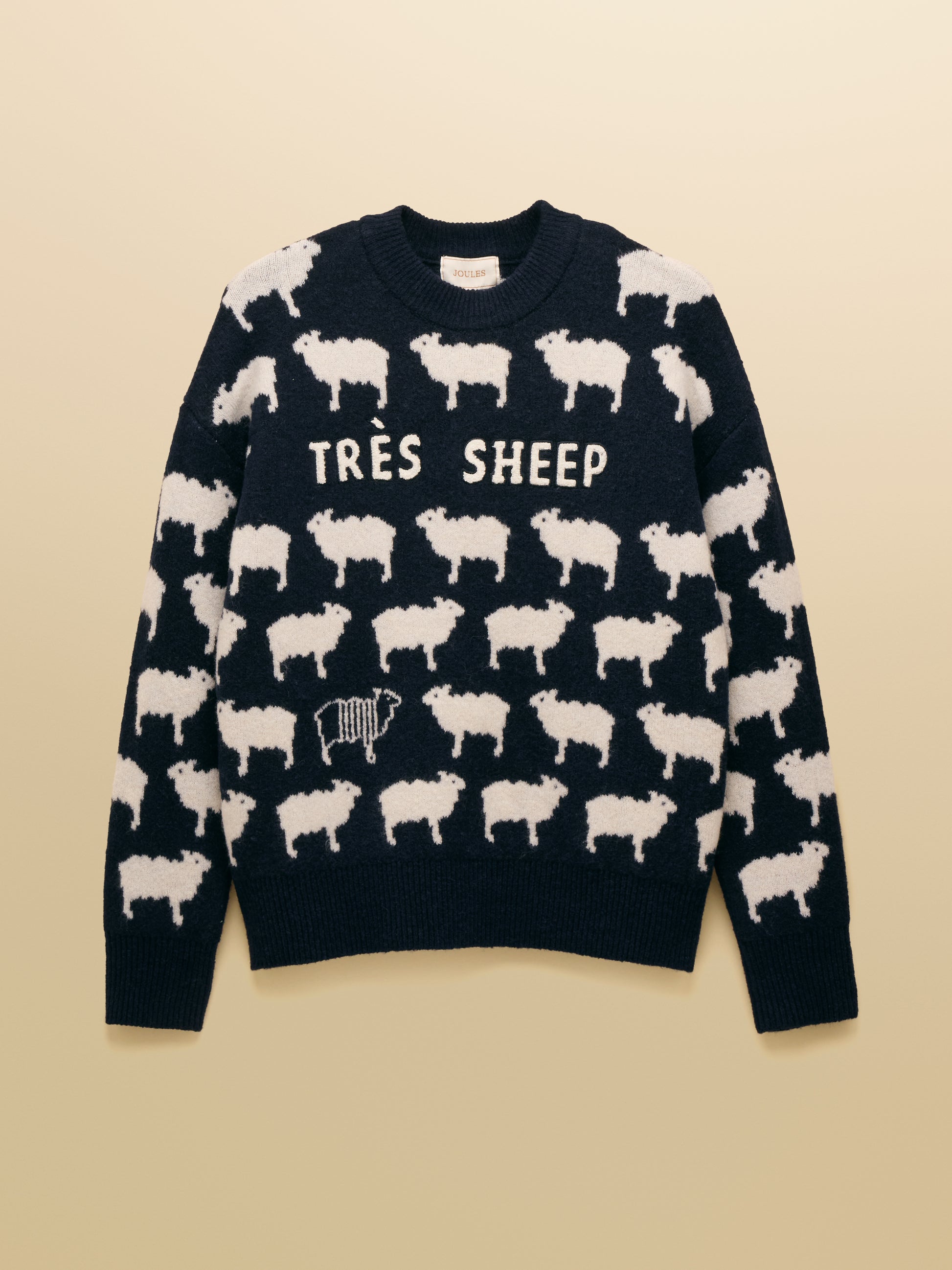 Intarsia Knitted Tres Sheep Relaxed Fit Jumper with Crew Neck