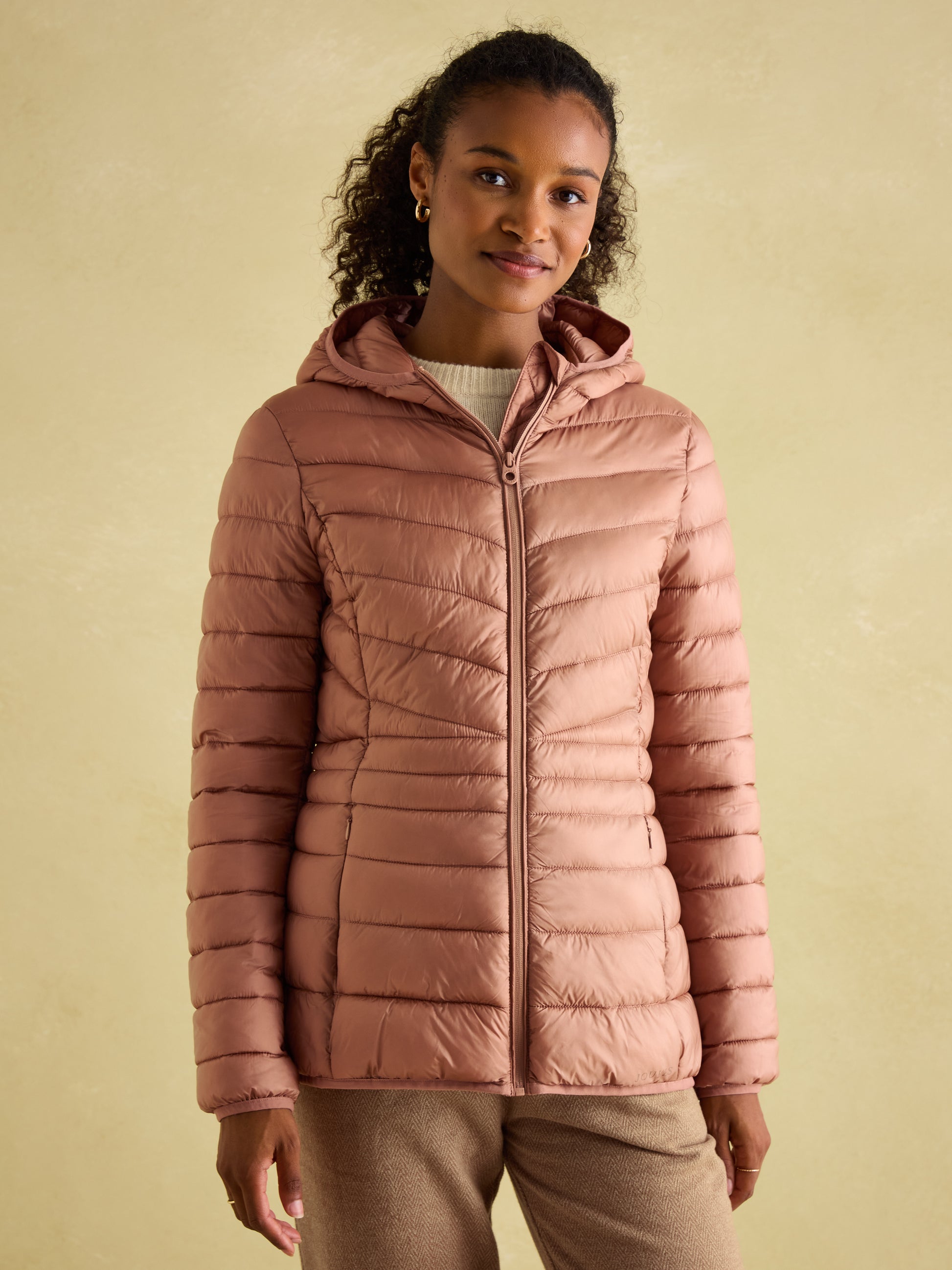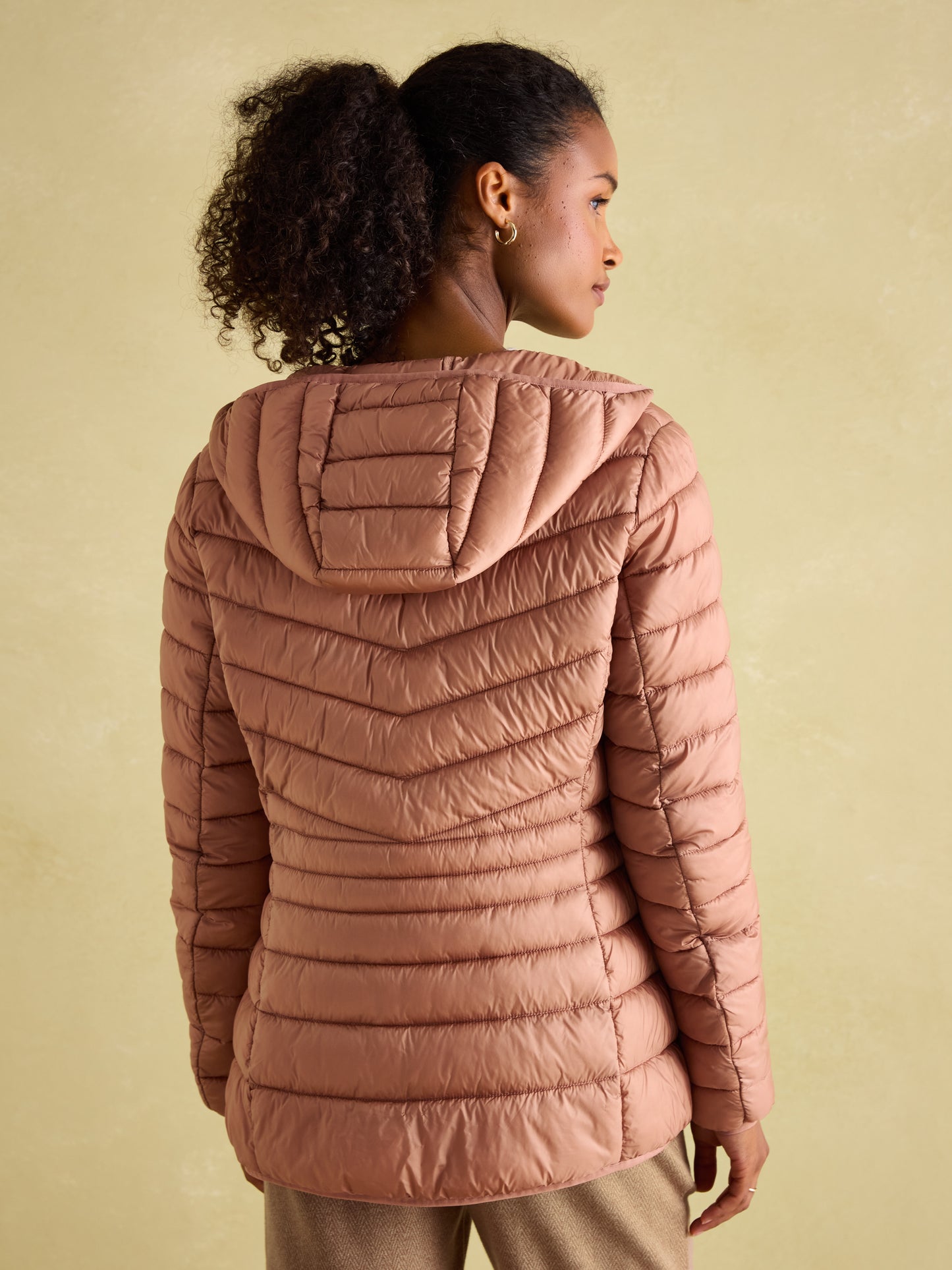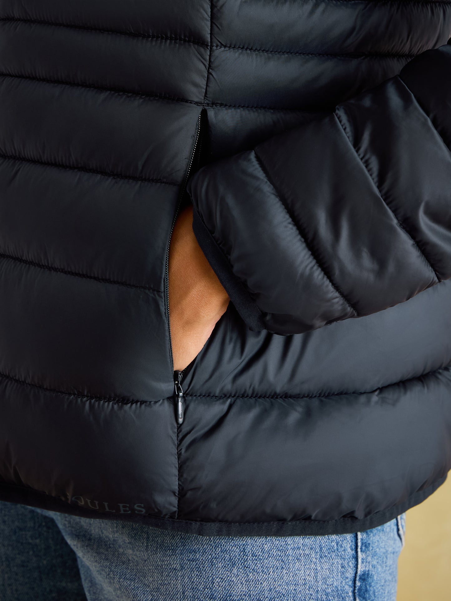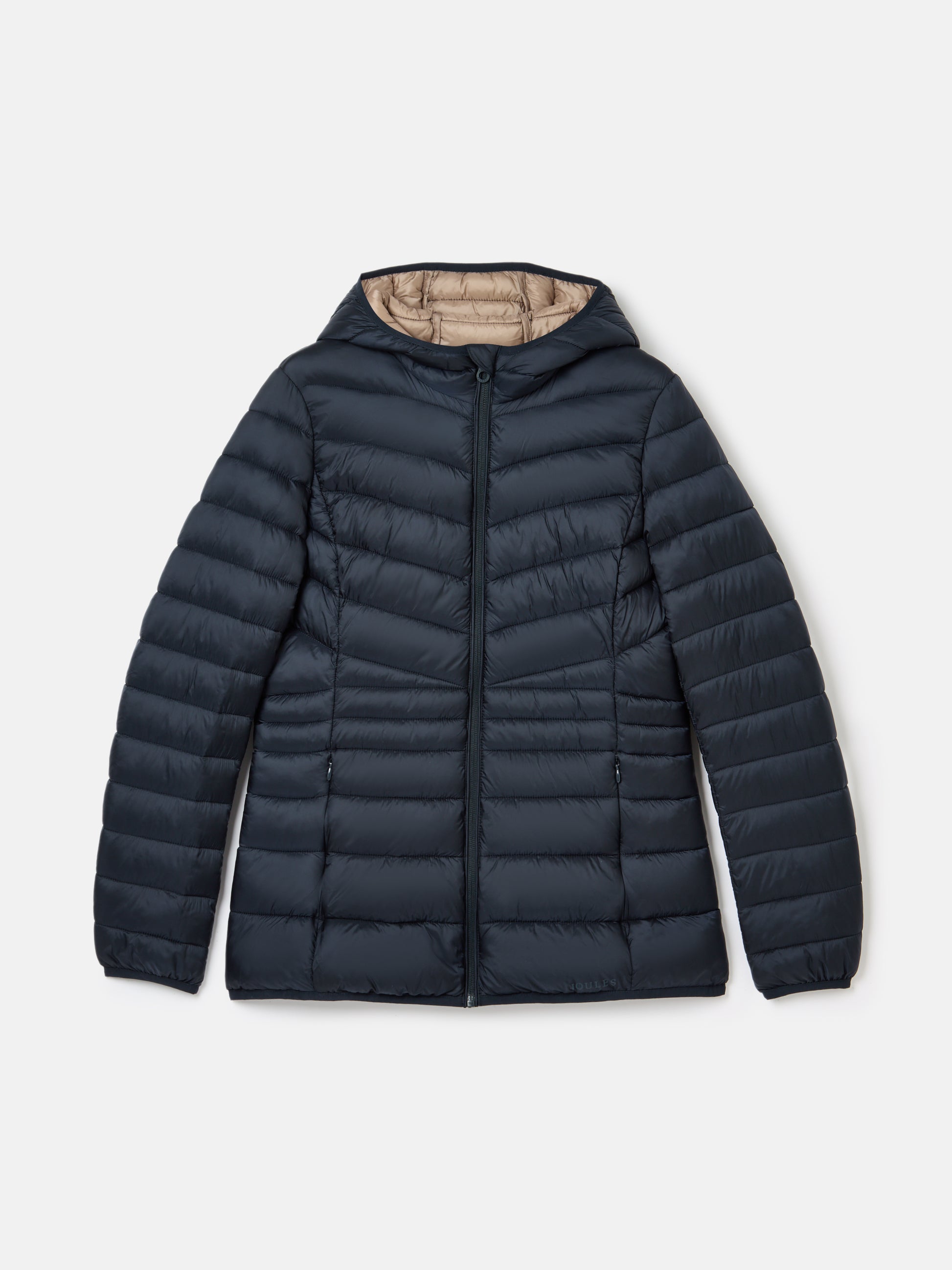Designed to fit and flatter, it has a blend of chevron and horizontal baffles throughout, as well as smaller baffles at the waist to create a cinched effect. It features a zip fastening, a hood for extra coverage and two invisible zip pockets to the side. Finished with Joules branding to the cuff and under the hood and binding trims.