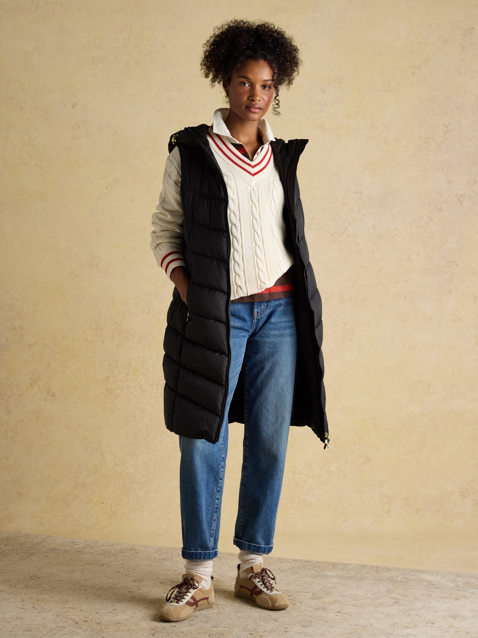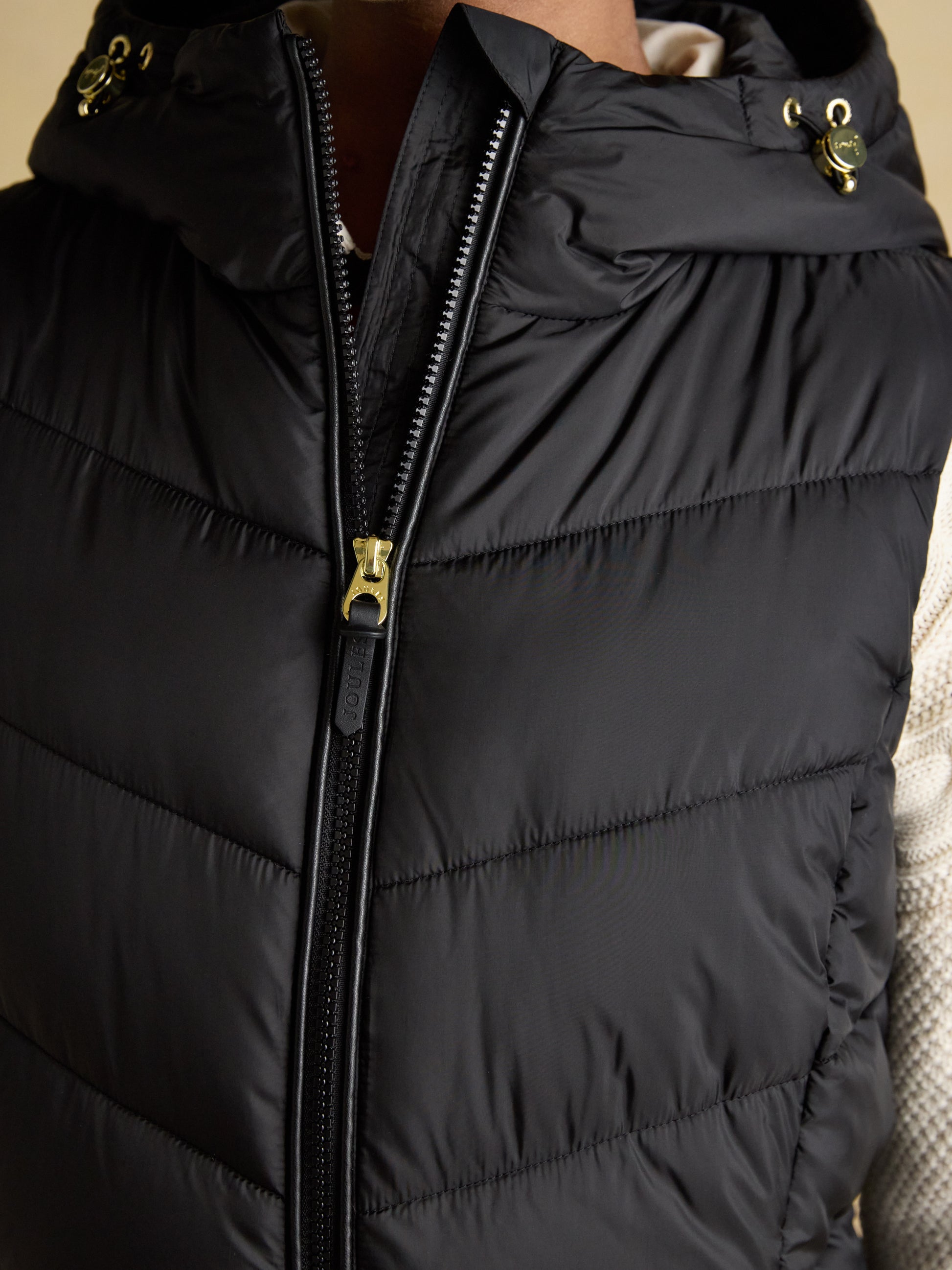 Moorsdale Black Longline Showerproof Padded Gilet with Hood