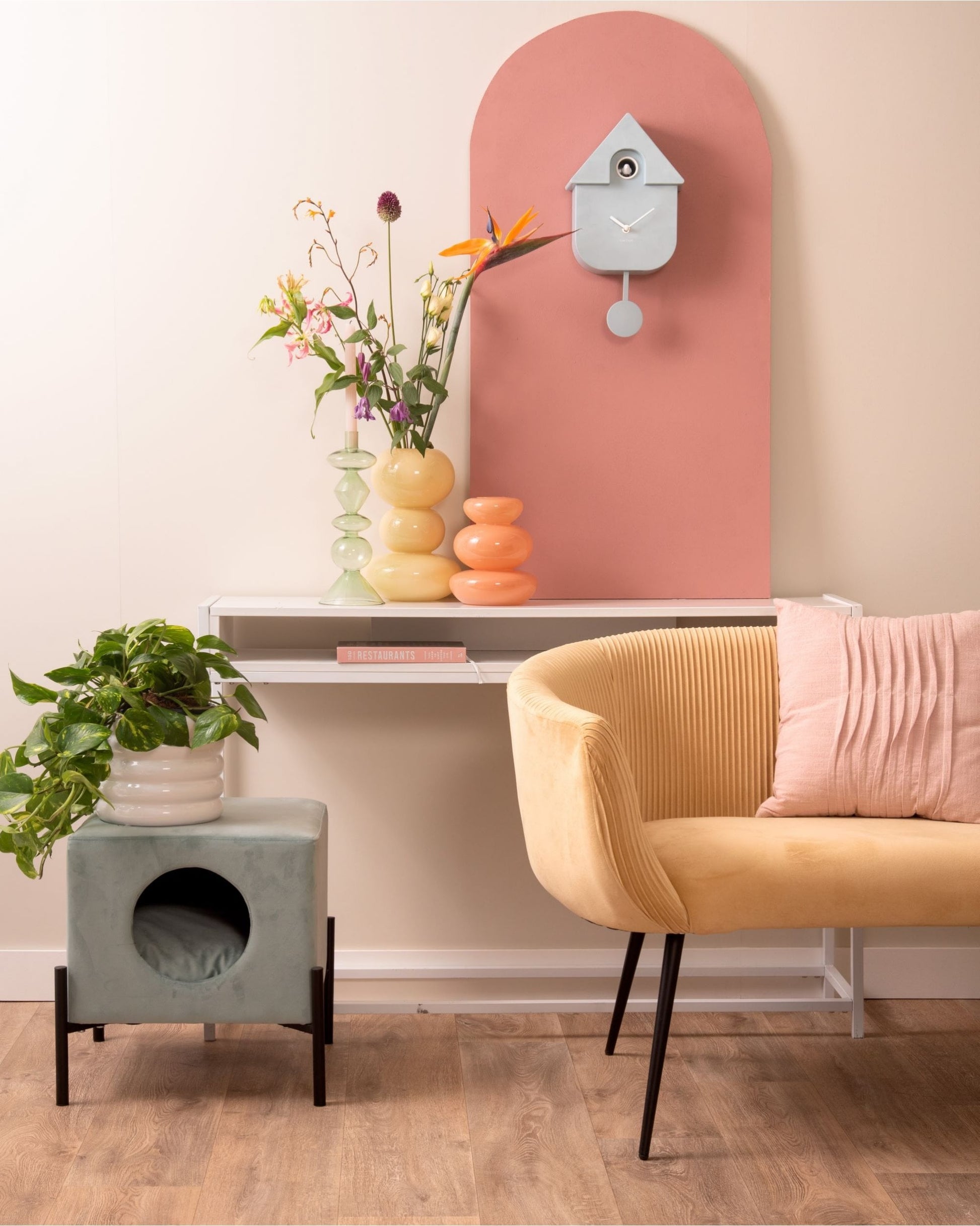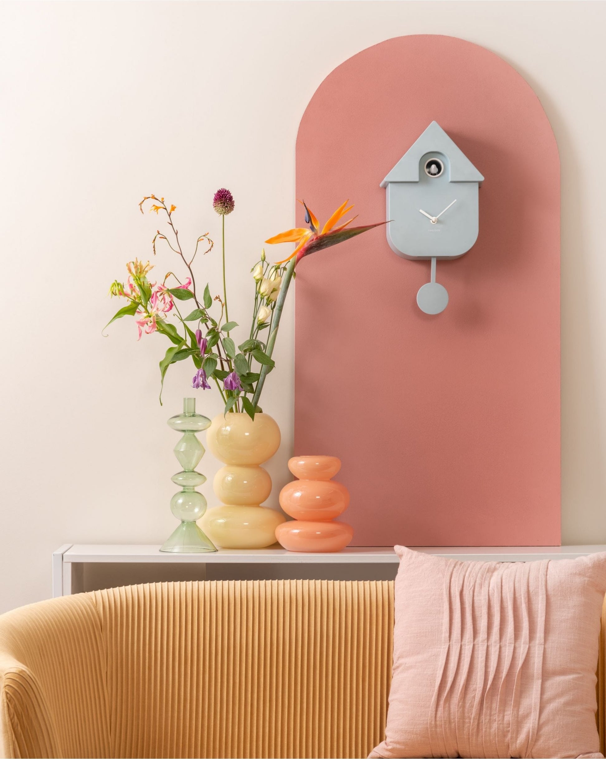 With the Modern Cuckoo wall clock from Karlsson you are completely with the time. Its retro jacket combined with fresh summer colors, make it a real eye-catcher on the wall. Choose a nice spot in the living room, bedroom or hallway. You choose! Karlsson's successful Modern Cuckoo is available in different colors, including soft pink and soft blue.