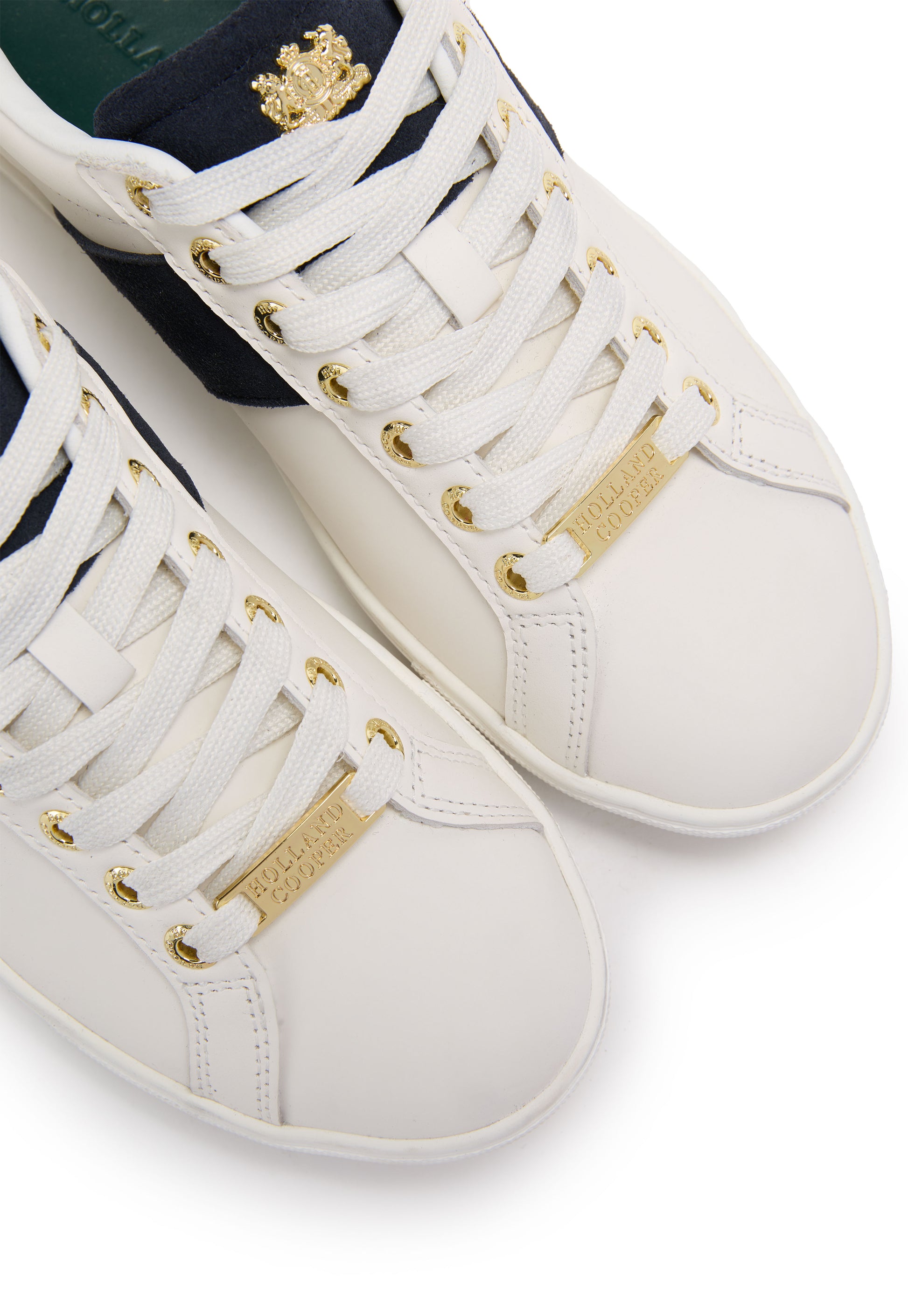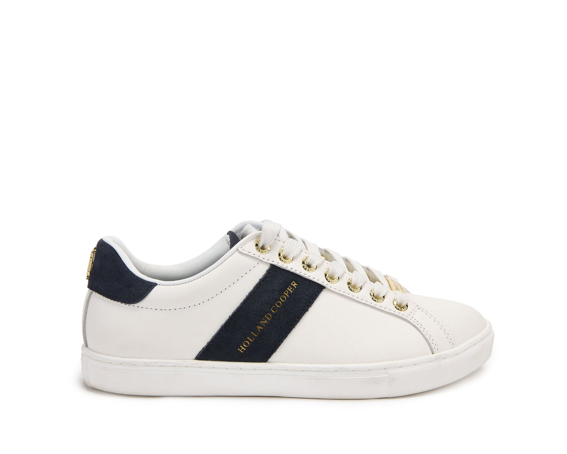 Inspired by traditional tennis shoes, these trainers have a cushioned footbed, made from super soft memory foam with arch support for maximum comfort, making them great for everyday wear. With soft white leather to the upper, the minimalist silhouette features a white panel across the side with Holland Cooper written in gold for a subtle stylish touch. Finished with our signature gold hardware and embossed with our iconic green HC to the rubber soles.