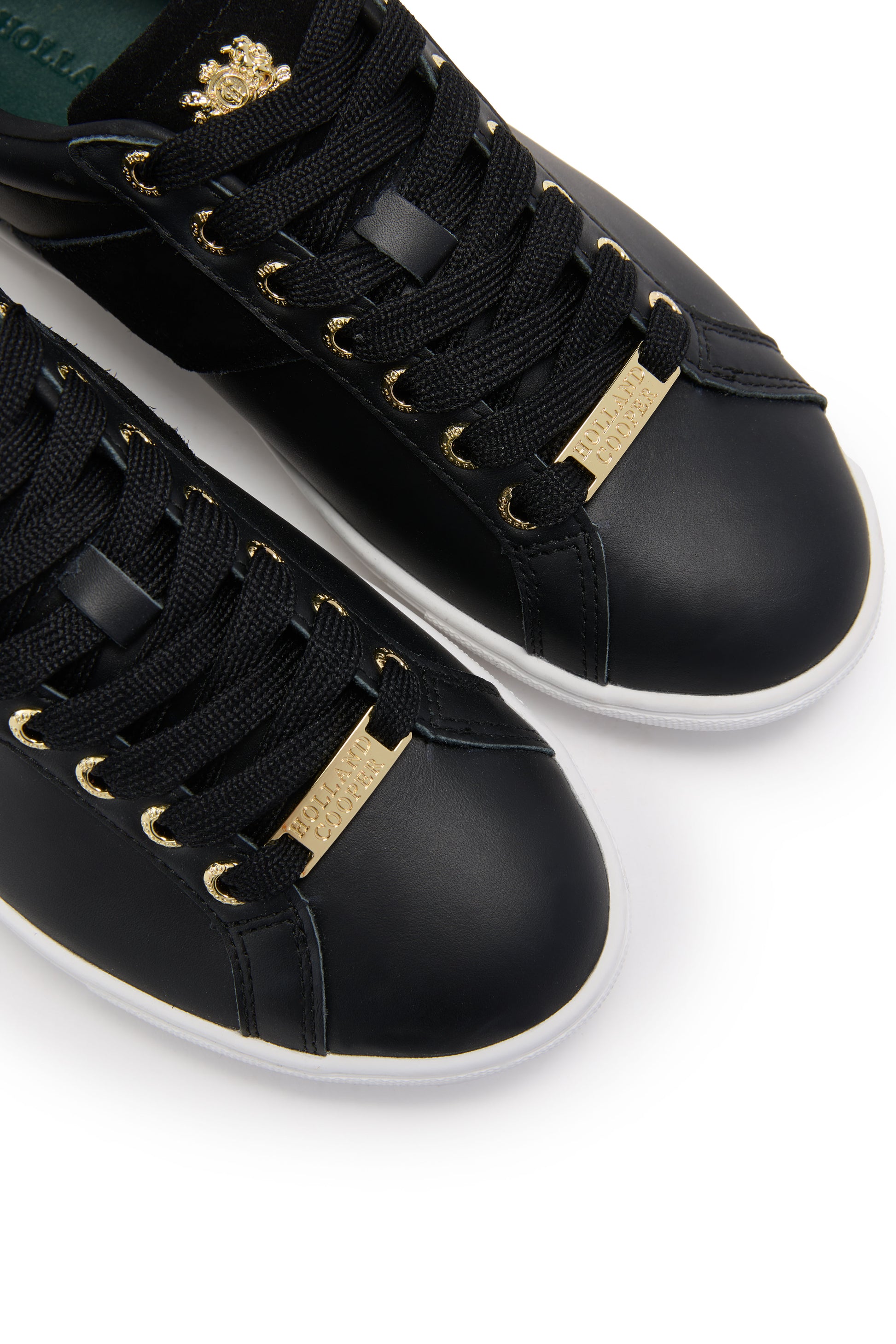 Inspired by traditional tennis shoes, these trainers have a cushioned footbed, made from super soft memory foam with arch support for maximum comfort, making them great for everyday wear. With soft white leather to the upper, the minimalist silhouette features a white panel across the side with Holland Cooper written in gold for a subtle stylish touch. Finished with our signature gold hardware and embossed with our iconic green HC to the rubber soles.