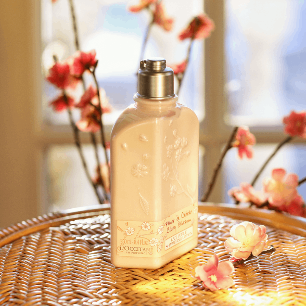 Enriched with shea butter, this body lotion hydrates the skin and provides a sensation of softness. It leaves an iridescent veil on the body. The skin is delicately perfumed with the soft and enveloping scent of cherry blossom. Contains a cherry extract from the Luberon region of southern France.