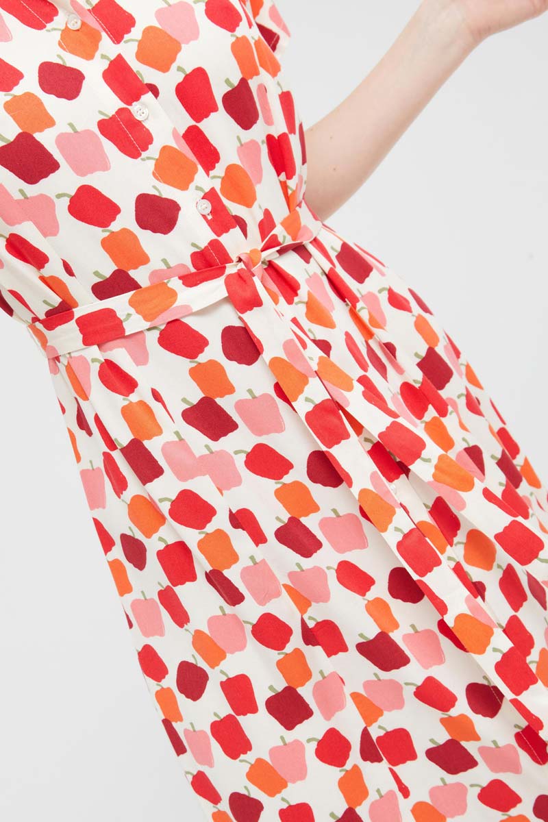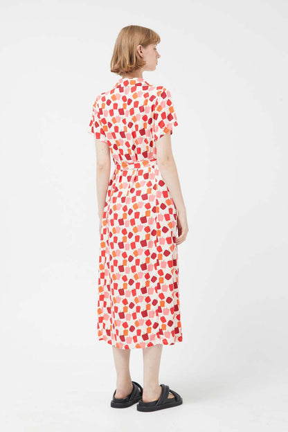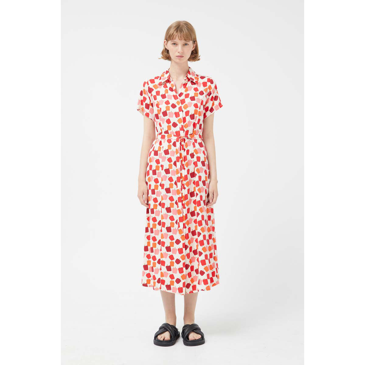 Long shirt dress in viscose twill with pepper print. With lapel collar and short sleeves. Front closure with buttons and belt. The model is 177 cm tall and wears size S.