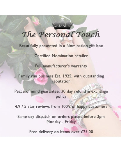 Celebrate life's highs with this raised point big dot. The stainless steel link has been embellished with a dot of 18 carat gold. It's the perfect way for everyone to add a little character to their bracelet. These composible bracelets from Nomination are a truly brilliant idea. They allow you to share your creative flare and make something that is truly individual.