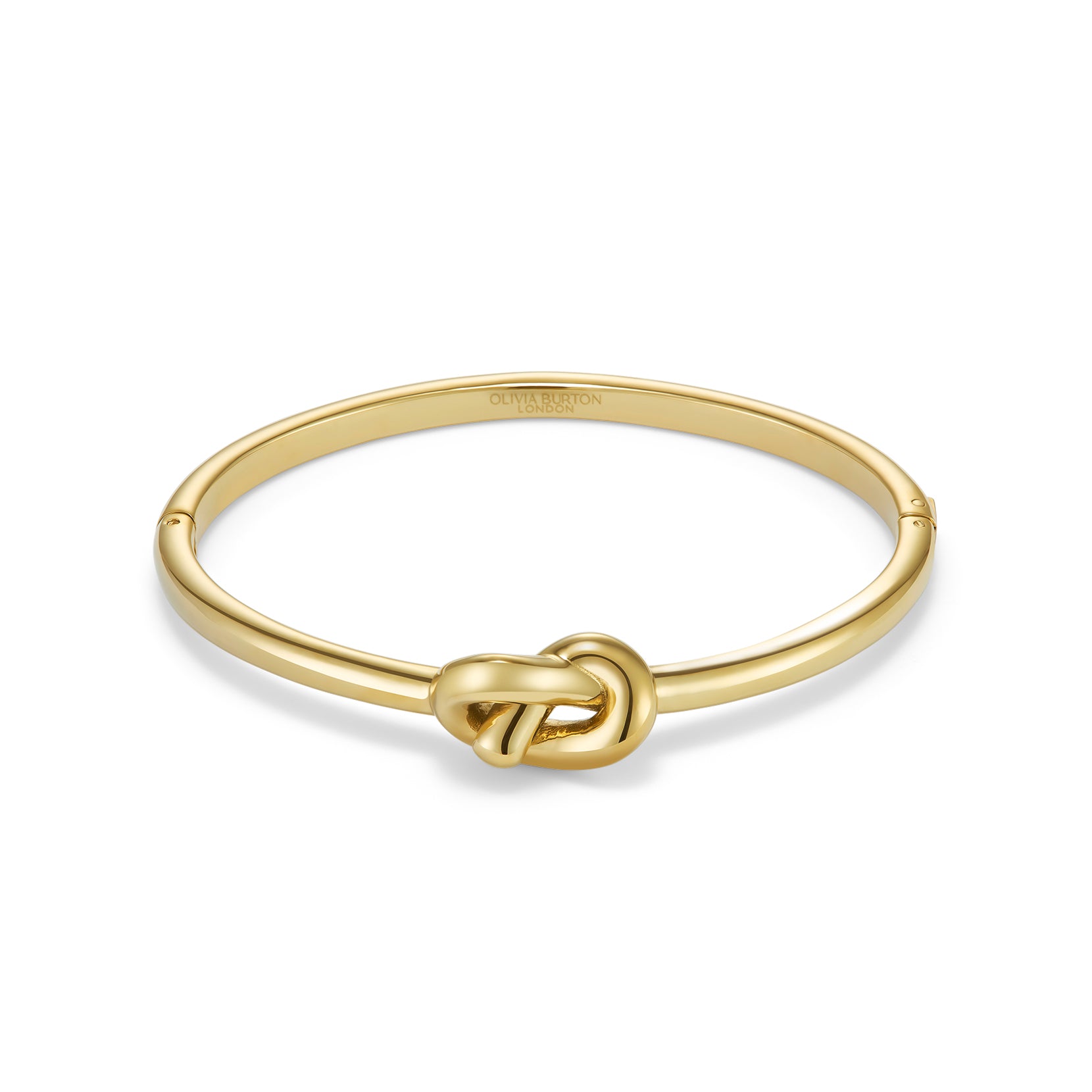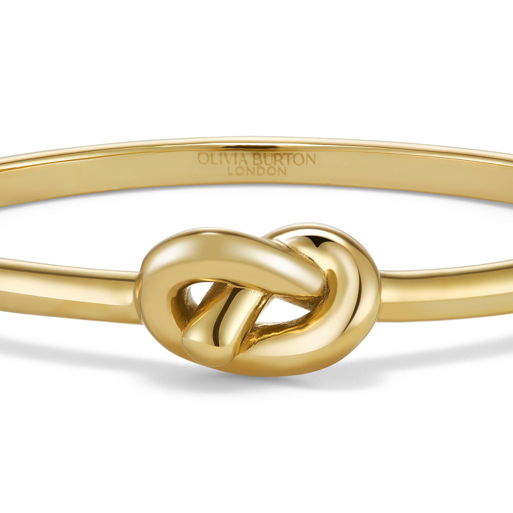 This special interpretation of the iconic love knot is simple, elegant and meaningful. Representing shared love and unity, this gold-plated bangle has a hinged clasp, sculpted metal finish and smooth curves. Perfect for stacking with your favourite bracelets, this timeless piece makes a beautiful gift or self love treat