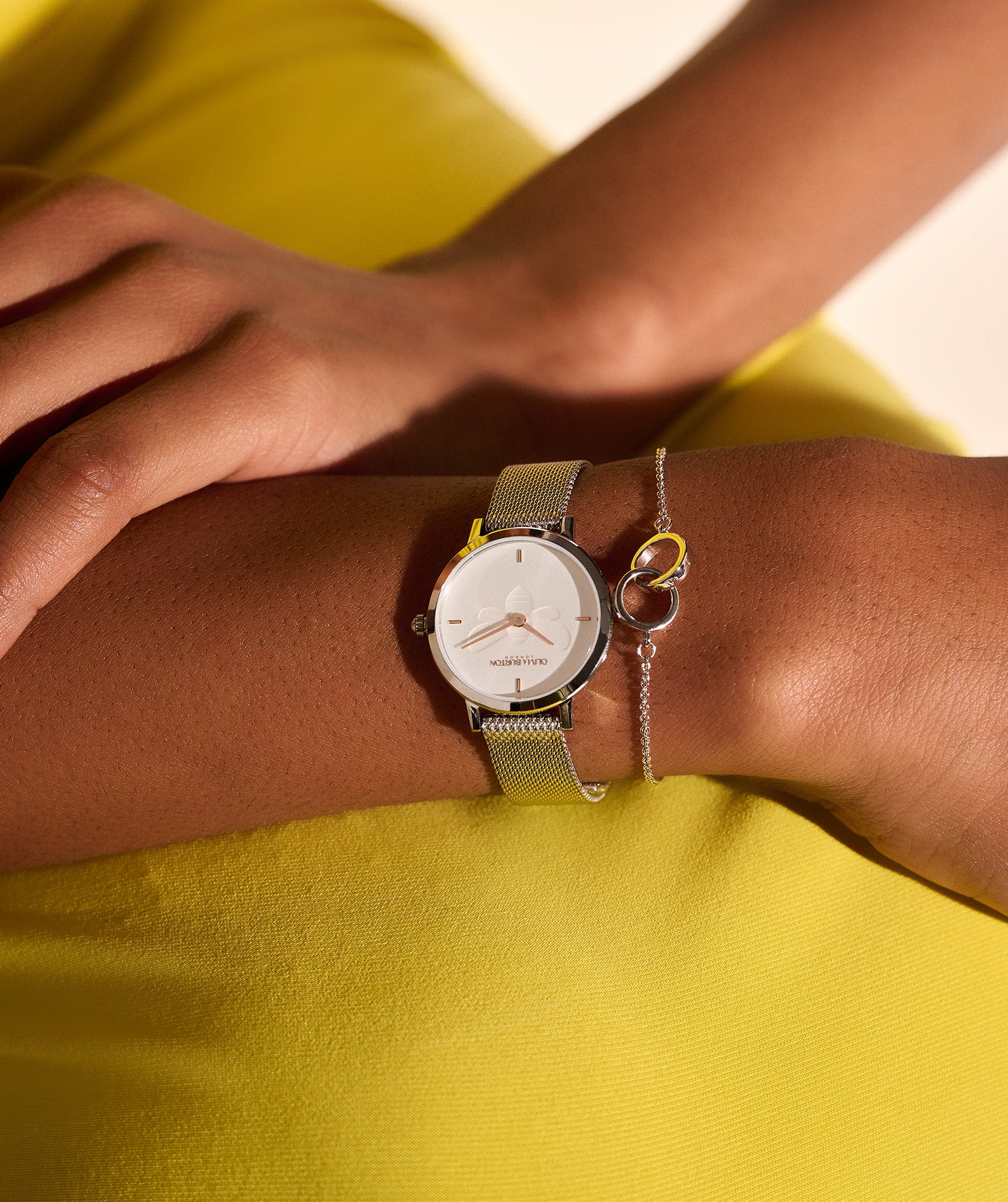 From flora to fauna, our Signature collection draws inspiration from the world around us. This Signature Bee watch features an intricate bee motif upon a 28mm silver sunray dial. Delicate and designed for stacking, finished with a modern mesh strap and an ultra-slim case. A modern heirloom in the making.
