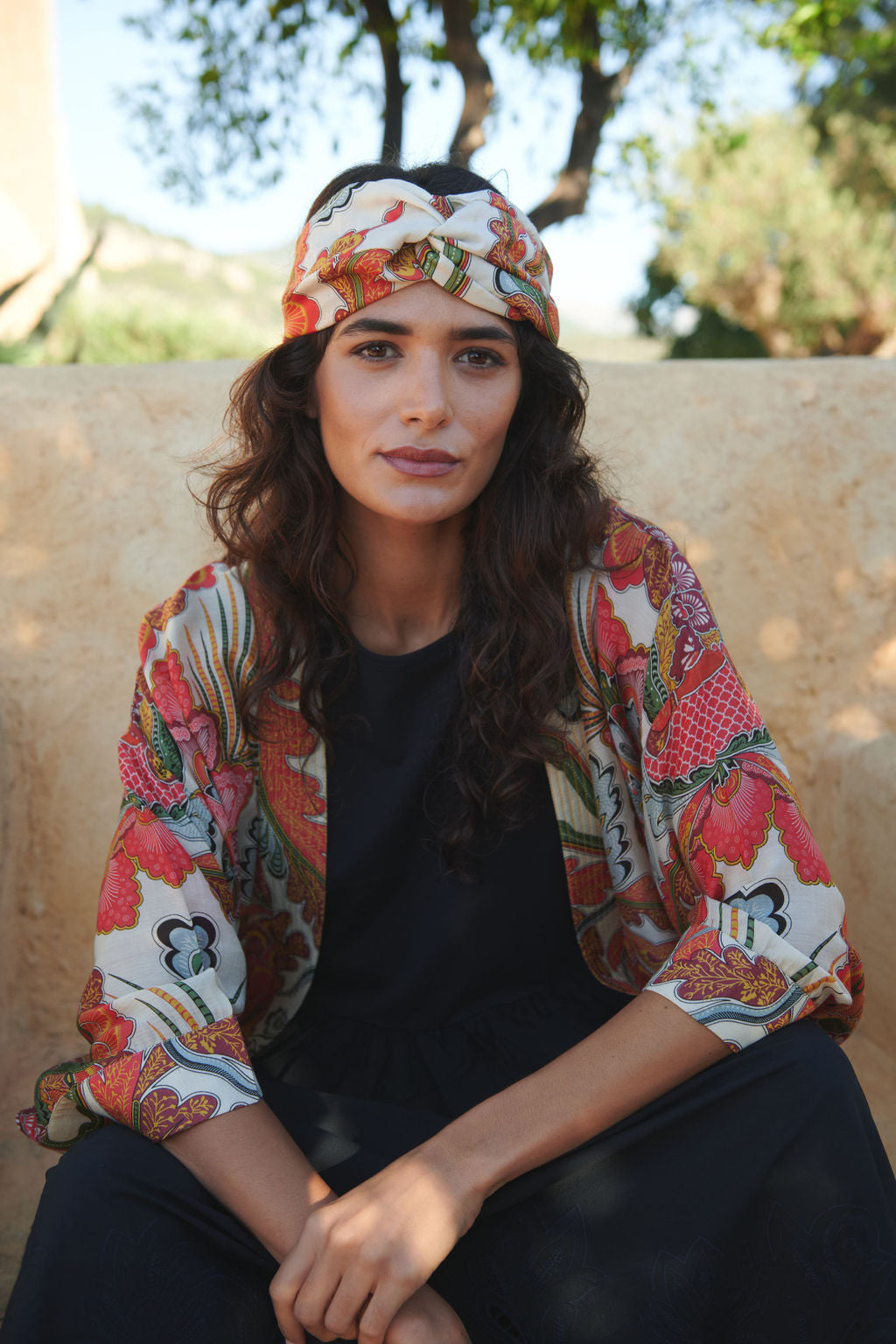 Please note to reduce waste in their manufacturing process, One Hundred Stars' headbands are made from offcuts from their kimonos and gowns. This means each headband is a unique and one-off piece, so the one you purchase may be different to the one in the photographs.