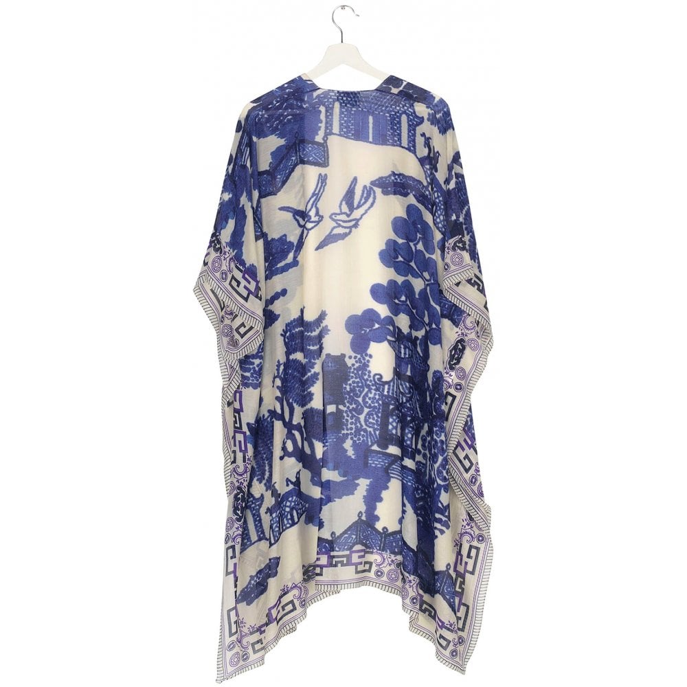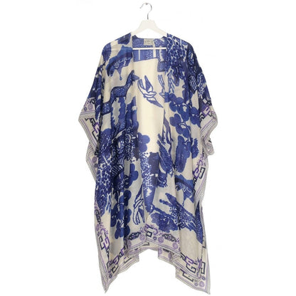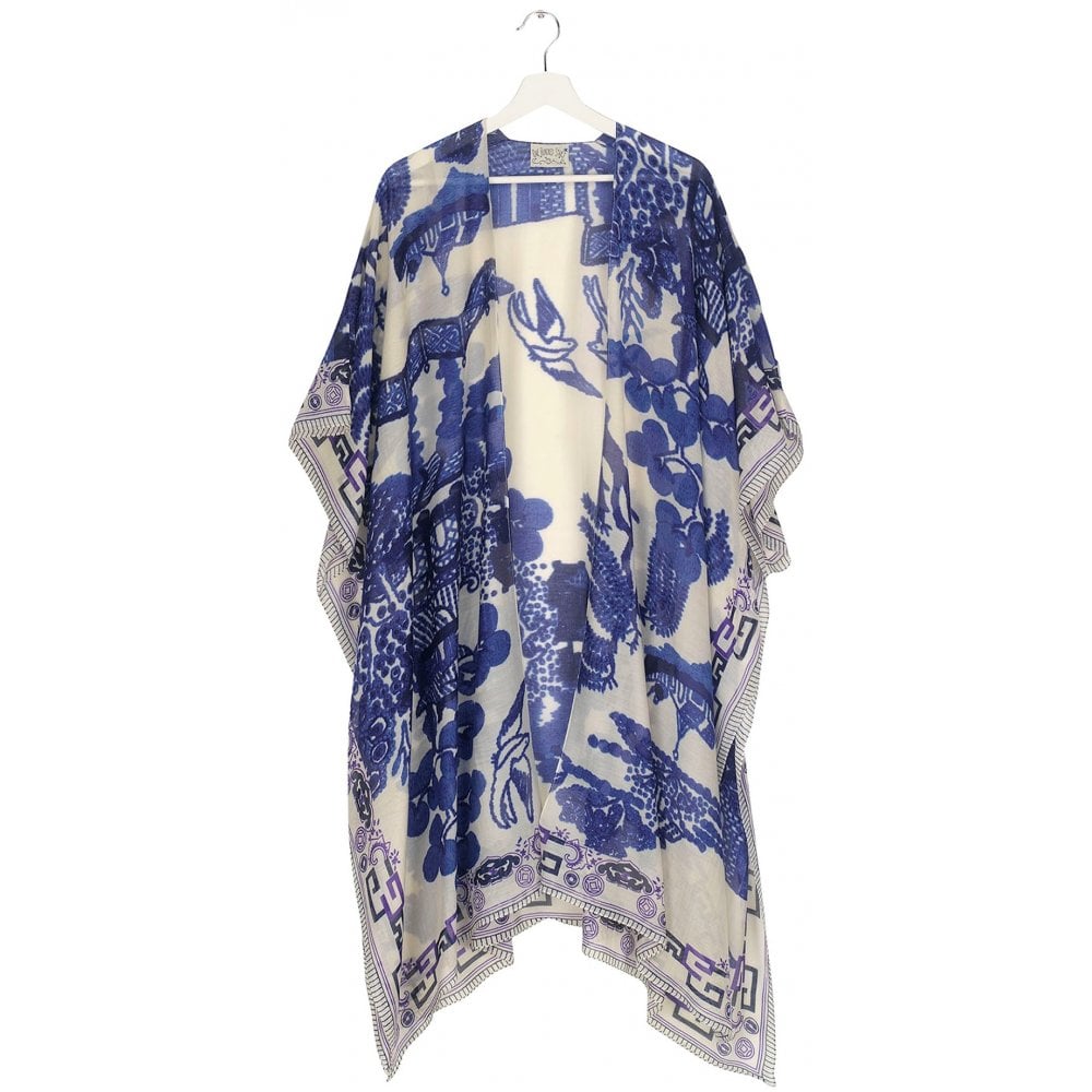 This beautifully lightweight throw-over is the perfect cover-up this summer. Ideal to add some elegant colour to your look, it is adorned with a sophisticated Japanese-inspired Giant Willow screen-print from One Hundred Stars. It is cut to a flattering mid-length, it has a stylish open front and loose arms, creating an elegant relaxed floaty look.