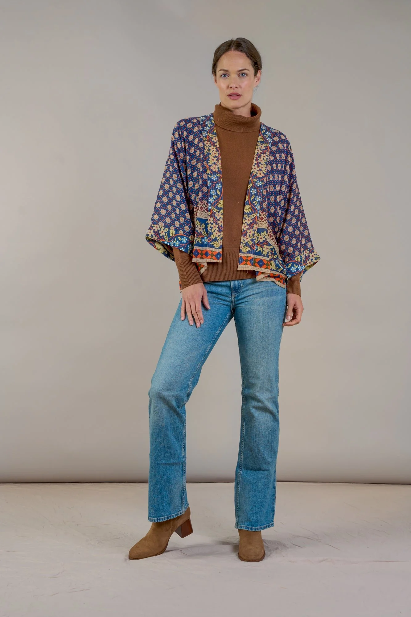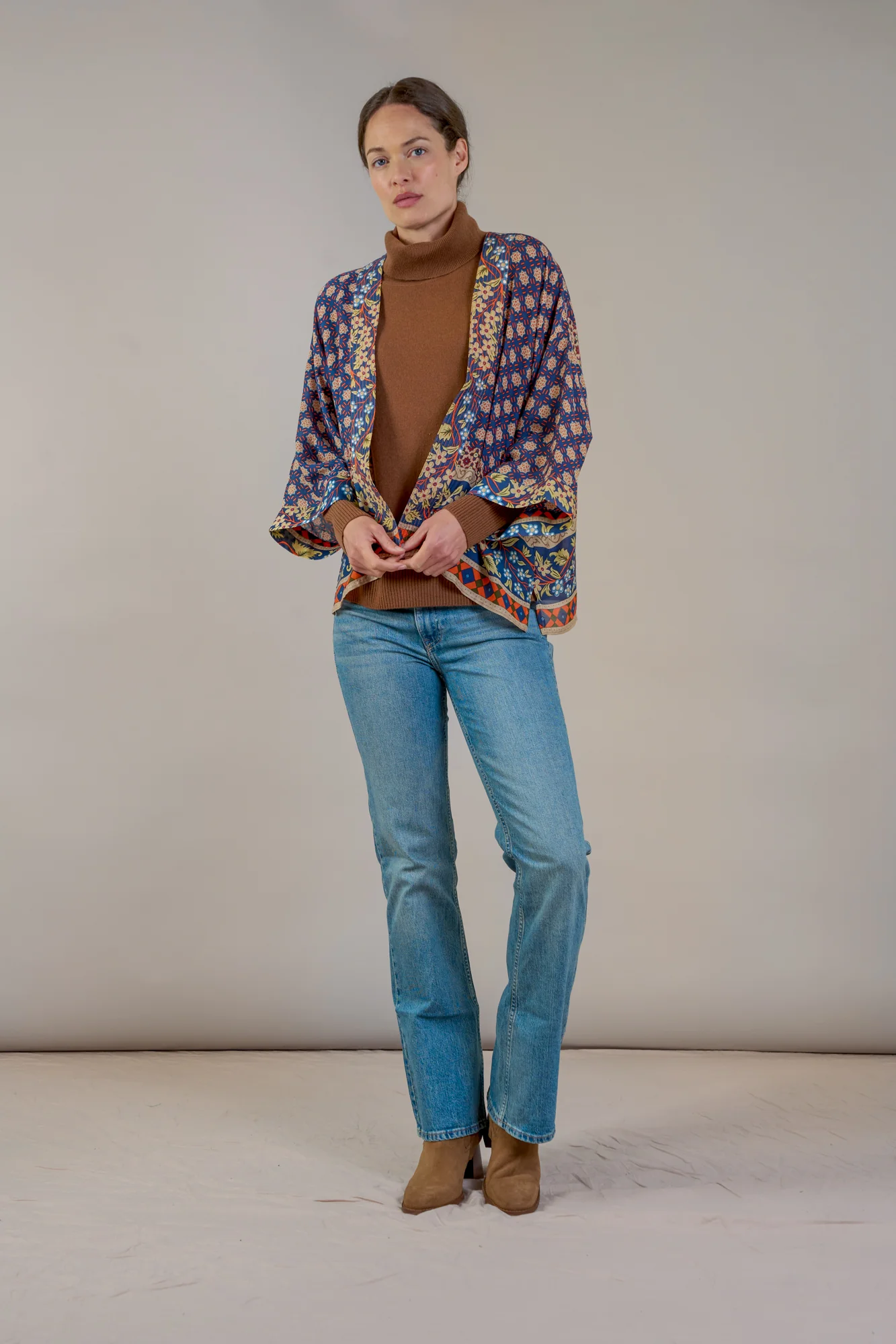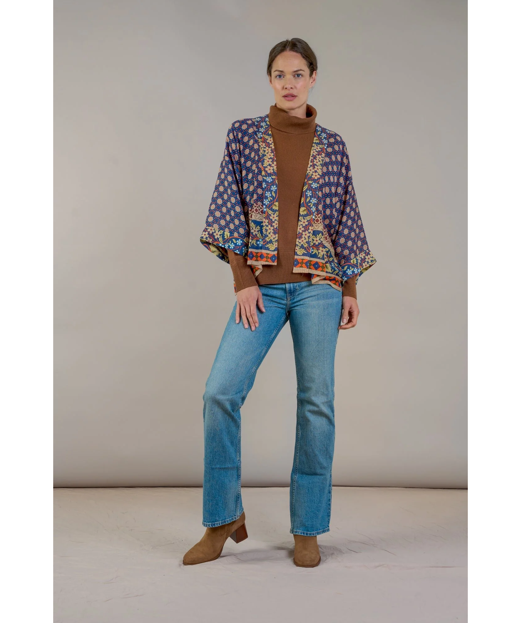 These bestselling kimono jackets have loose ¾ length sleeves, an open front and a lightly embroidered lapel. Pair with a matching camisole and your favourite jeans in summer or layer over a polo neck during the cooler months.
