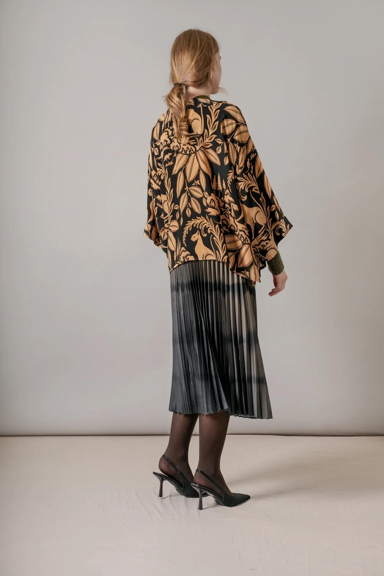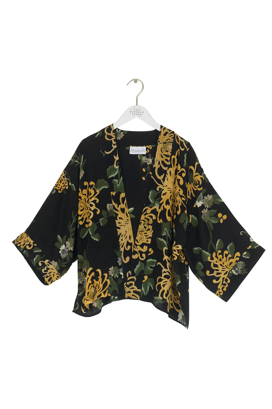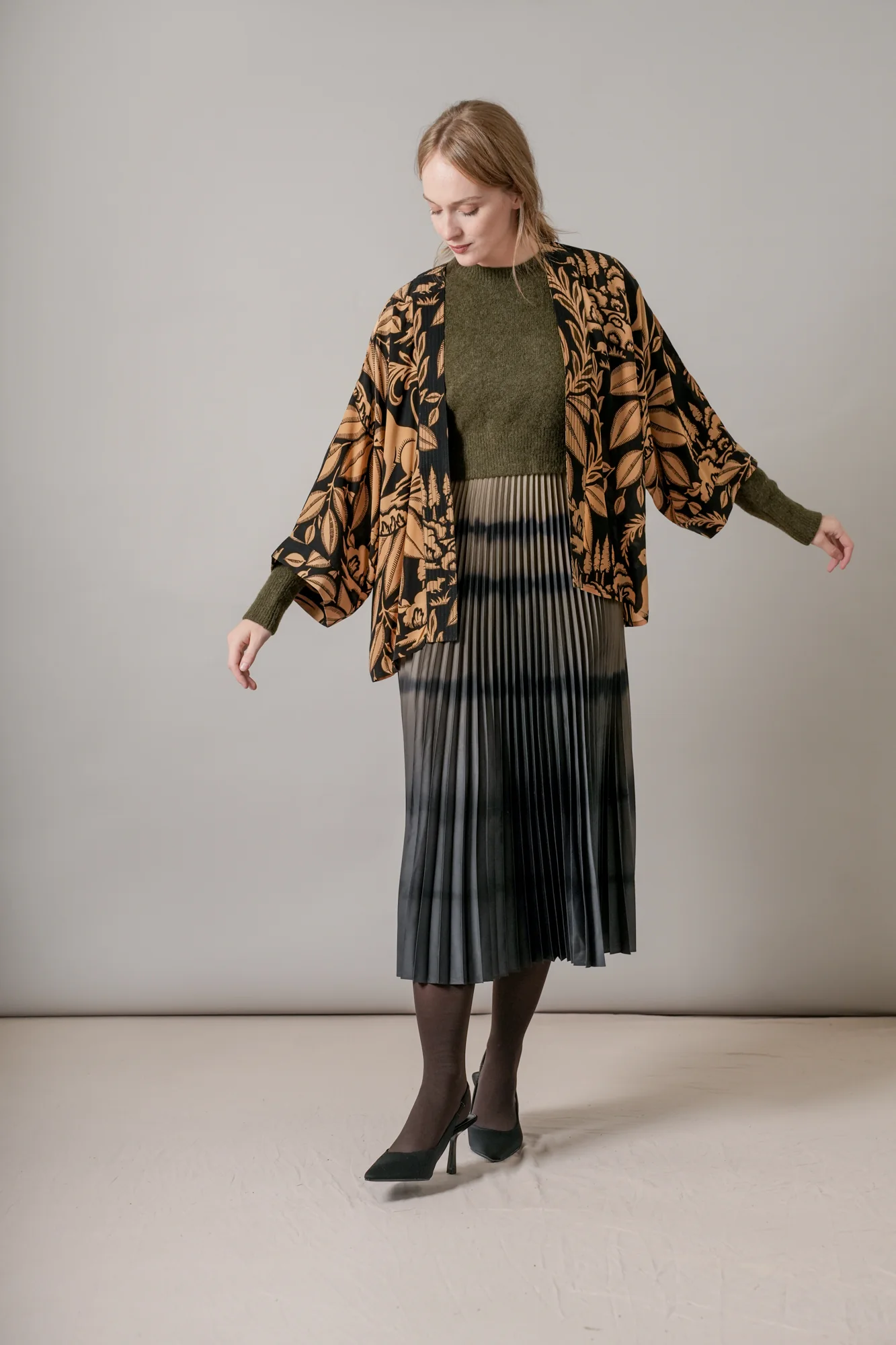 This print speaks for itself. Bold and classical, a high-impact design. These bestselling kimono jackets have loose ¾ length sleeves, an open front and a lightly embroidered lapel. The crepe Kimono is a heavier weight than our classic kimono. Pair with a matching camisole and your favourite jeans in summer or layer over a polo neck during the cooler months.