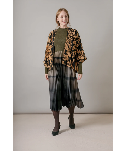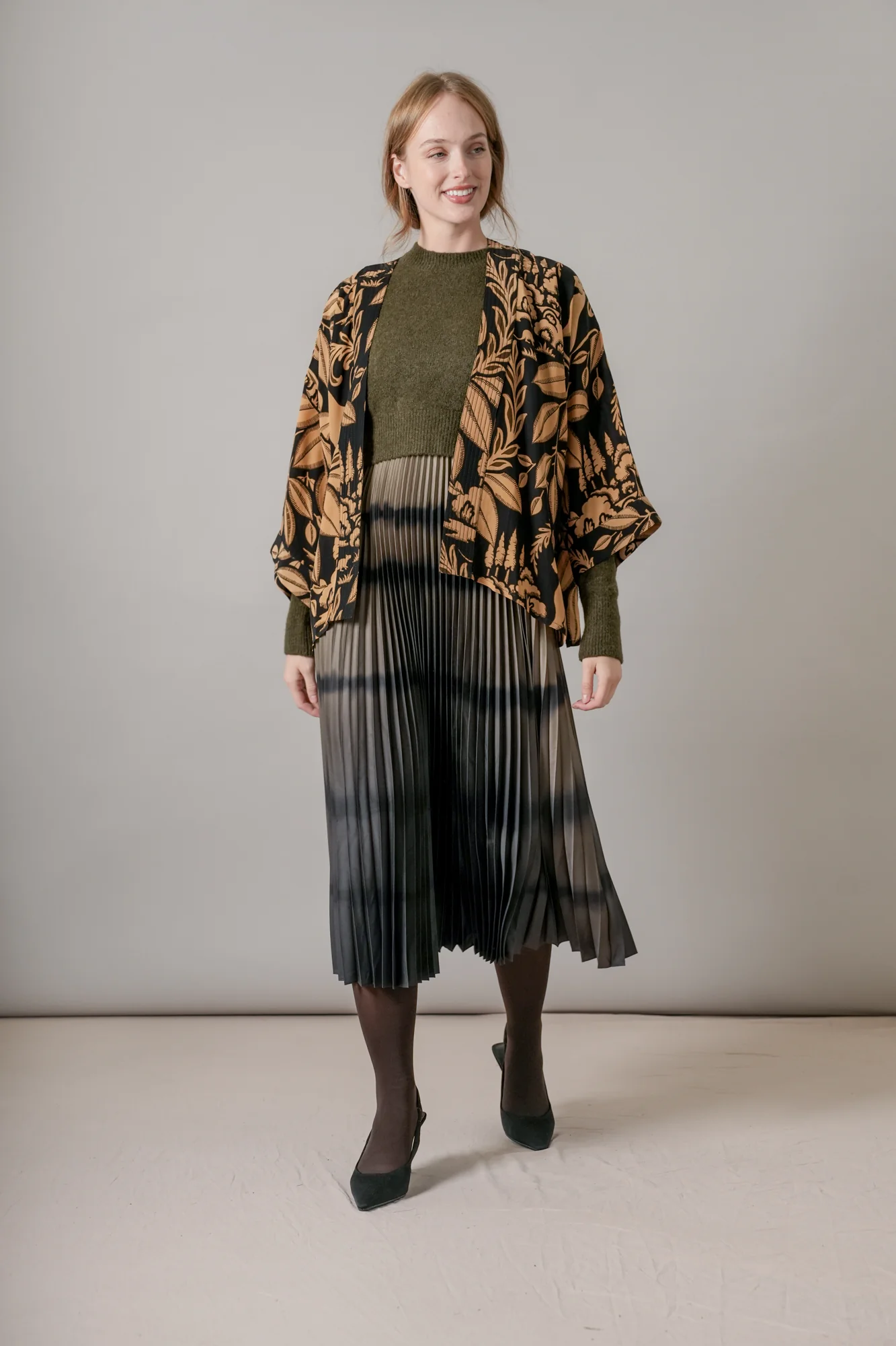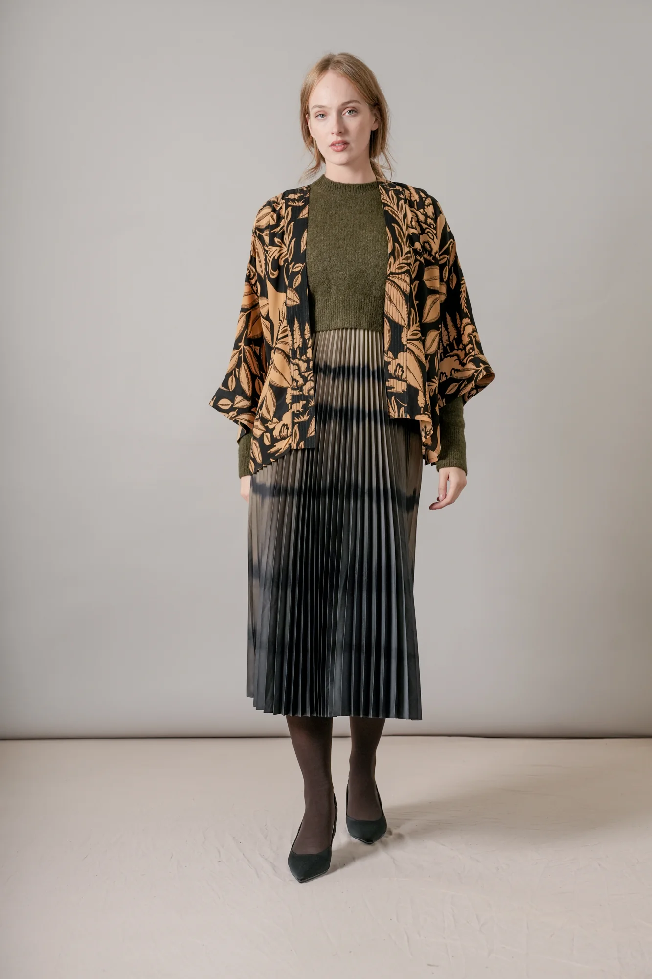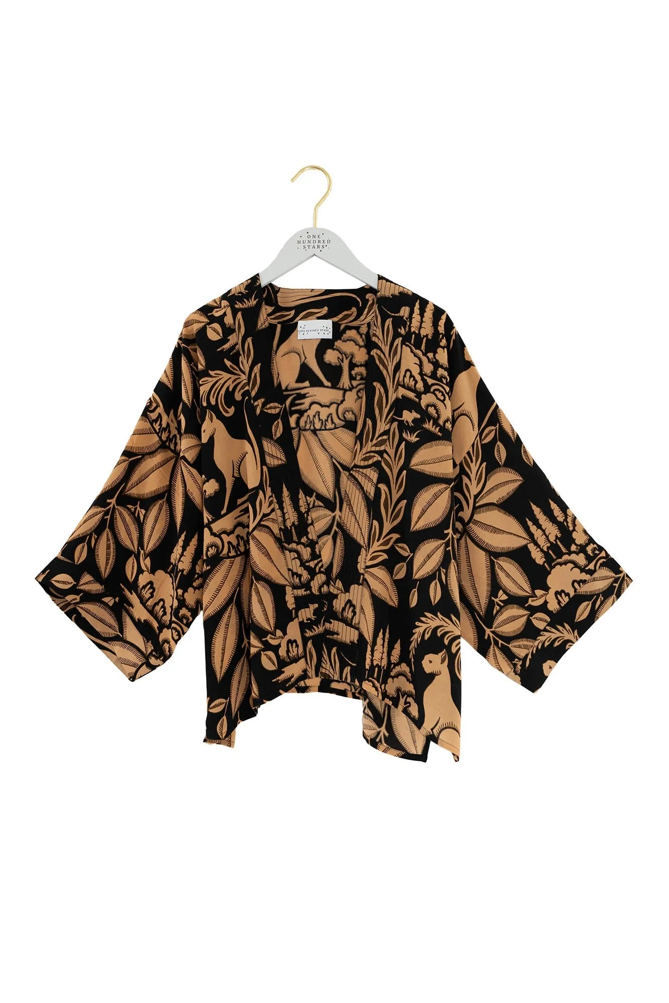 This print speaks for itself. Bold and classical, a high-impact design. These bestselling kimono jackets have loose ¾ length sleeves, an open front and a lightly embroidered lapel. The crepe Kimono is a heavier weight than our classic kimono. Pair with a matching camisole and your favourite jeans in summer or layer over a polo neck during the cooler months.