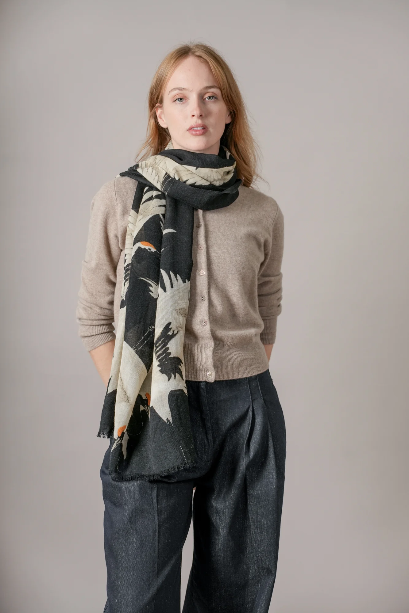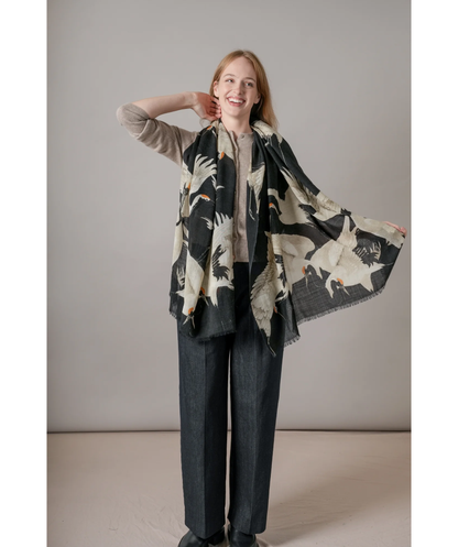 Storks and cranes have been a major art deco trend in both fashion and interiors and this One Hundred Stars Stork Black Wool Scarf is perfect for anyone looking for something chic, stylish and in vogue! A classic super soft long 100% pure wool scarf, perfect for pairing with your winter coats or worn over jumpers.