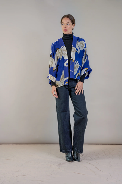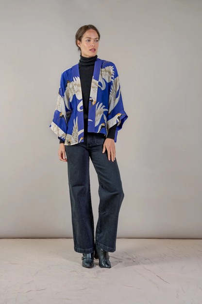 Our bestselling kimono jackets have loose ¾ length sleeves, an open front and a lightly embroidered lapel. Pair with a matching camisole and your favourite jeans in summer or layer over a polo neck during the cooler months.