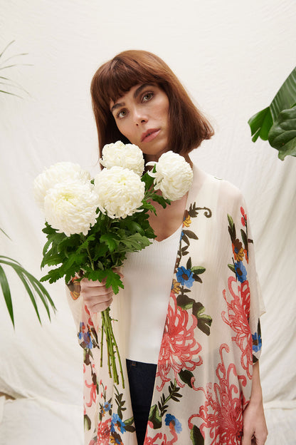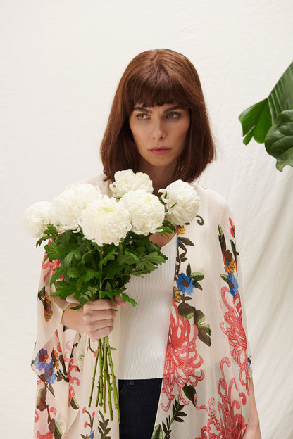 Our Chrysanthemum print celebrates the beauty of this elegant flower and its dazzling fuchsia pink florals! Perfect for the summer months, this joyous floral print is perfect for pairing with a pink accessory, shoes, or lipstick!