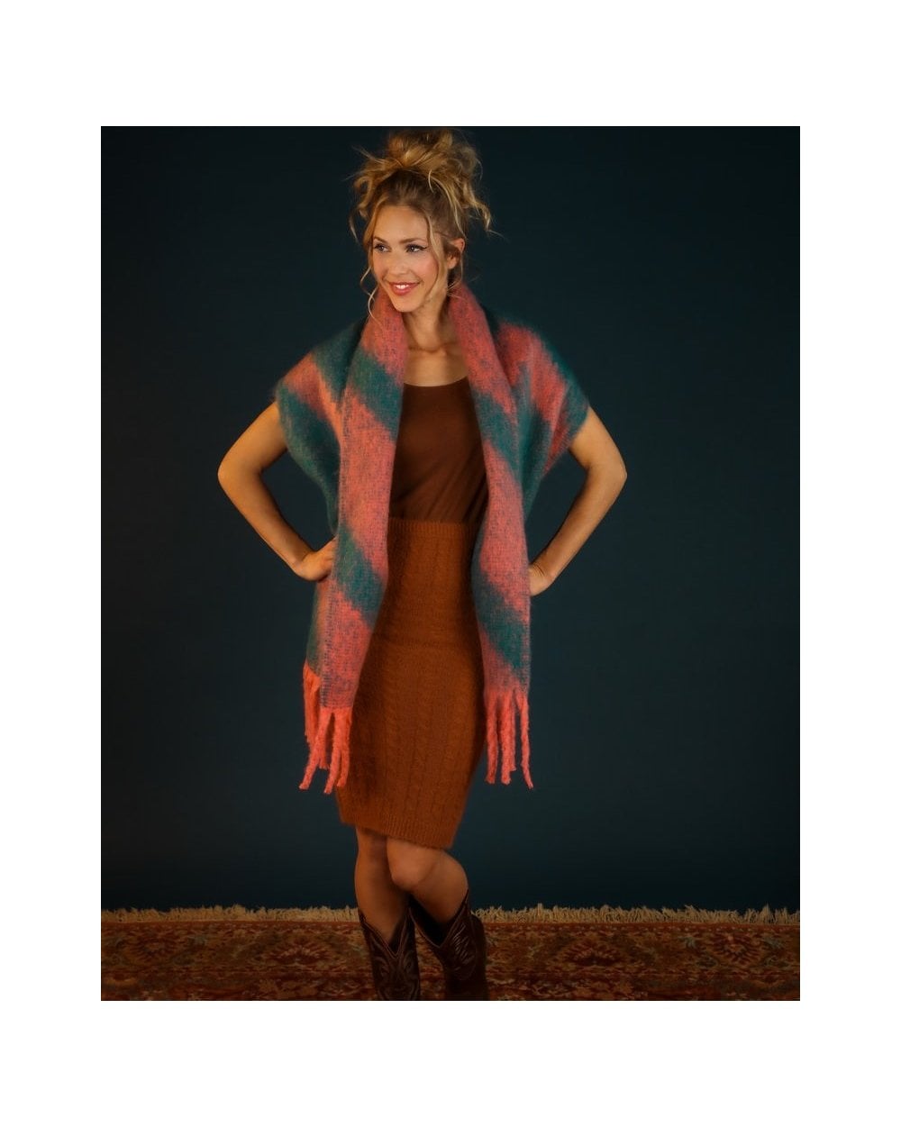 Add a pop of autumnal colour to your wardrobe this up-and-coming season with Powders Ciara Scarf. With contrasting chevrons in coral and teal, this fluffy scarf will make an eye-catching wardrobe addition.