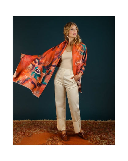 Luxurious Tangerine Floral Stag Scarf