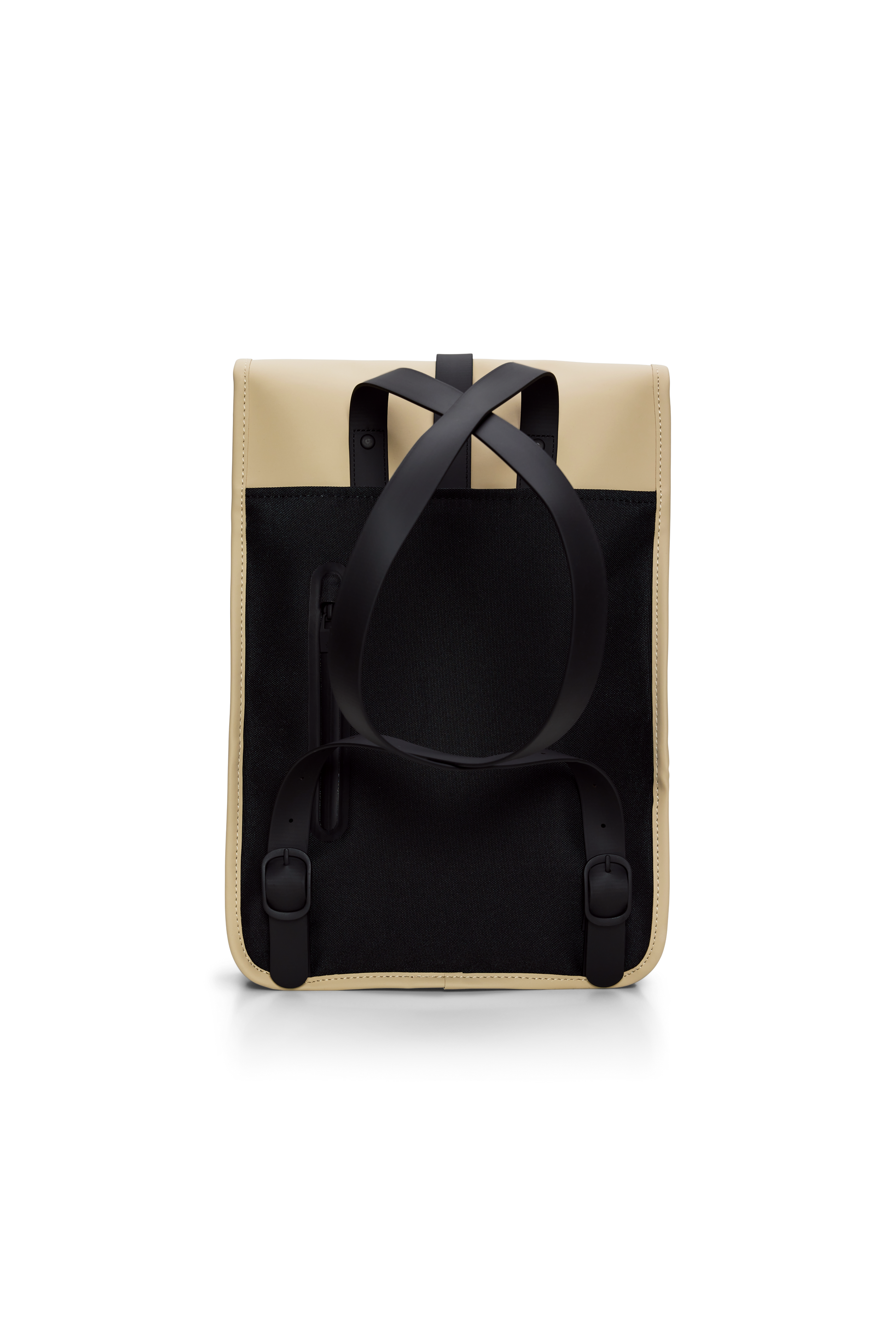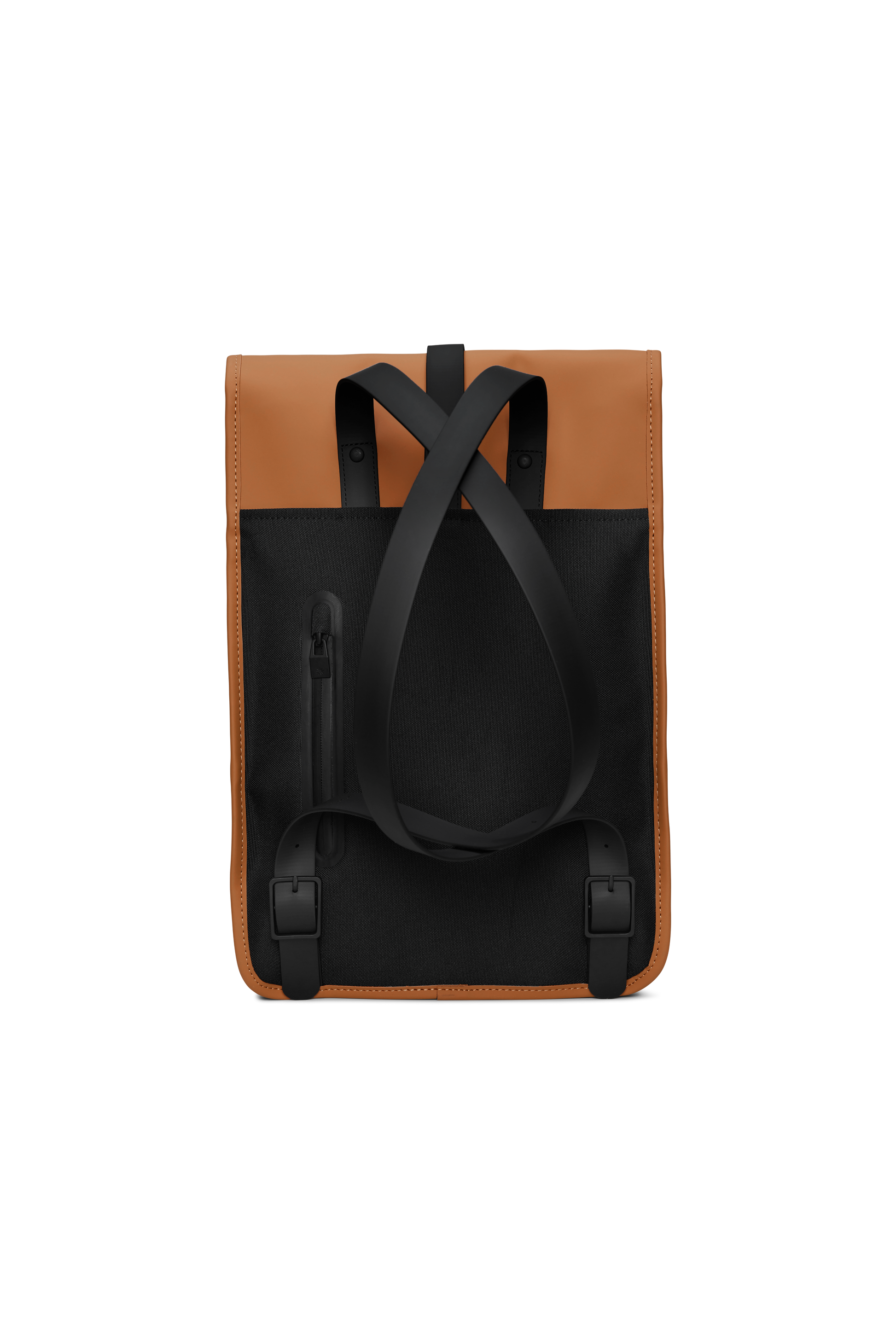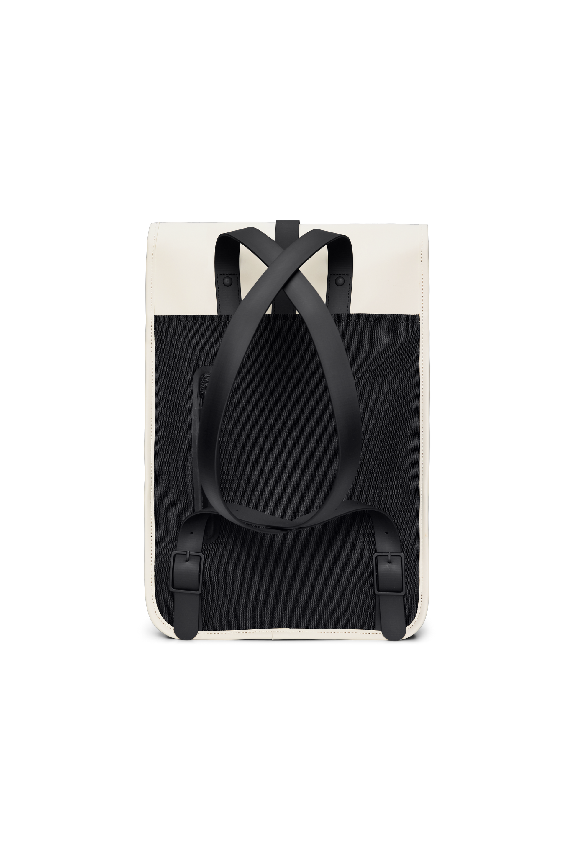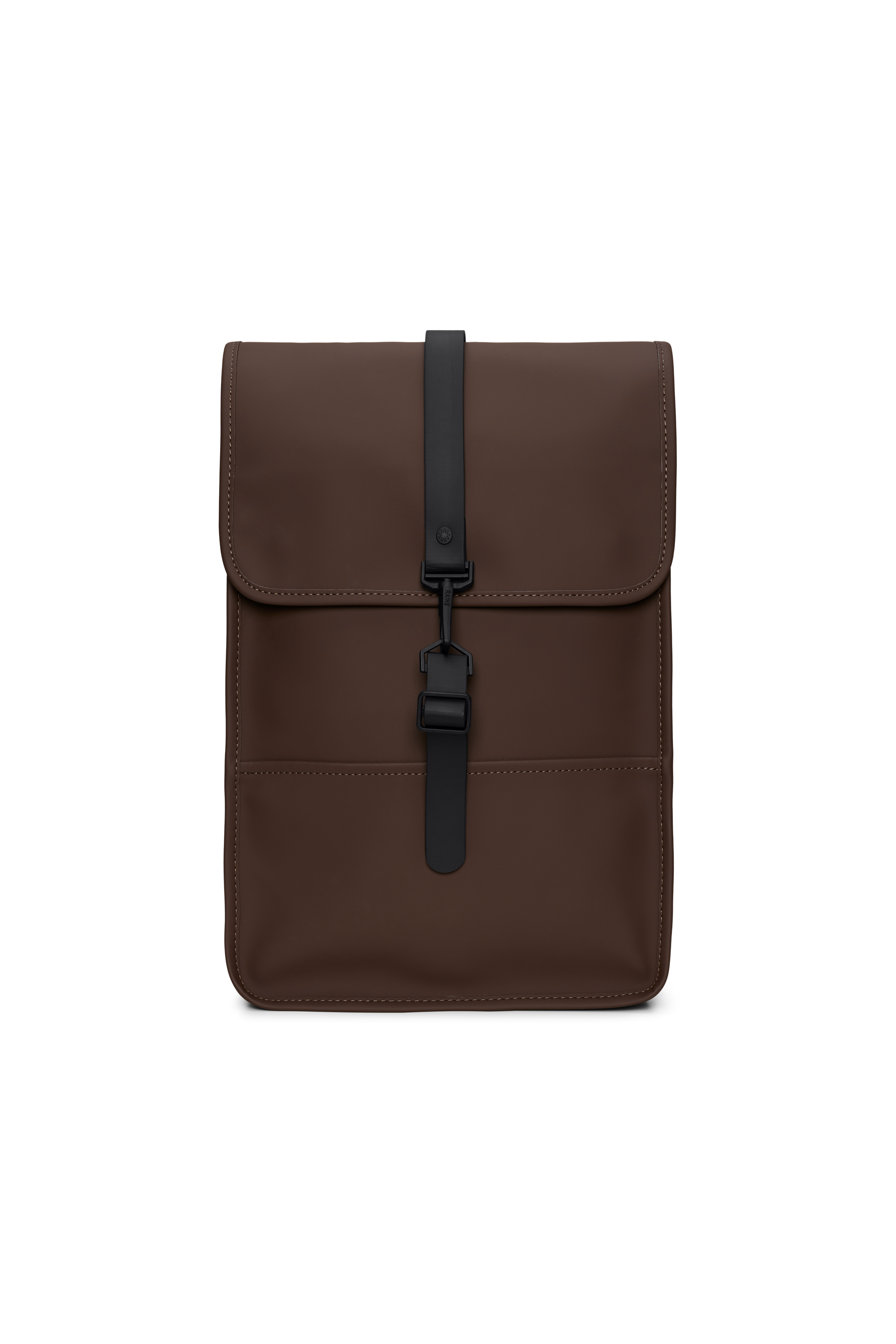 Backpack Mini is a downscaled version of Backpack. The silhouette is characterized by its prominent flap and central strap with carabiner closure. This clean and ever contemporary waterproof rucksack features an internal laptop pocket, a main compartment, and a concealed external phone pocket on the back panel. Backpack Mini is cut in Rains' signature waterproof PU fabric, engineered for carrying strength, durability, and a smooth feel.