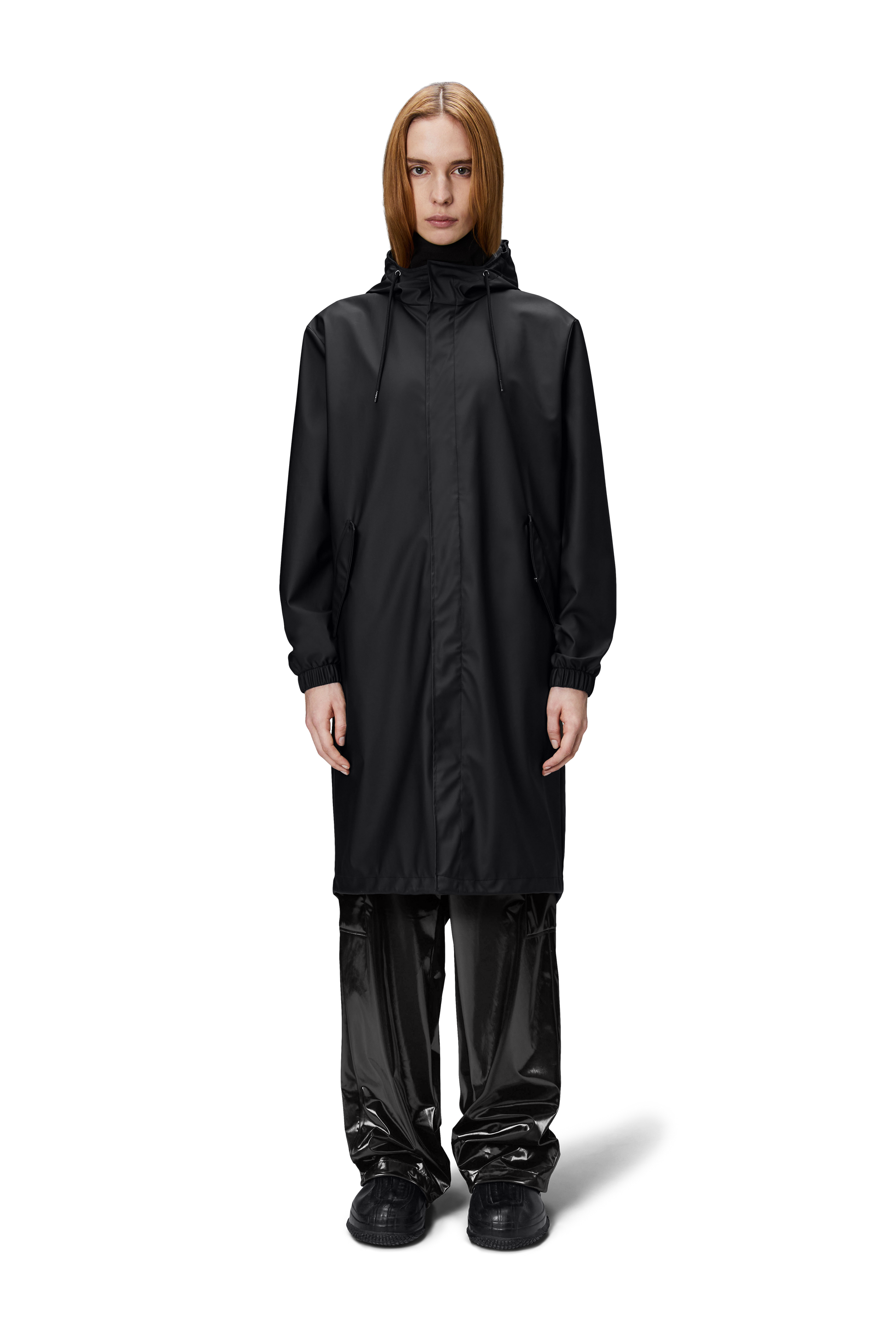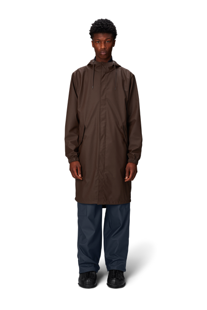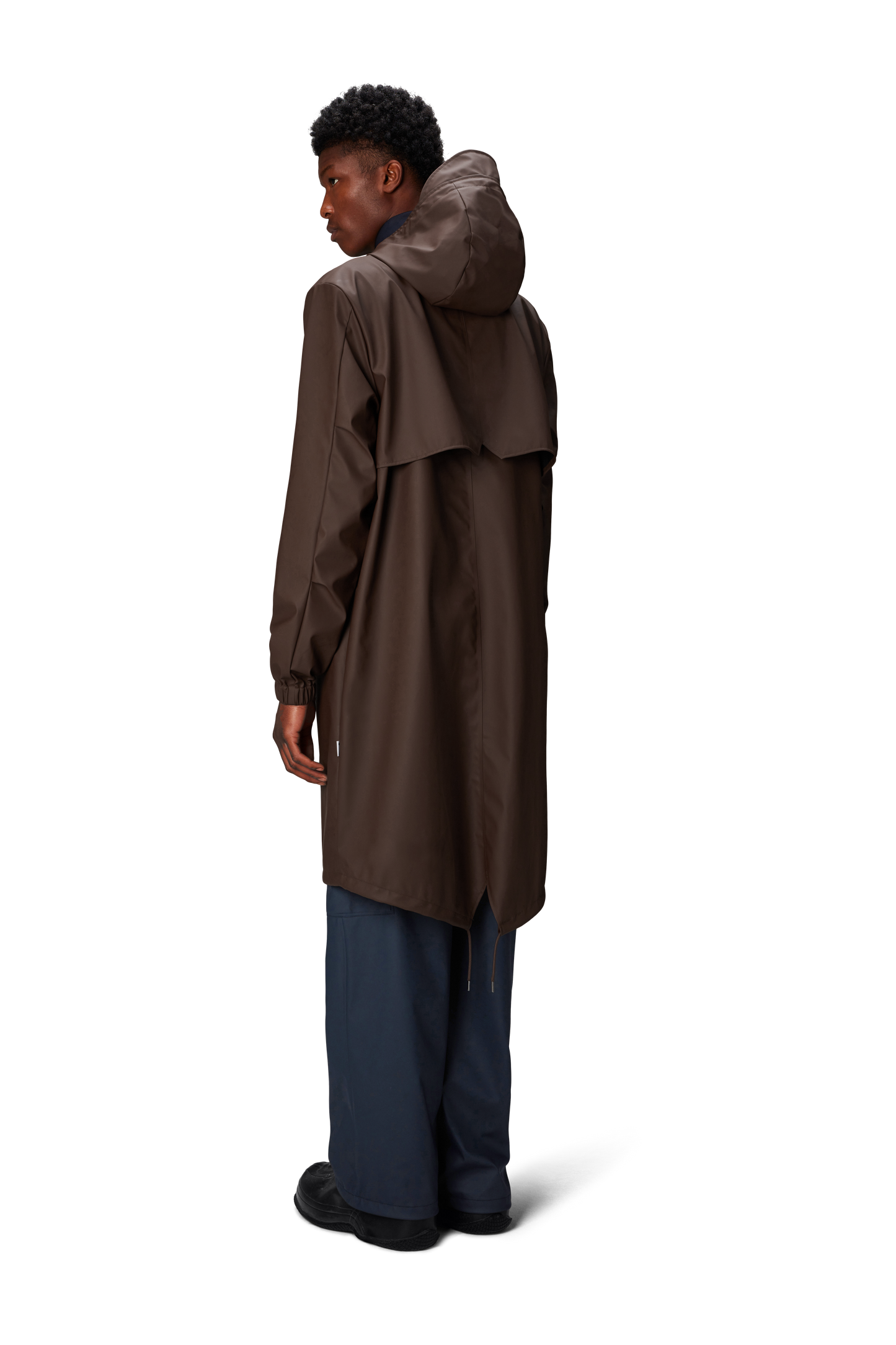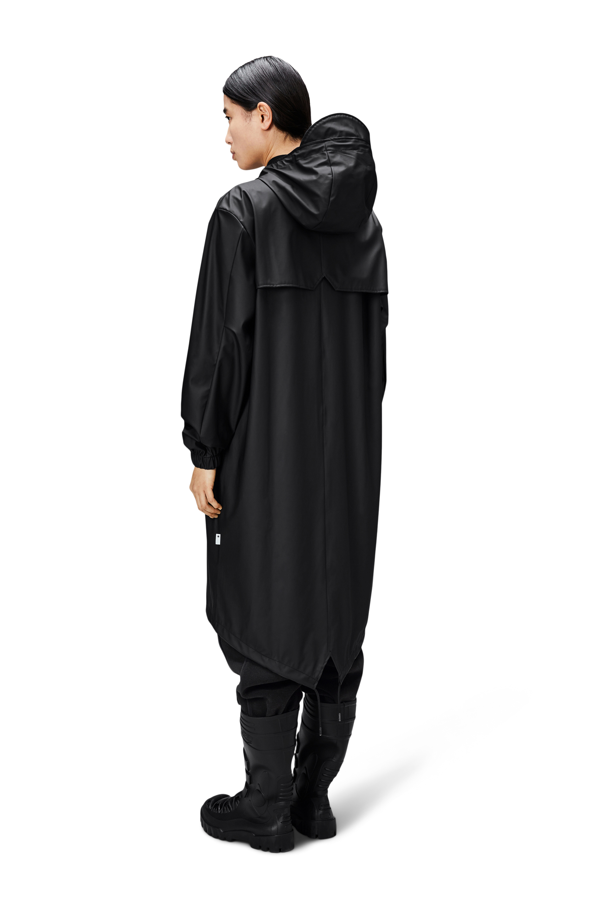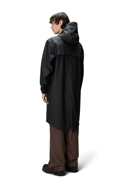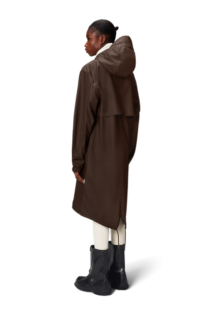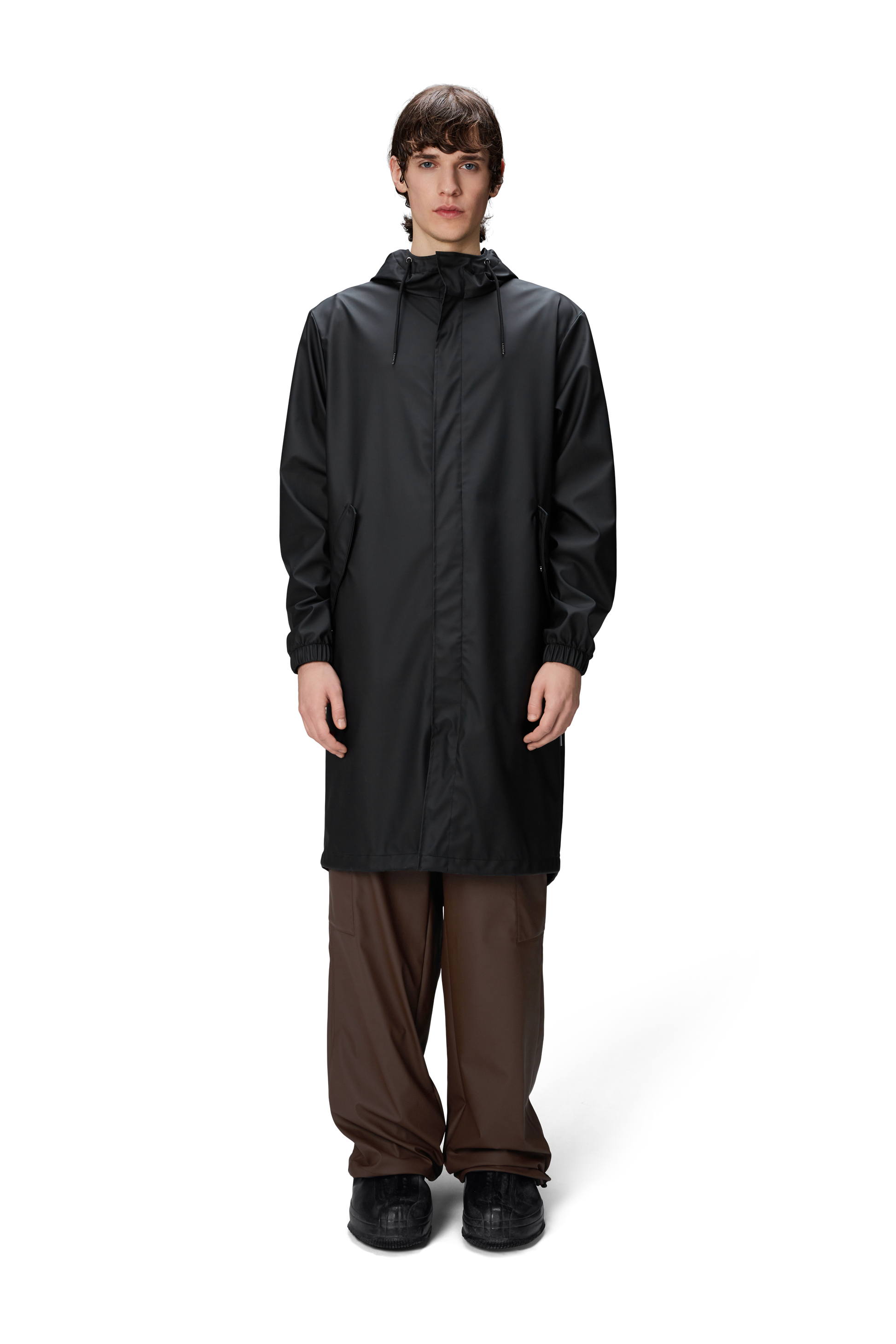 Fishtail Parka is a unisex raincoat. Characterized by its pared-back aesthetic and drawstring fishtail hem in parka-length. This design features utility-inspired pockets, vented back yoke and a hood with built-in cap and drawstring. Style is finished with elasticated cuffs for a tighter fit around wrist. Fishtail Parka has a casual fit with an elegant drape, making it a clear cut raincoat for daily commutes. The coated zip closure is concealed by a placket with snap fastenings. This rain jacket is cut from Rains' signature PU fabric and features welded seams. The finish is lightweight with a smooth feel.