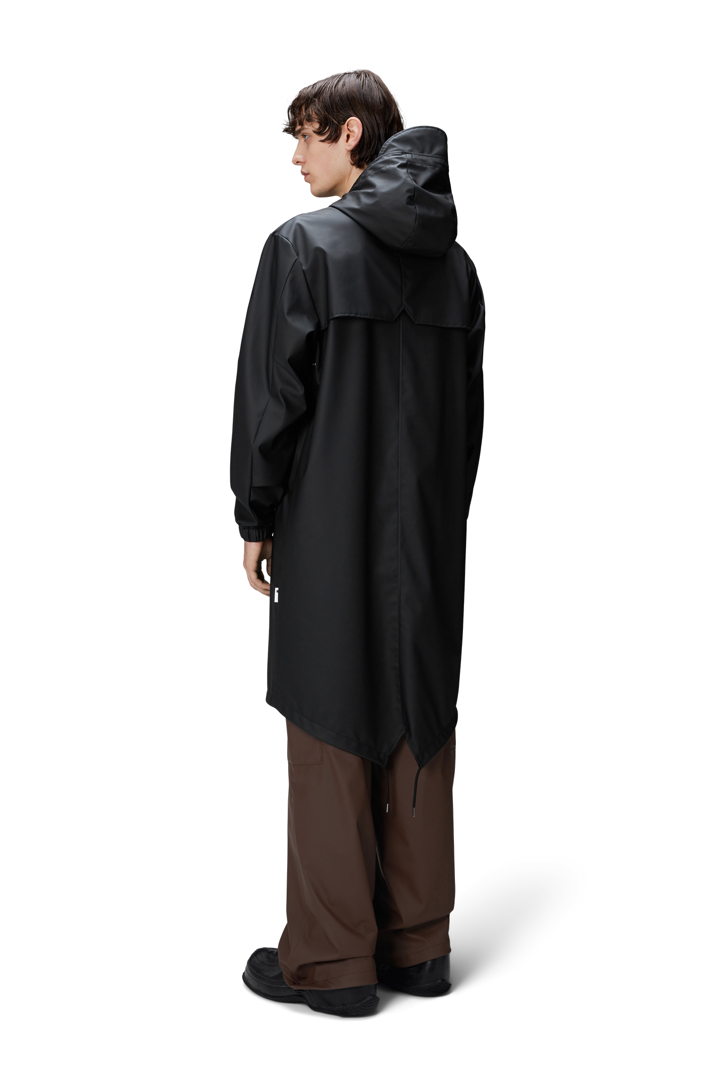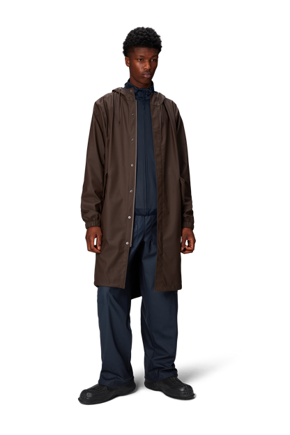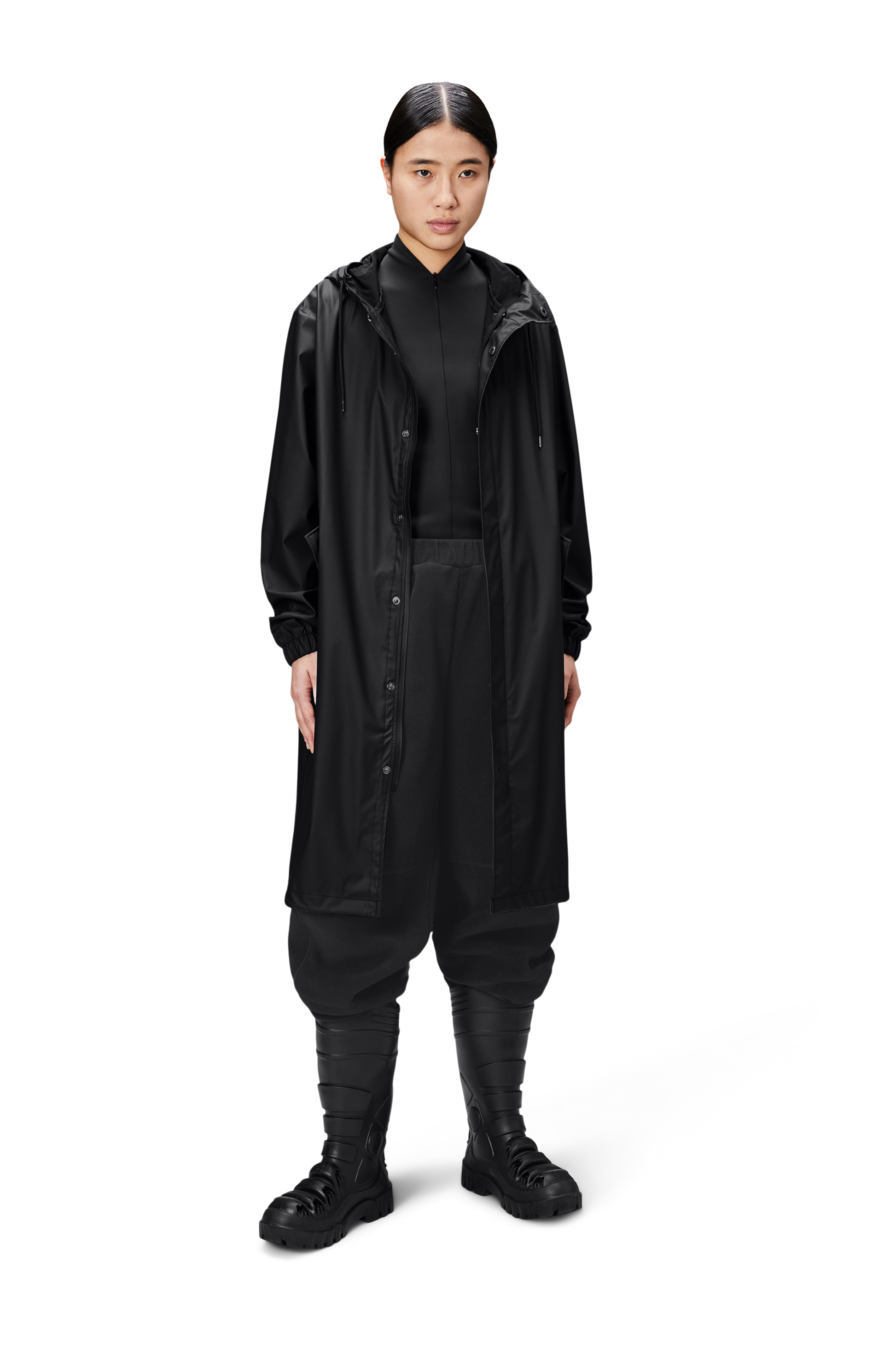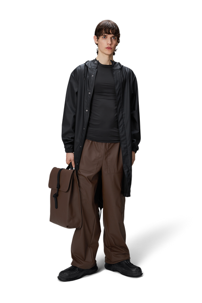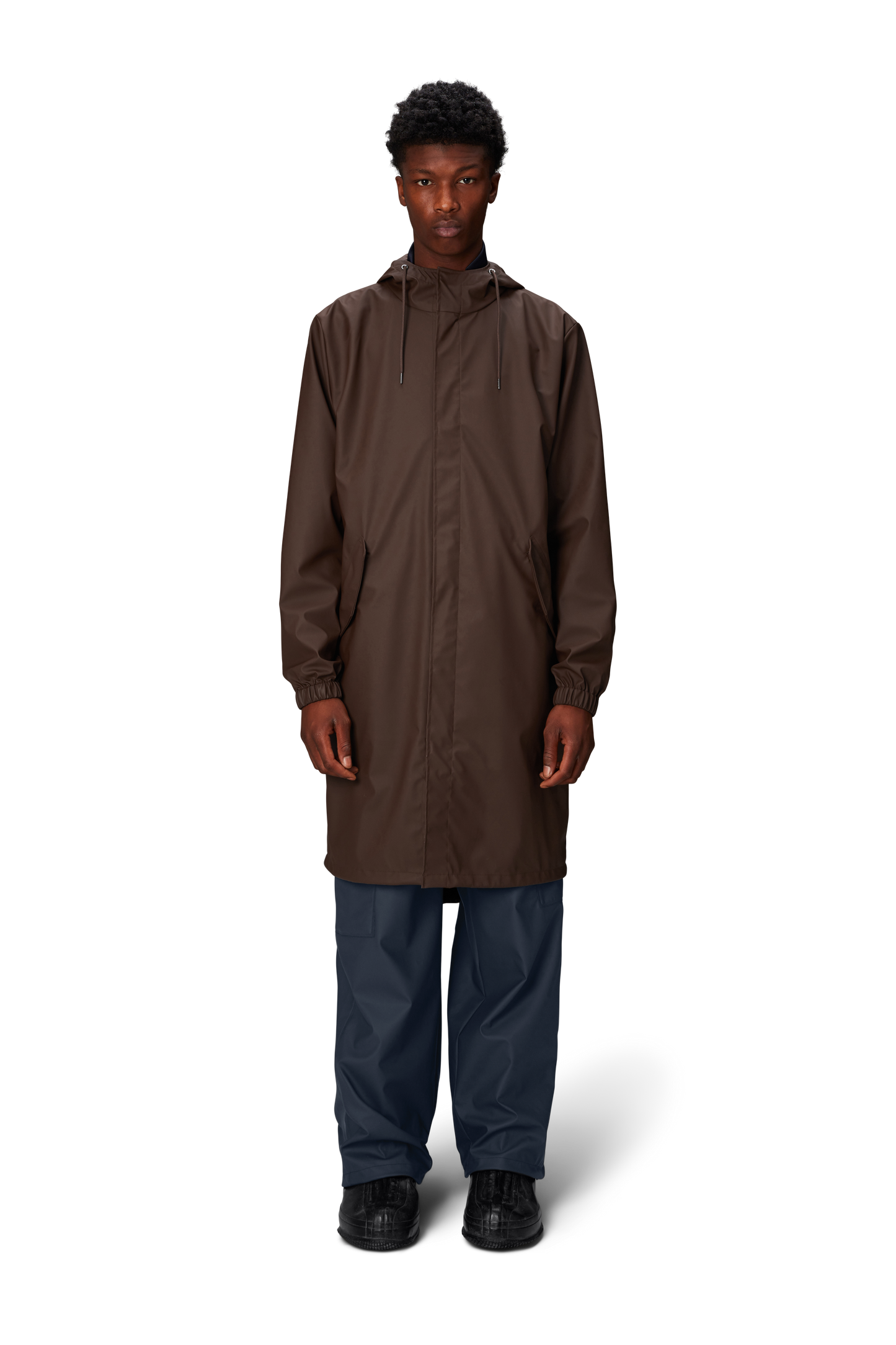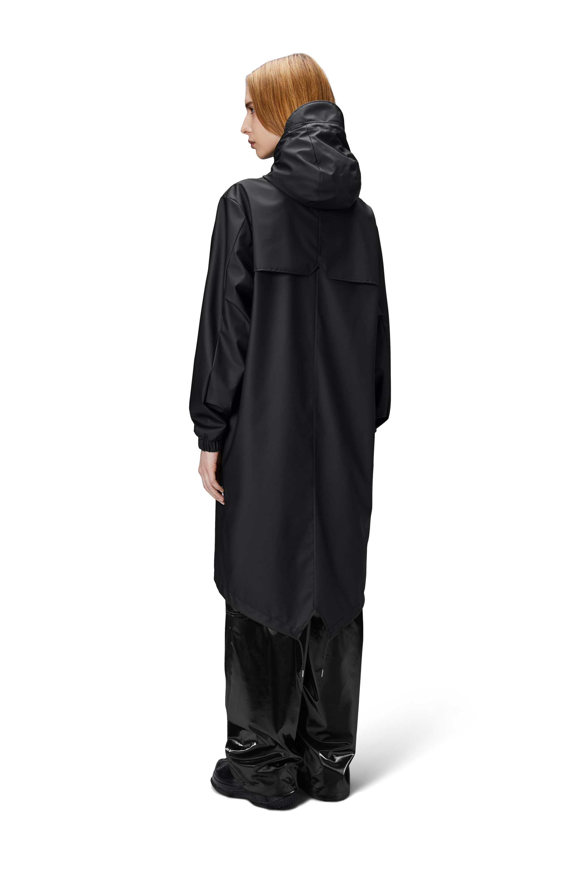 Fishtail Parka is a unisex raincoat. Characterized by its pared-back aesthetic and drawstring fishtail hem in parka-length. This design features utility-inspired pockets, vented back yoke and a hood with built-in cap and drawstring. Style is finished with elasticated cuffs for a tighter fit around wrist. Fishtail Parka has a casual fit with an elegant drape, making it a clear cut raincoat for daily commutes. The coated zip closure is concealed by a placket with snap fastenings. This rain jacket is cut from Rains' signature PU fabric and features welded seams. The finish is lightweight with a smooth feel.