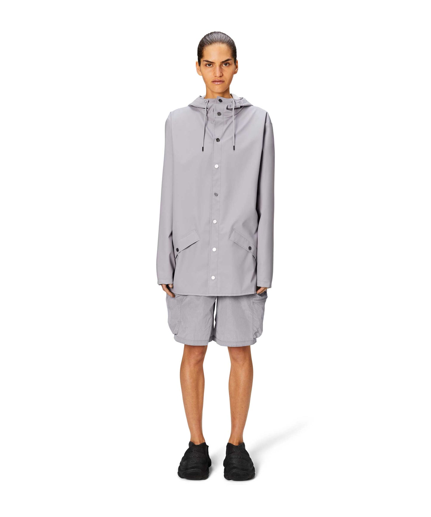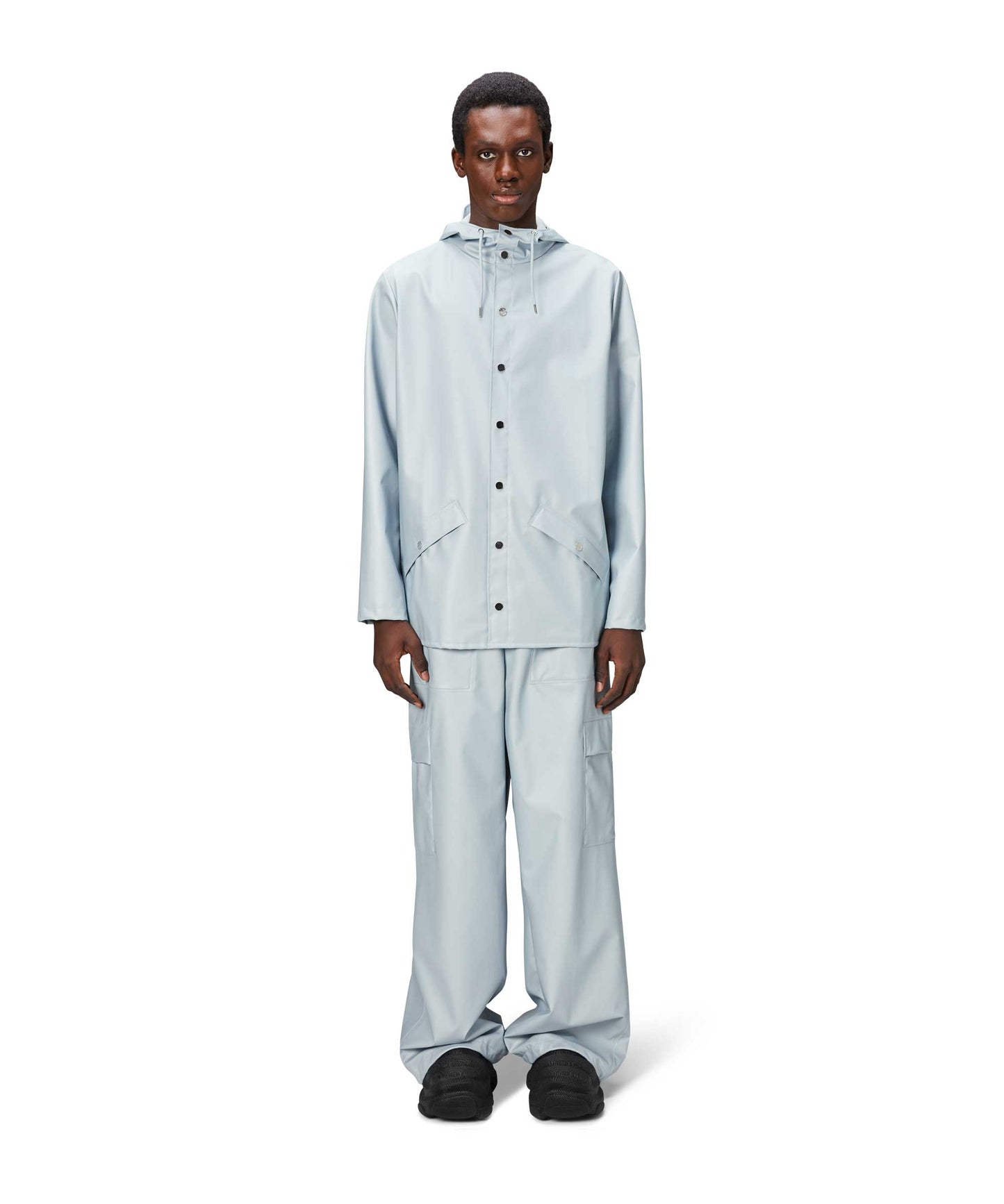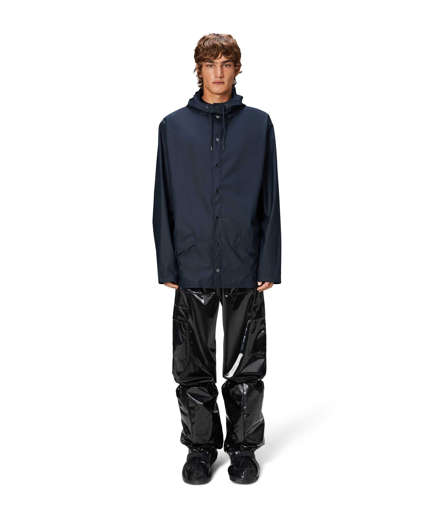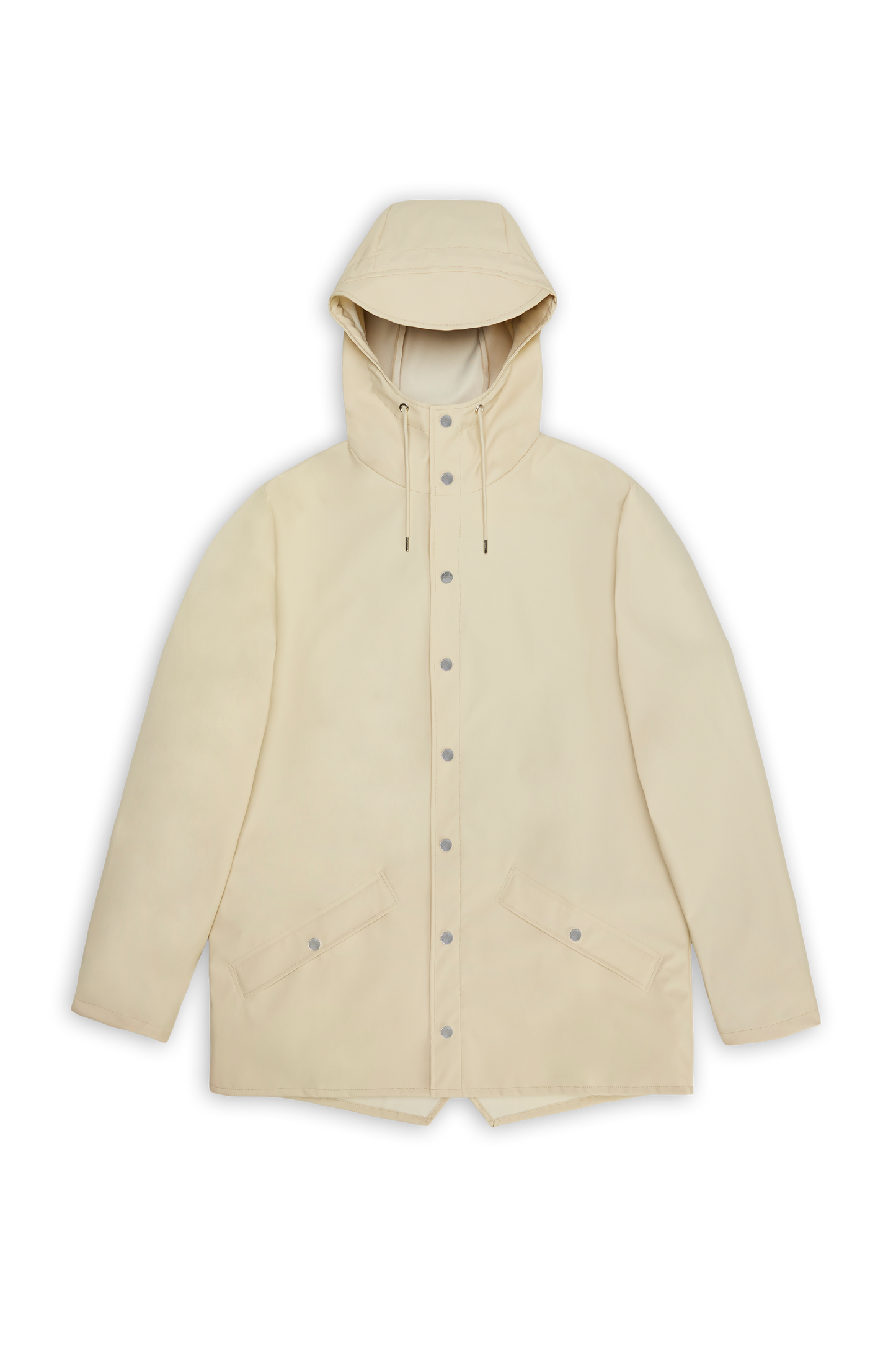 This contemporary unisex Rains Jacket is characterized by a minimal silhouette and high functionality. Featuring a placket with snap fastenings for closure, hood with built-in cap and two side pockets with snaps, it is completed with under-arm eyelets and a back yoke with concealed vents for breathable comfort. The sleeves are finished with snaps for an adjustable fit. The easy-to-wear design features Rains' signature PU fabric and features welded seams, for a lightweight finish and smooth feel.