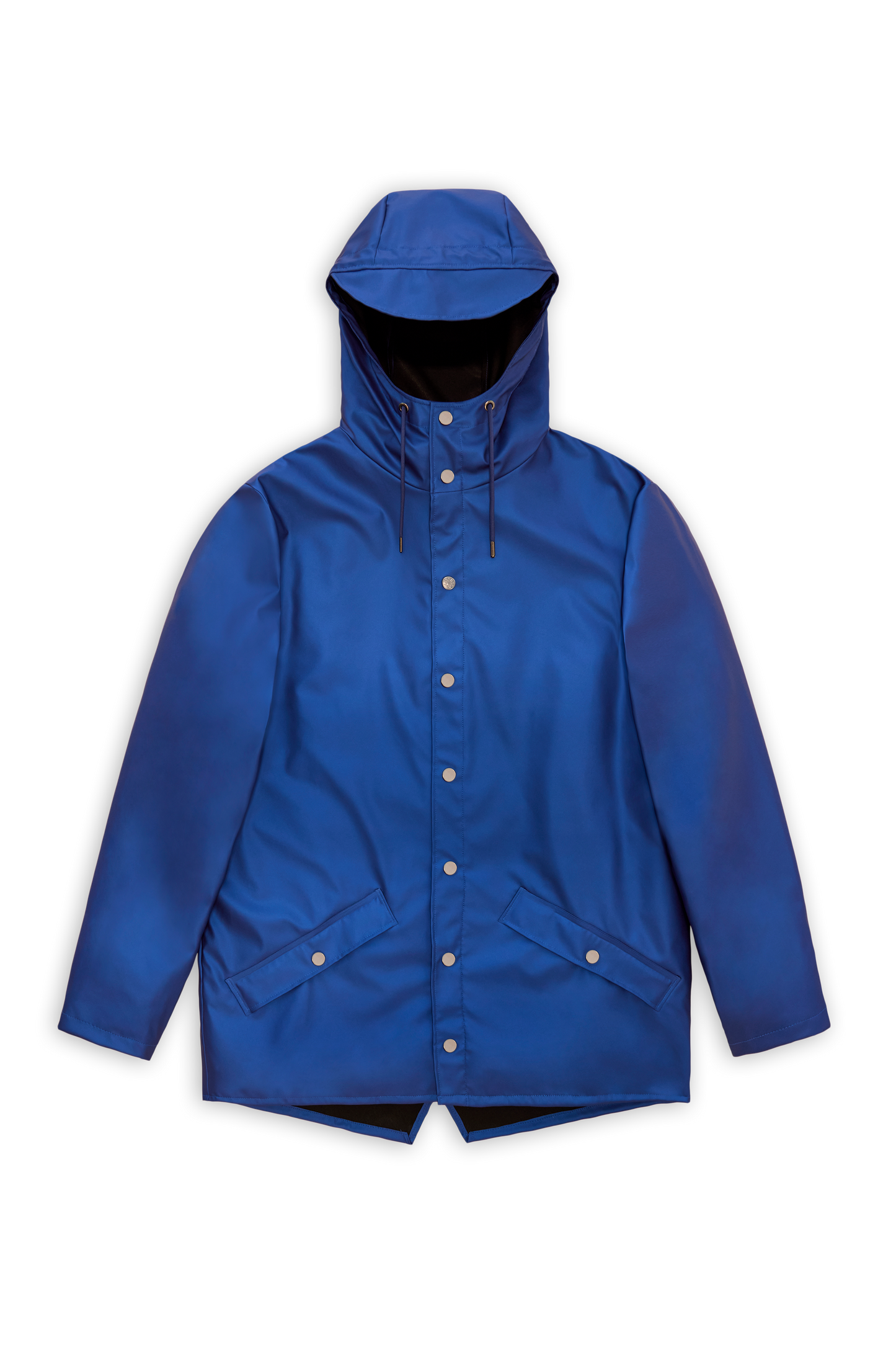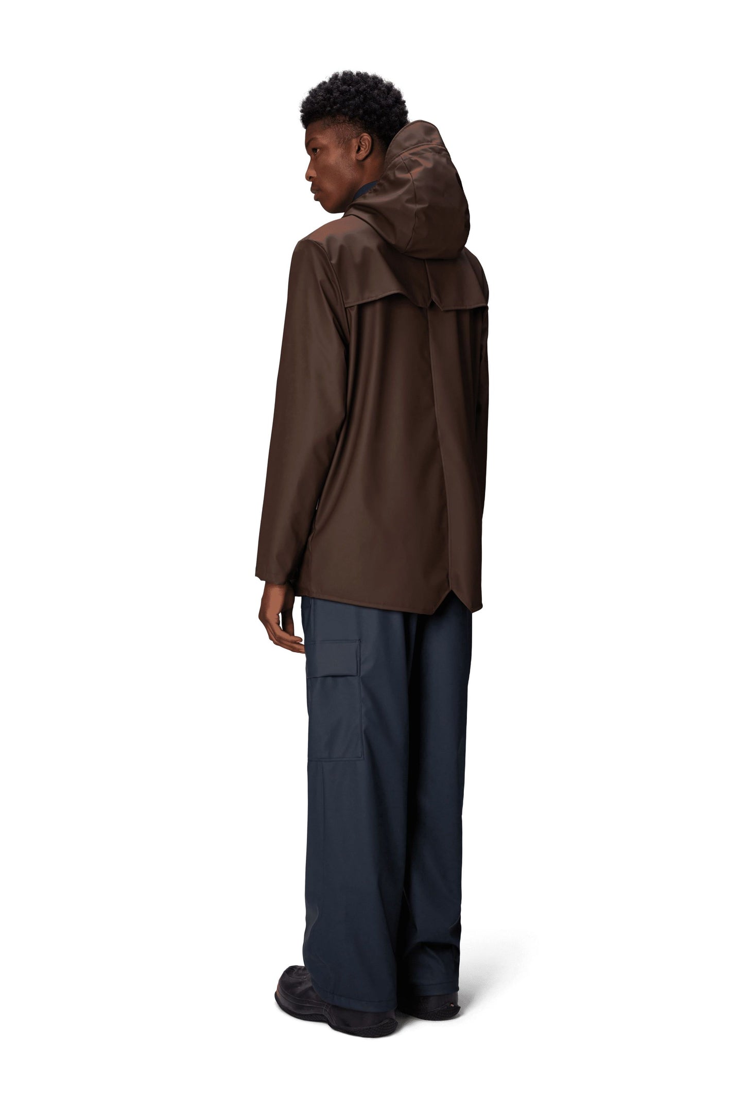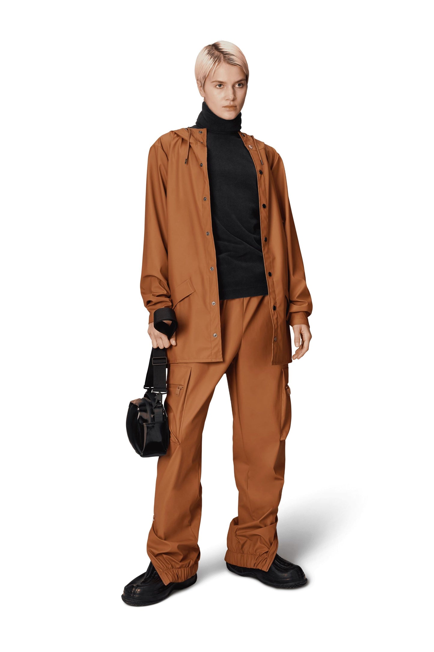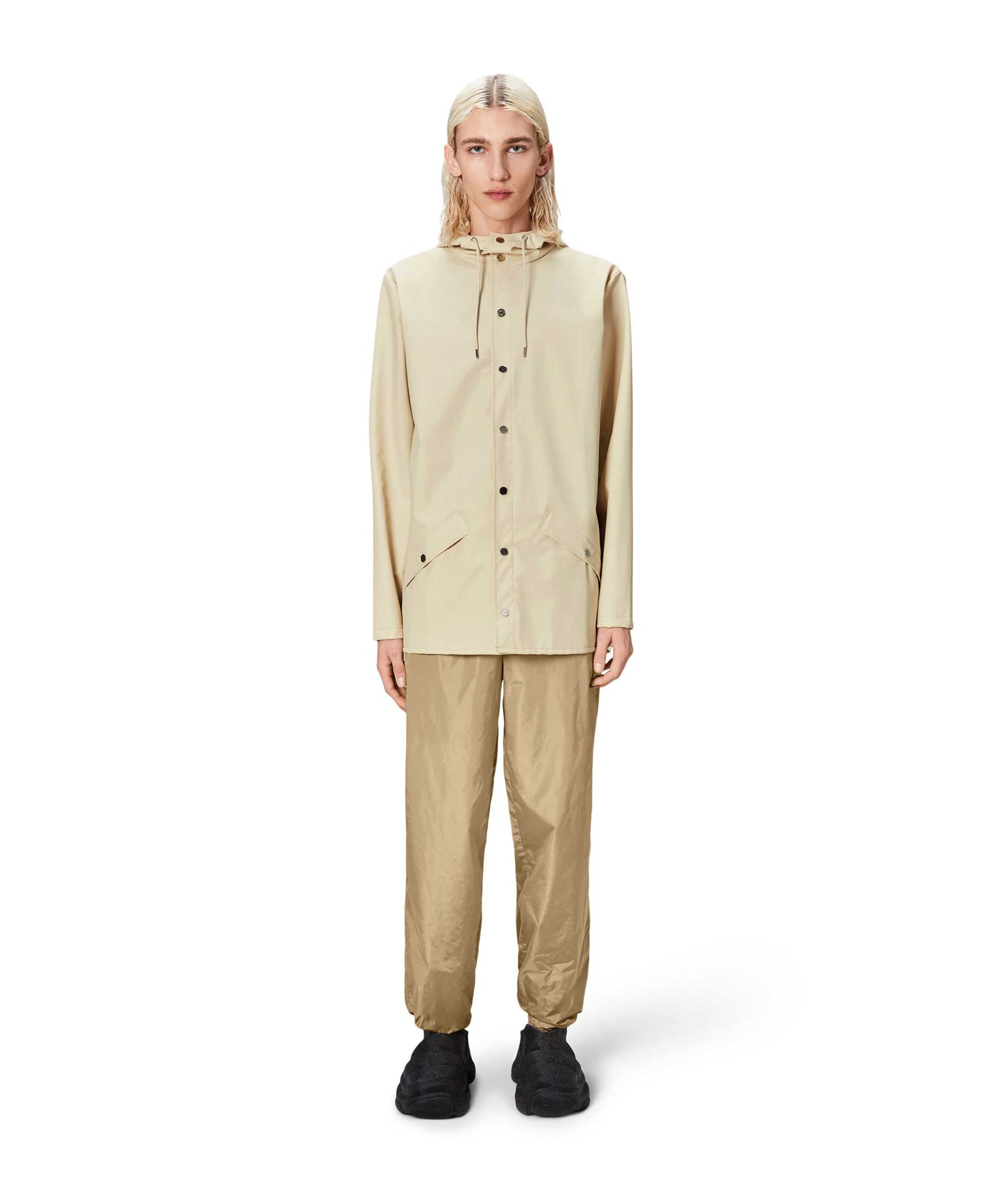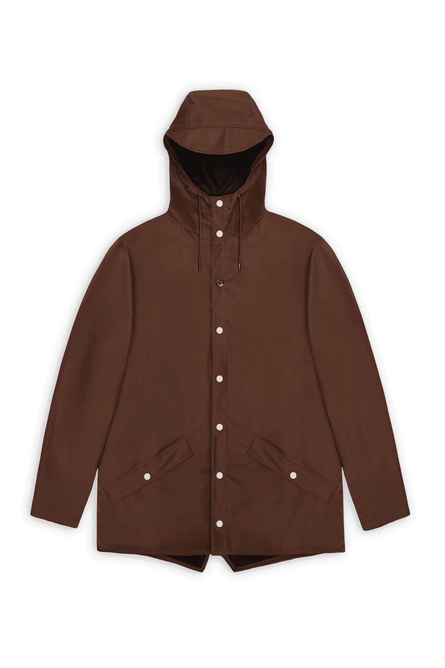This contemporary unisex Rains Jacket is characterized by a minimal silhouette and high functionality. Featuring a placket with snap fastenings for closure, hood with built-in cap and two side pockets with snaps, it is completed with under-arm eyelets and a back yoke with concealed vents for breathable comfort. The sleeves are finished with snaps for an adjustable fit. The easy-to-wear design features Rains' signature PU fabric and features welded seams, for a lightweight finish and smooth feel.
