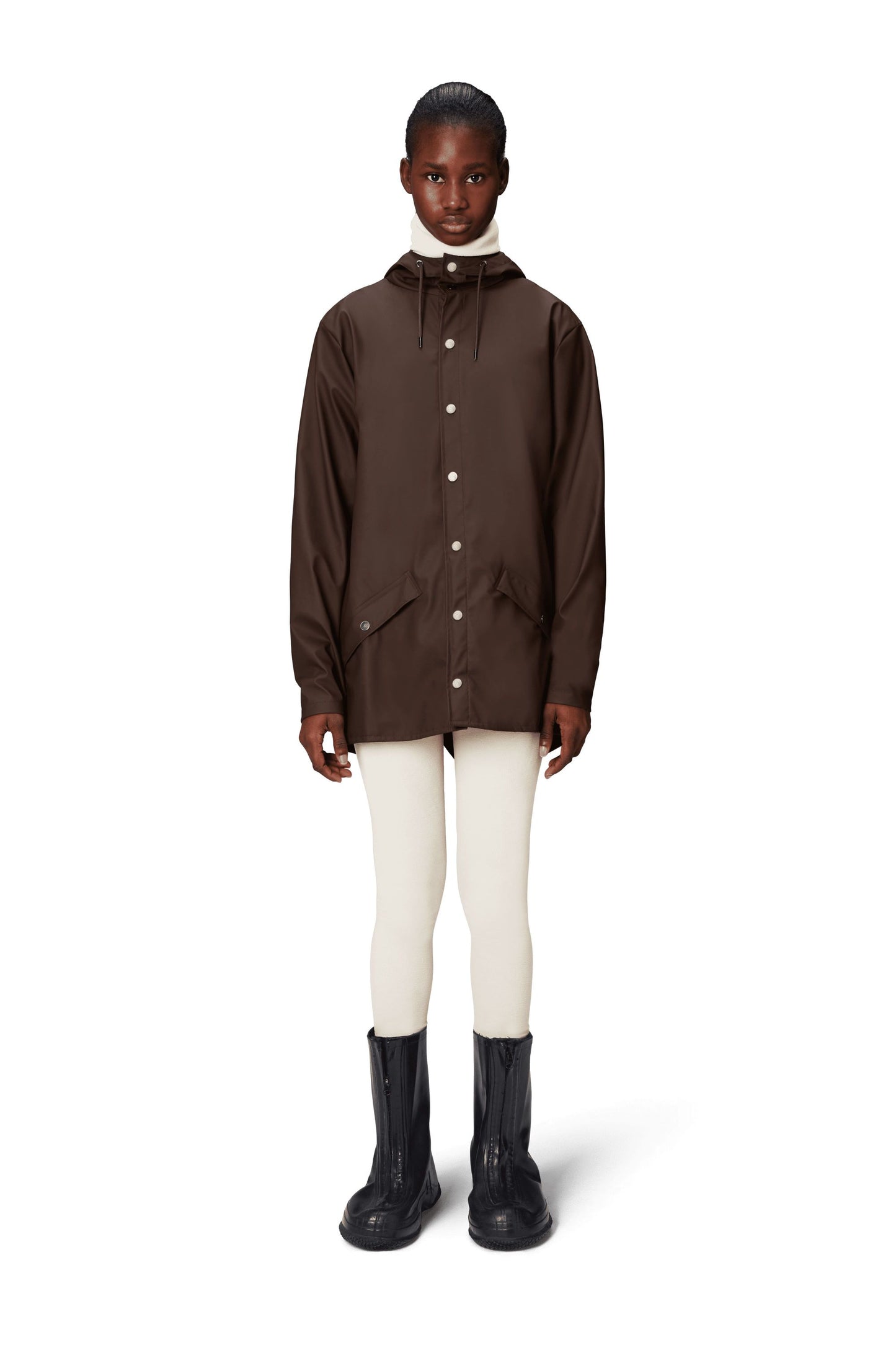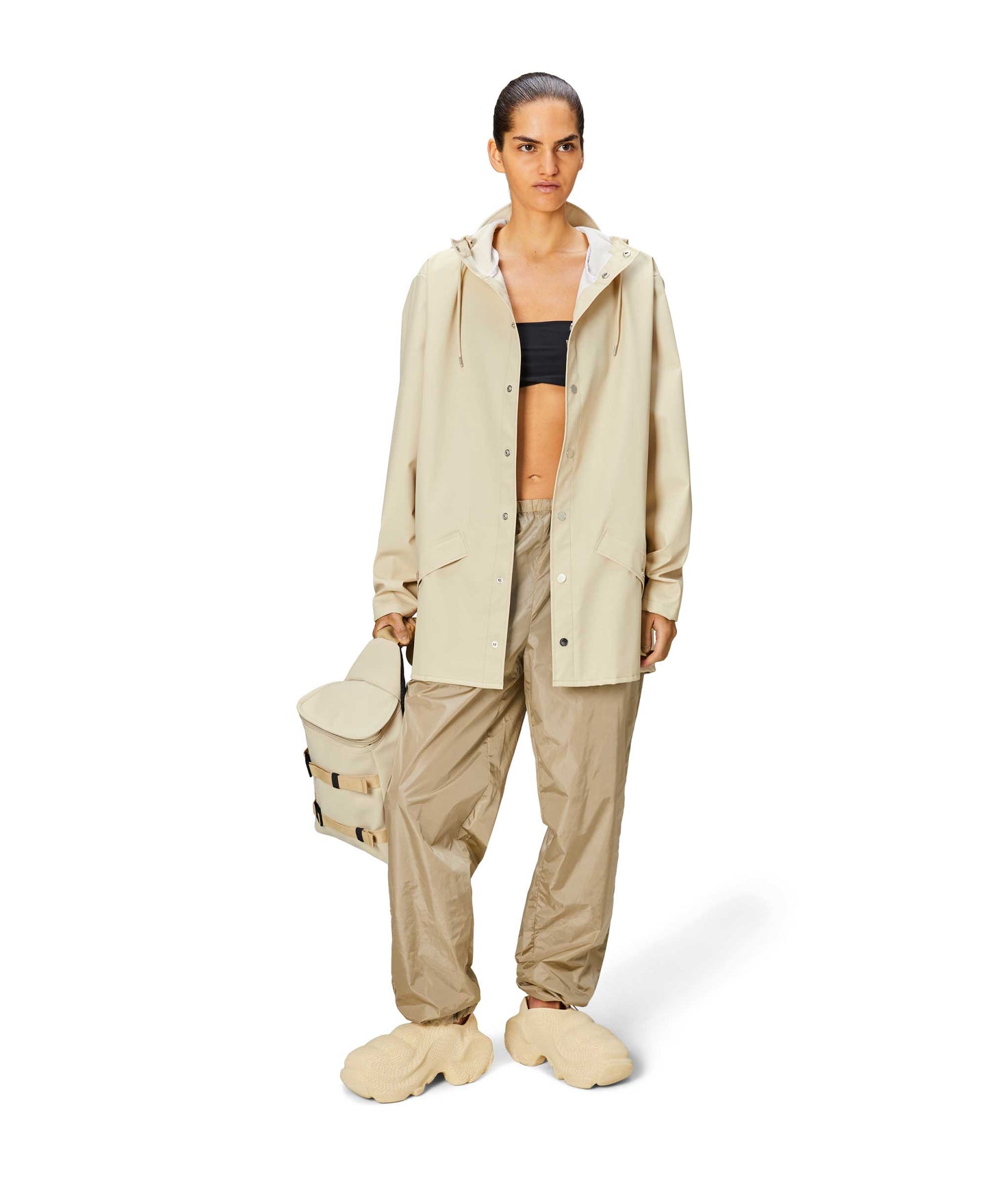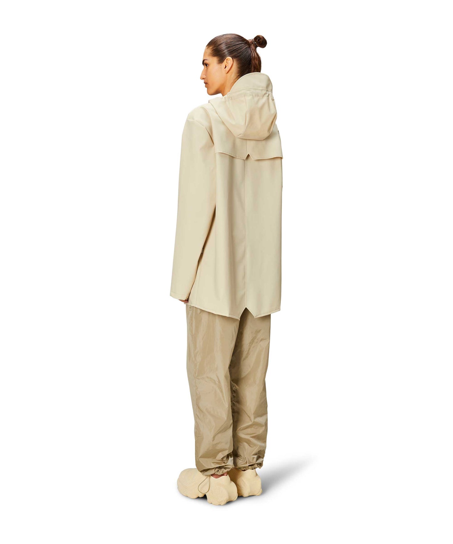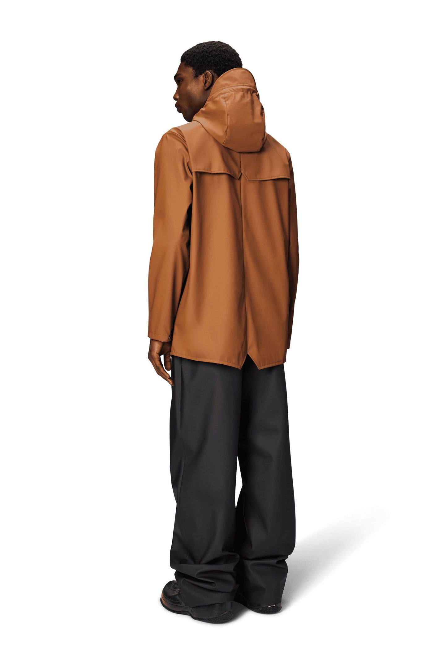 This contemporary unisex Rains Jacket is characterized by a minimal silhouette and high functionality. Featuring a placket with snap fastenings for closure, hood with built-in cap and two side pockets with snaps, it is completed with under-arm eyelets and a back yoke with concealed vents for breathable comfort. The sleeves are finished with snaps for an adjustable fit. The easy-to-wear design features Rains' signature PU fabric and features welded seams, for a lightweight finish and smooth feel.
