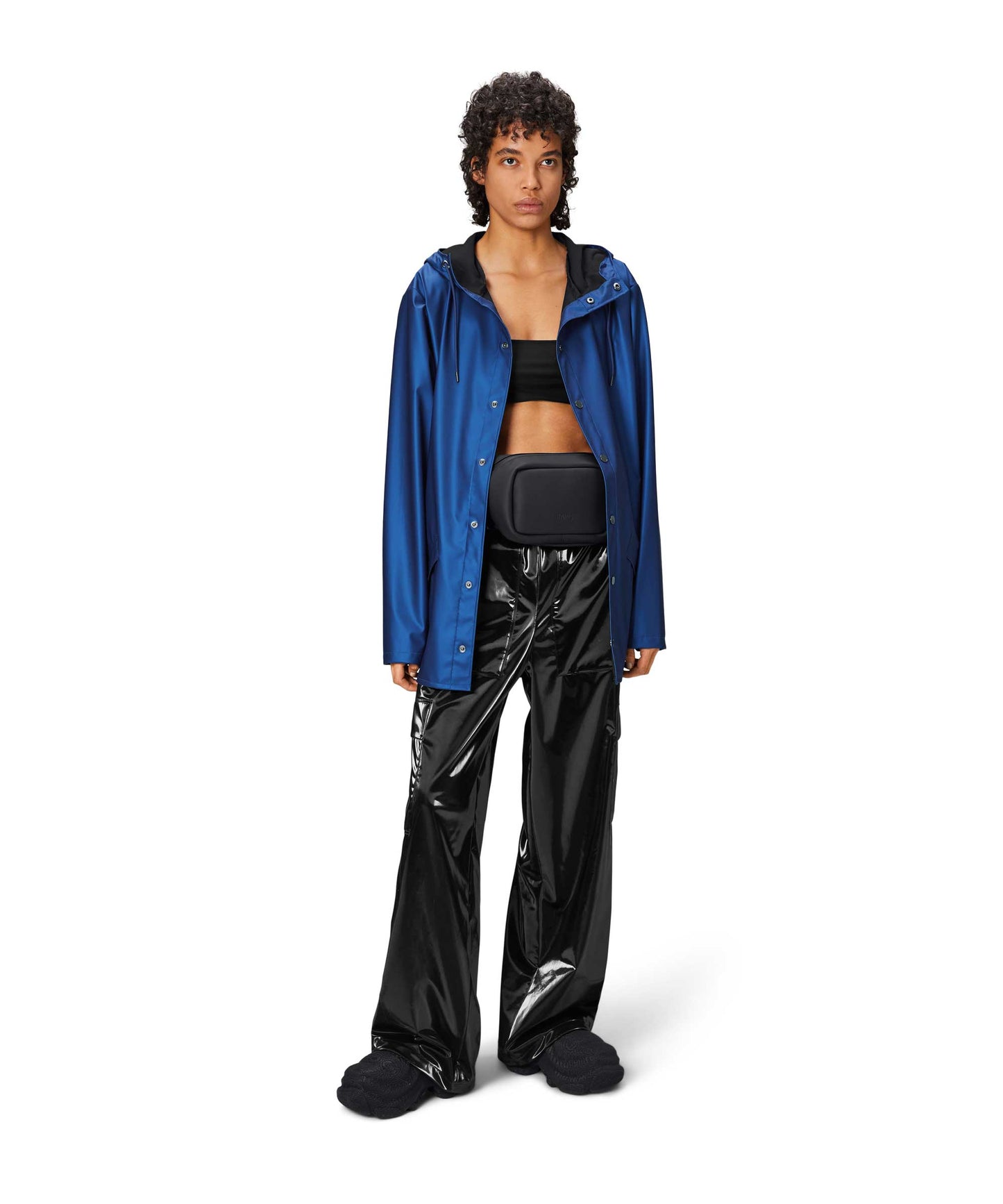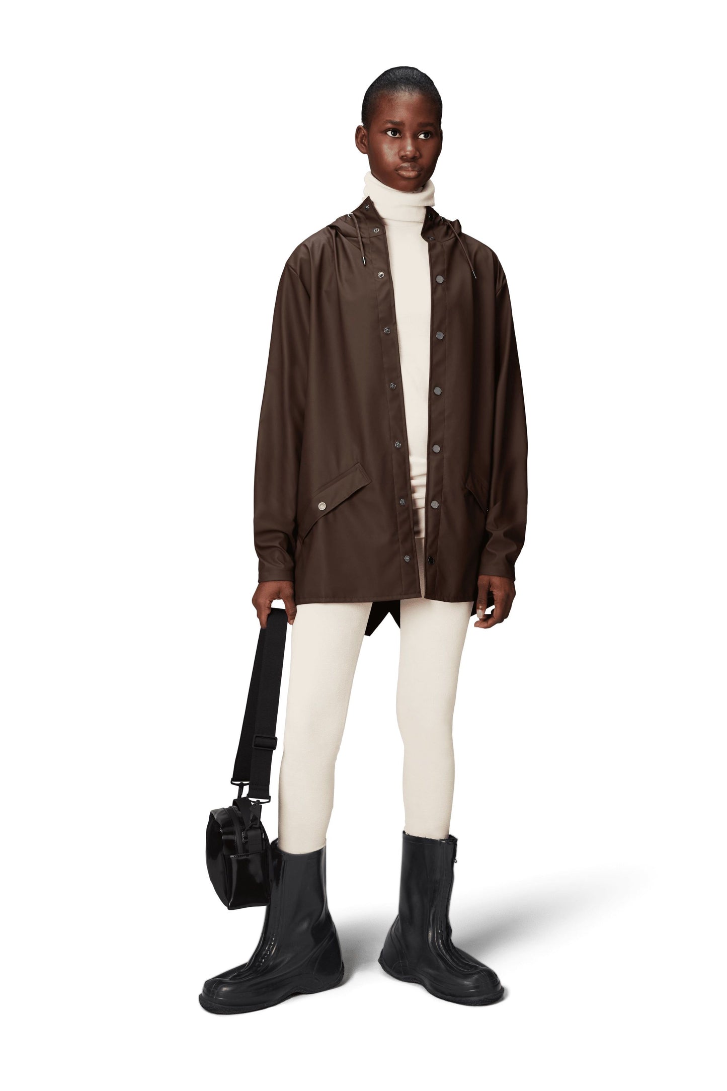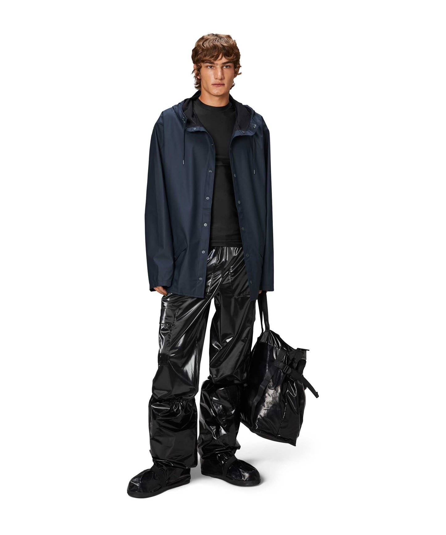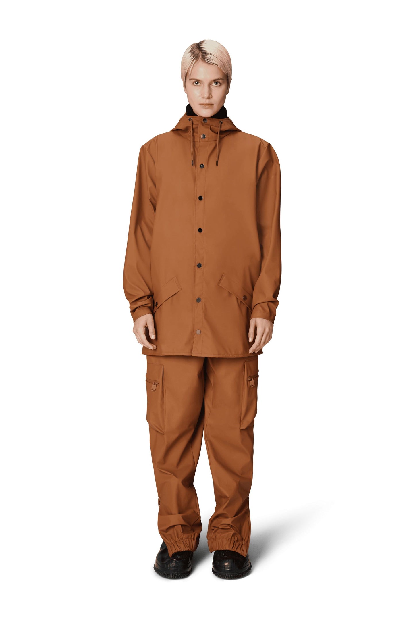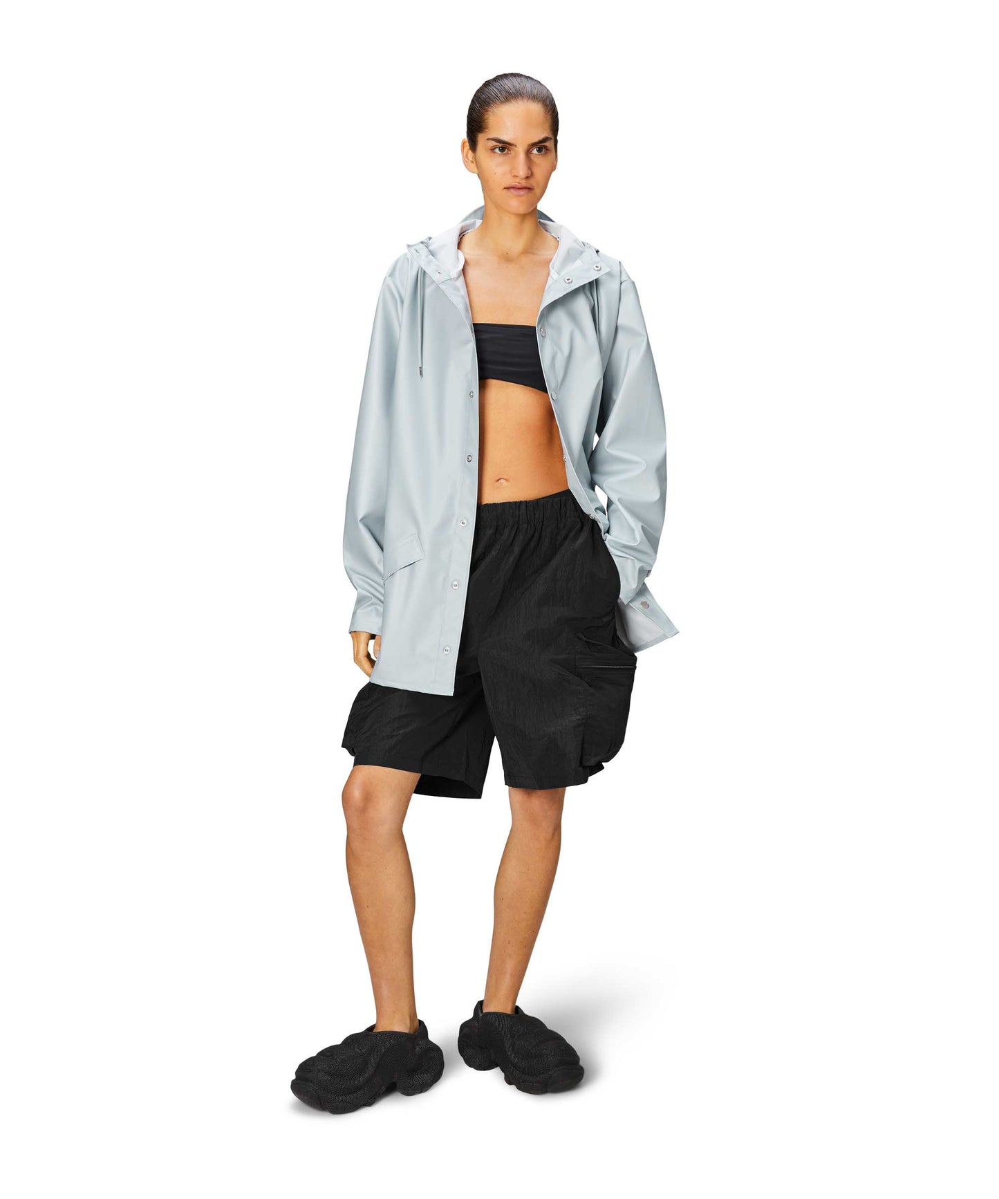 This contemporary unisex Rains Jacket is characterized by a minimal silhouette and high functionality. Featuring a placket with snap fastenings for closure, hood with built-in cap and two side pockets with snaps, it is completed with under-arm eyelets and a back yoke with concealed vents for breathable comfort. The sleeves are finished with snaps for an adjustable fit. The easy-to-wear design features Rains' signature PU fabric and features welded seams, for a lightweight finish and smooth feel.