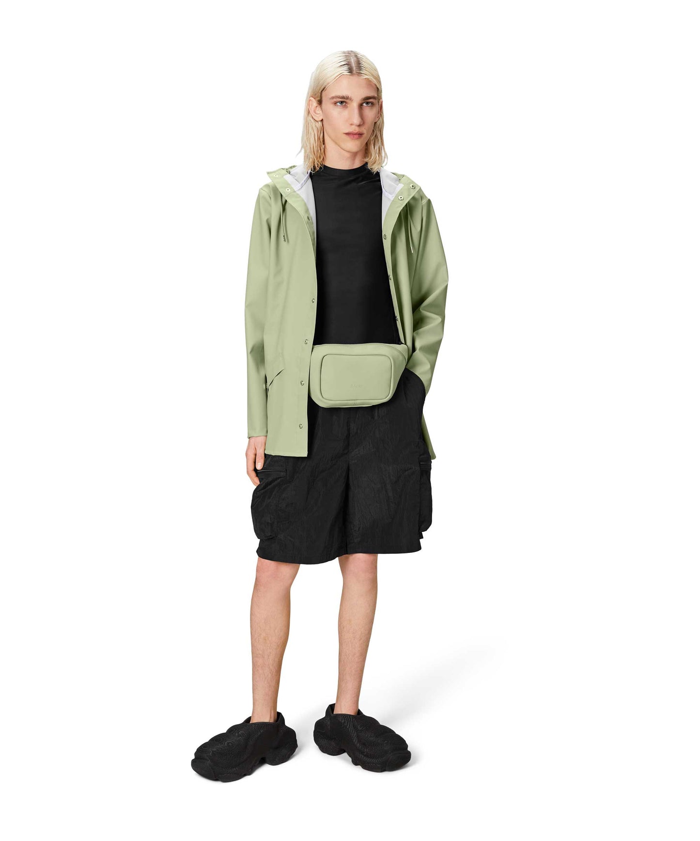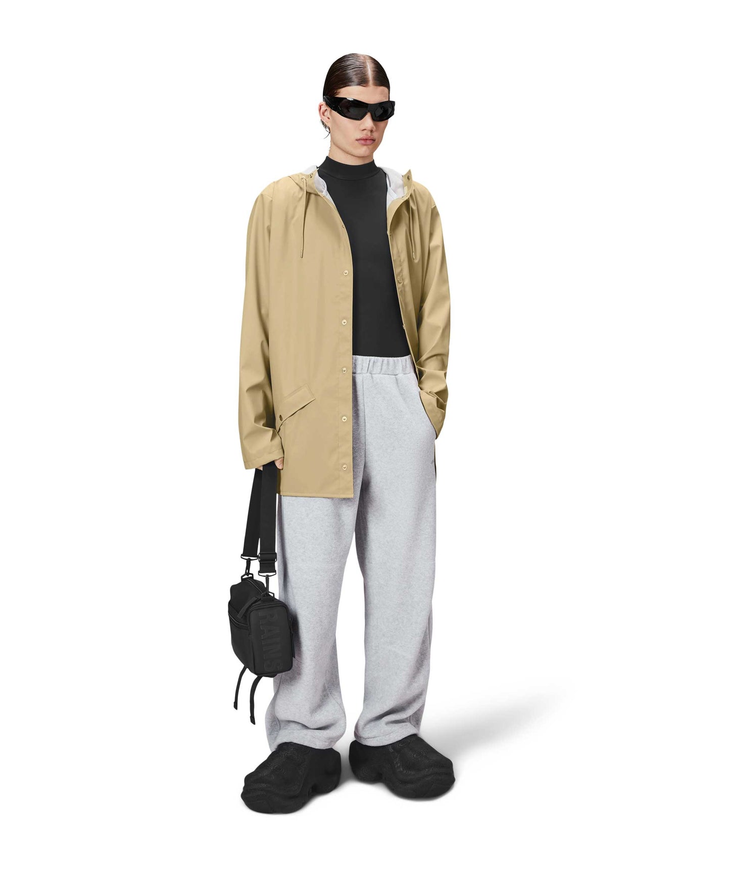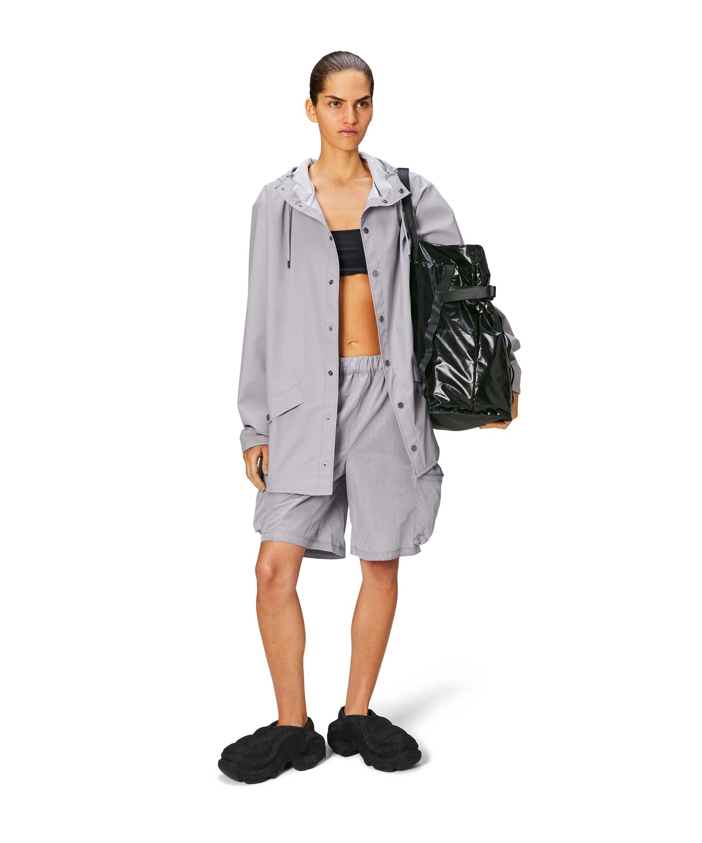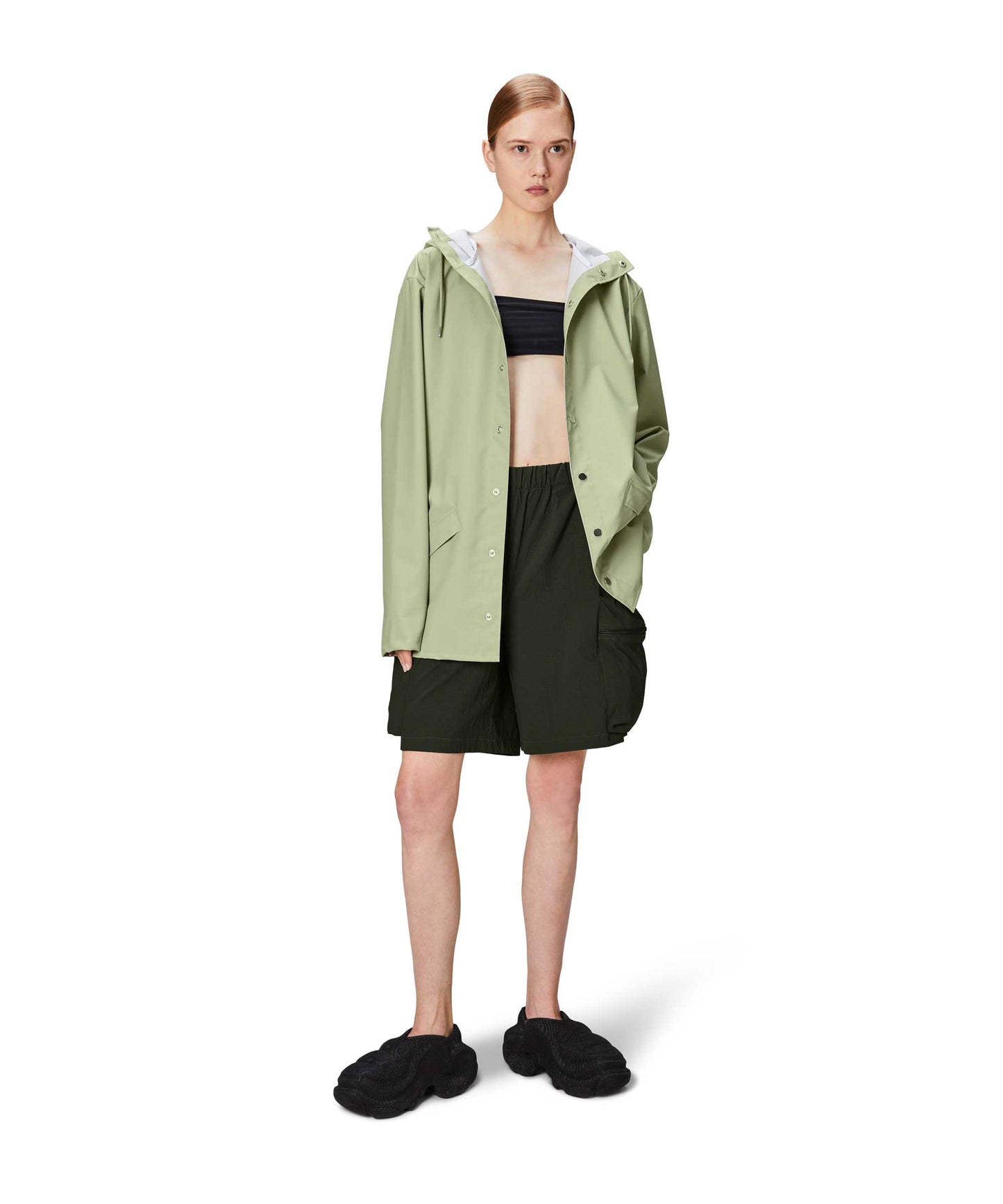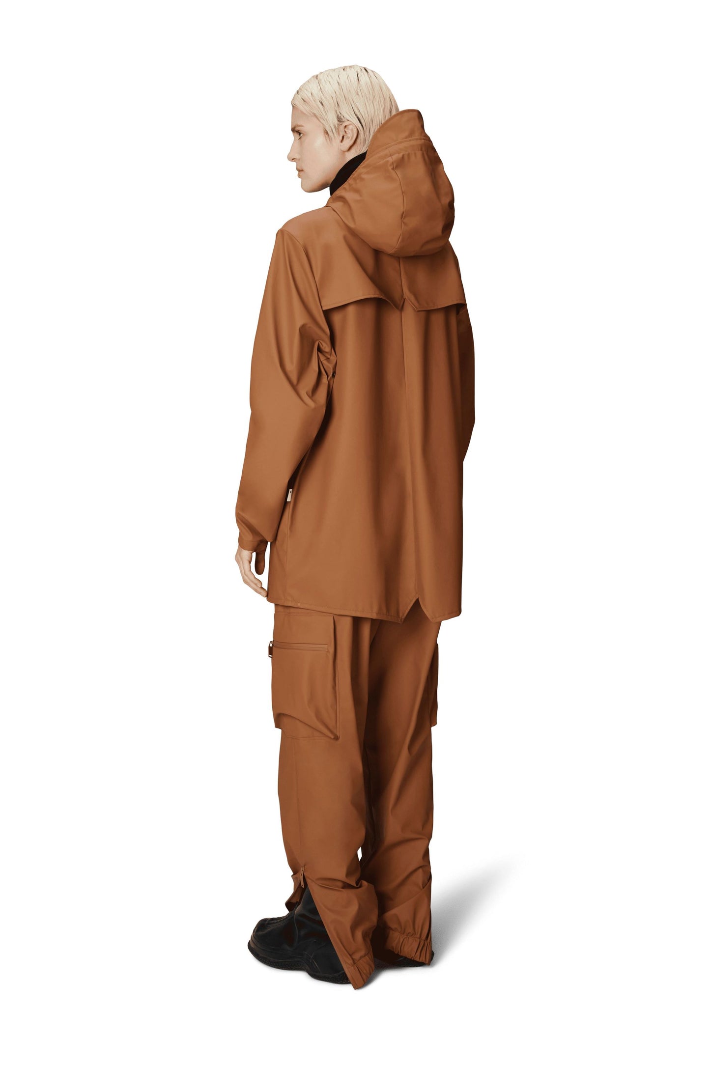 This contemporary unisex Rains Jacket is characterized by a minimal silhouette and high functionality. Featuring a placket with snap fastenings for closure, hood with built-in cap and two side pockets with snaps, it is completed with under-arm eyelets and a back yoke with concealed vents for breathable comfort. The sleeves are finished with snaps for an adjustable fit. The easy-to-wear design features Rains' signature PU fabric and features welded seams, for a lightweight finish and smooth feel.