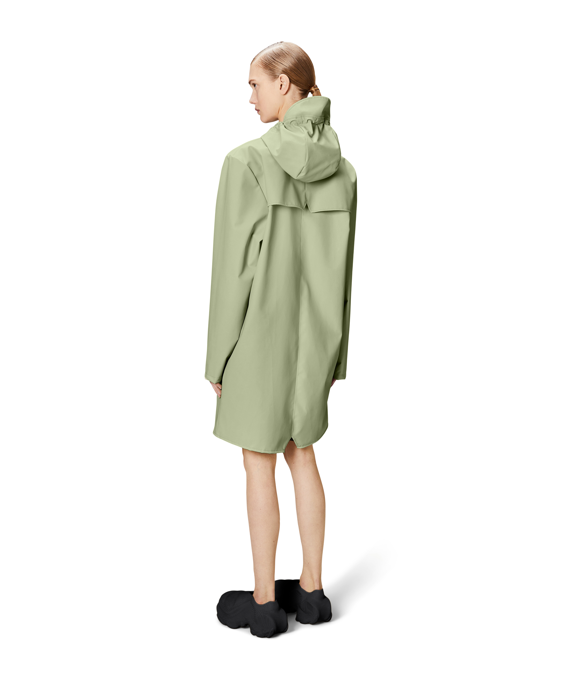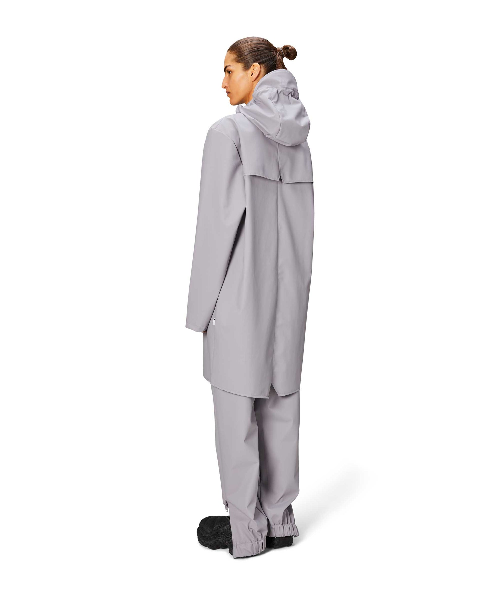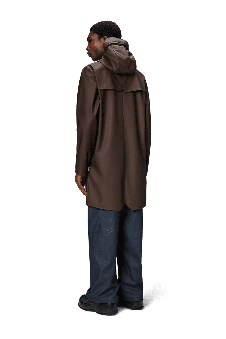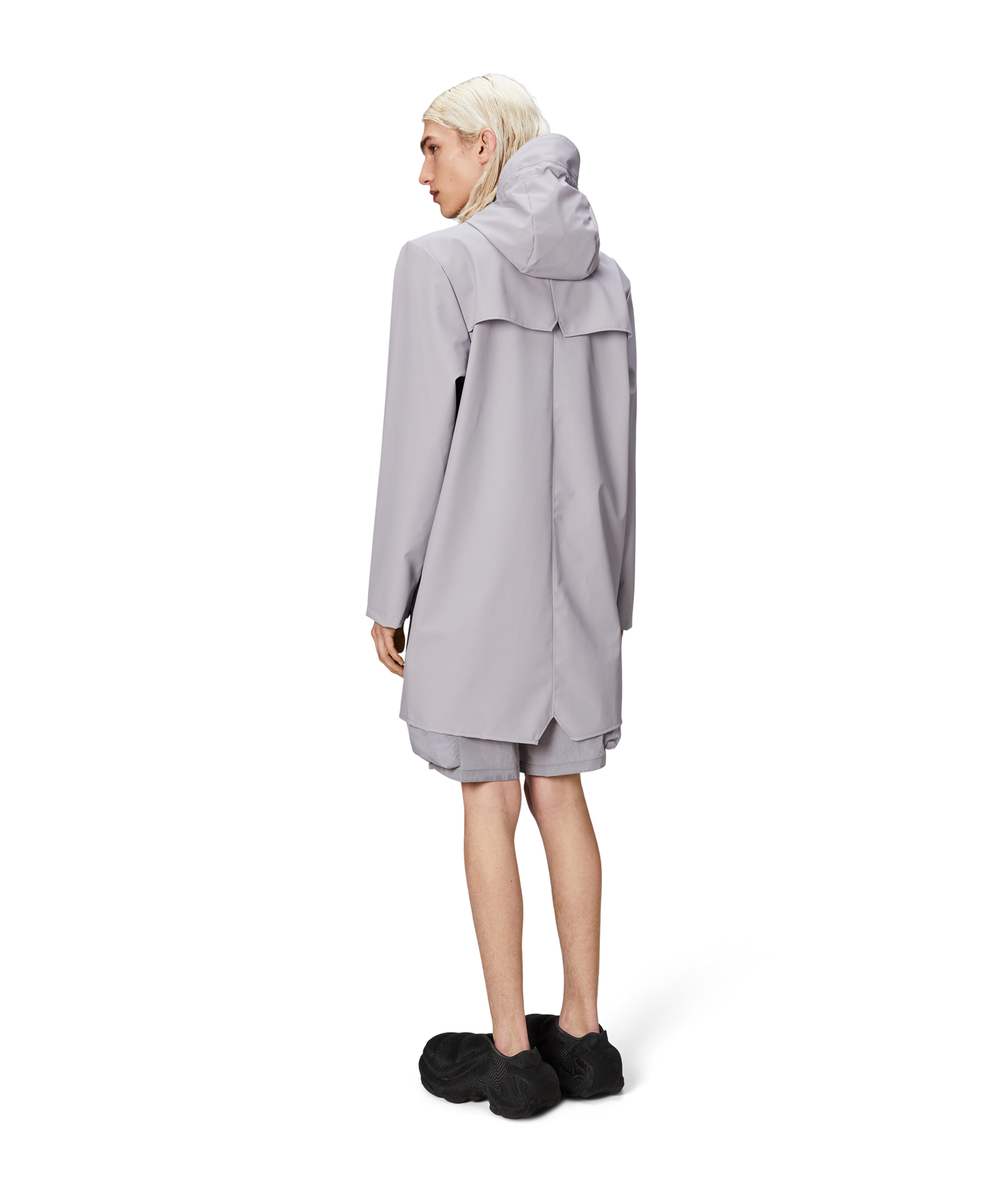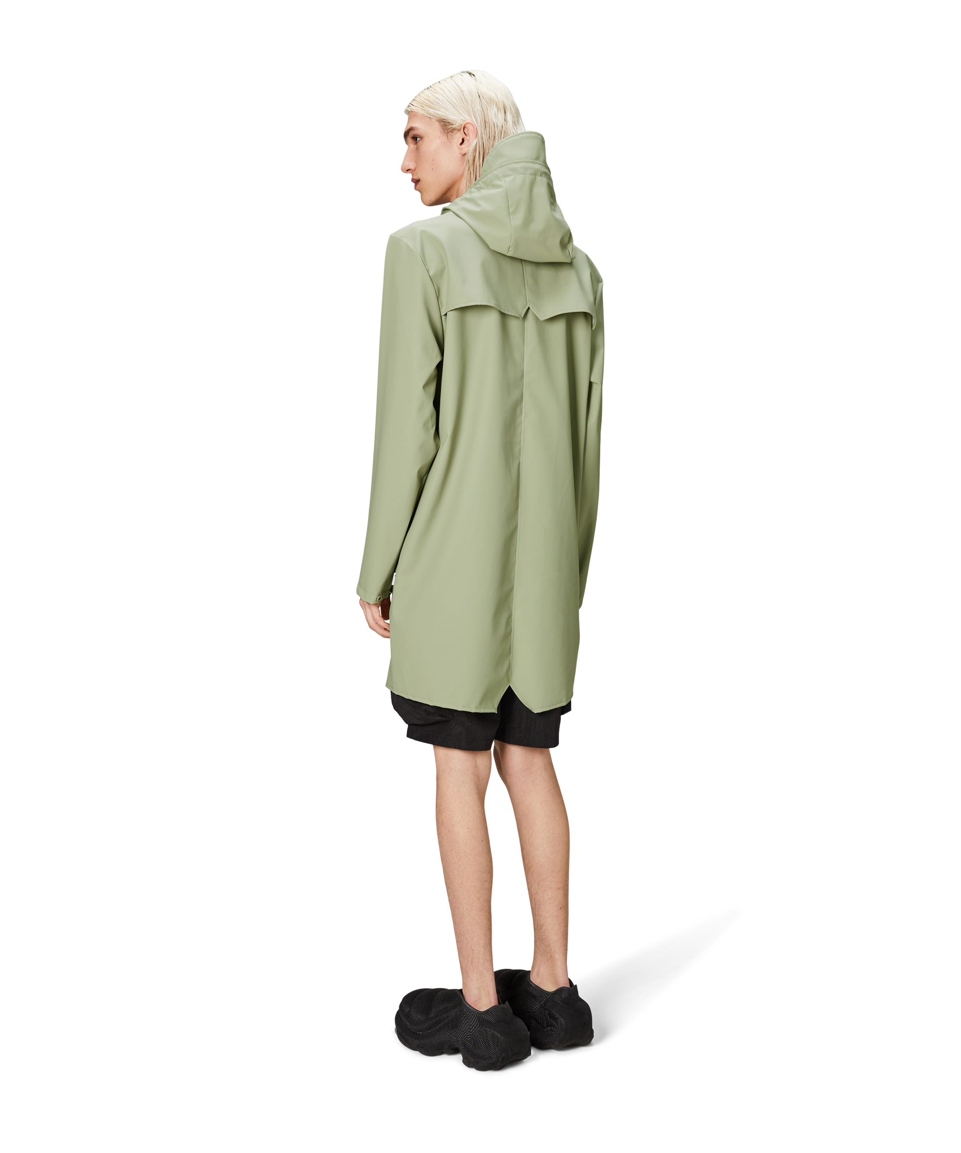 This contemporary unisex jacket is a long version of Rains' classic rain jacket, characterized by a minimal silhouette and high functionality. Featuring a placket with snap fastenings for closure, hood with built-in cap and two side pockets with snaps, it is completed with under-arm eyelets and a back yoke with concealed vents for breathable comfort. The sleeves are finished with snaps for an adjustable fit. The easy-to-wear design features Rains' signature PU fabric and features welded seams, for a lightweight finish and smooth feel.