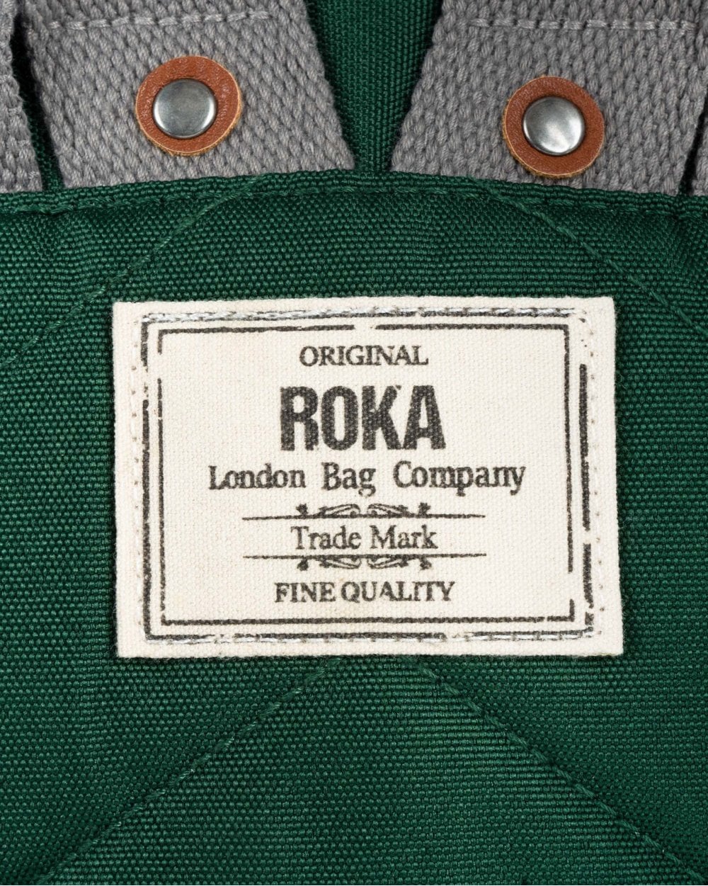 ROKA's Small Recycled Canvas Forest can be carried comfortably on your back or by your side with the hand straps. The Bantry features a front pocket closed by a sturdy zip, a secure inside pocket, and a laptop/tablet sleeve inside. The Recycled Canvas is made from post-consumer waste, that’s used plastic bottles and containers that are cleaned, chipped and spun into polyester yarn. Our recycled (rPET) canvas material has a matte look and textured feel.
