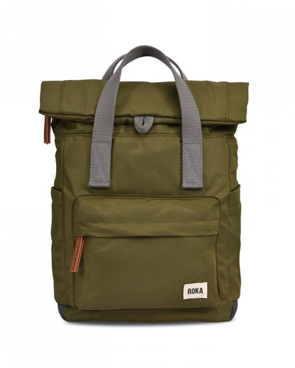 The roll-top design of ROKA's Canfield B enables a wide-mouth opening, complete with chunky zip and magnetic holders and so you roll it over to cover the zip or leave it unrolled if you need to fill this bag to the brim. There’s a secret pocket on the outside and more pockets inside for all your tech things, and the medium and large sizes feature side bottle pockets. No matter the length of the journey, the weather outside, or how many belongings you’re packing, the Canfield B is the ideal travel accessory, commuter bag, school bag, and super practical backpack. The Nylon has a shiny look and smooth feel. With enough space for a 15" laptop, you'll be able to take everything you need anywhere you go. This Medium size has two side water bottle pockets. Size: 42cm x 30cm x 12cm. Capacity: 15 litres.