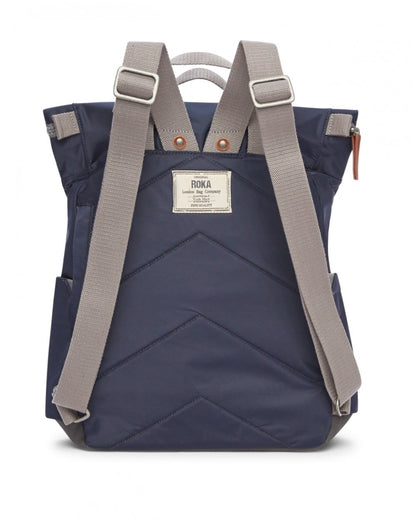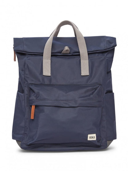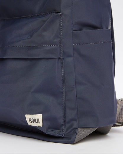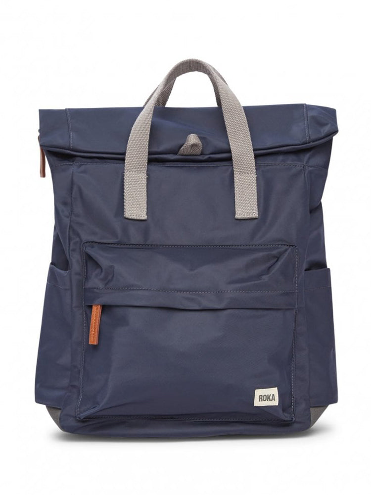 Twelve or more plastic bottles are used to make the recycled (rPET) materials for each Canfield bag, and all ROKA bags are vegan friendly too! The Canfield B Backpack is weather-resistant, durable and sleek, making it perfect for anywhere your day might take you. The roll-top design enables a wide-mouth opening, complete with a zip and a magnetic hold and so you can fill this bag to the brim worry-free. A secure and innovative closing feature, secret wallet pocket, and chunky zip come together to create a secure and trendy backpack. No matter the length of the commute, the weather outside, or how many belongings you’re toting, the Canfield B is the ideal travel accessory, commuter bag, kids school bag, and all round practical backpack. If your laptop or tablet is a bit larger the Medium Canfield B is perfect for you. With enough space for a 15" laptop, you'll be able to take everything you need anywhere you go.