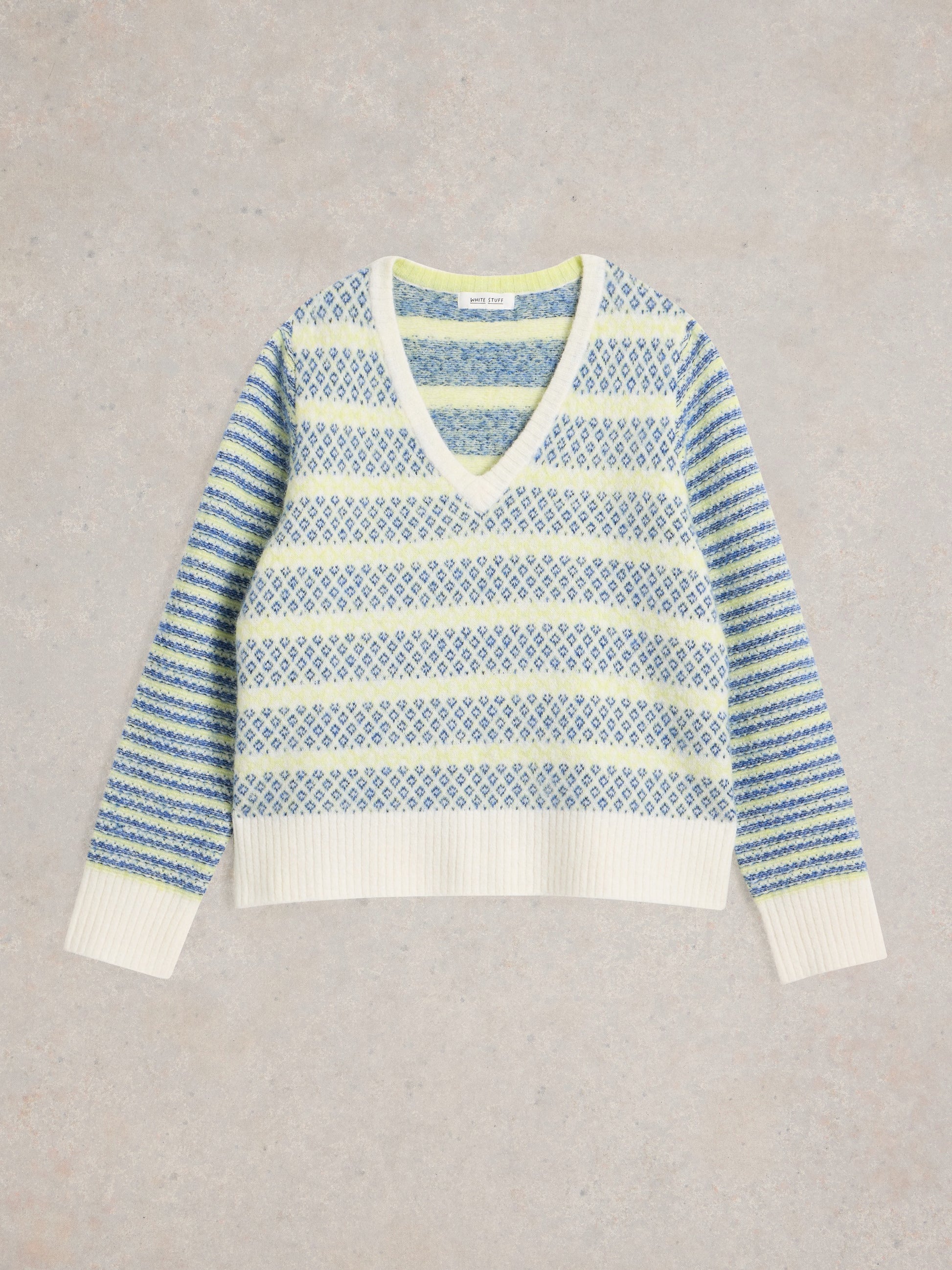 There’s more to the Sammy jumper than first meets the eye. It’s made with responsibly sourced wool and recycled fibres for a start. And those stripes are actually made up of tiny diamond patterns. We think it looks great layered over a shirt.