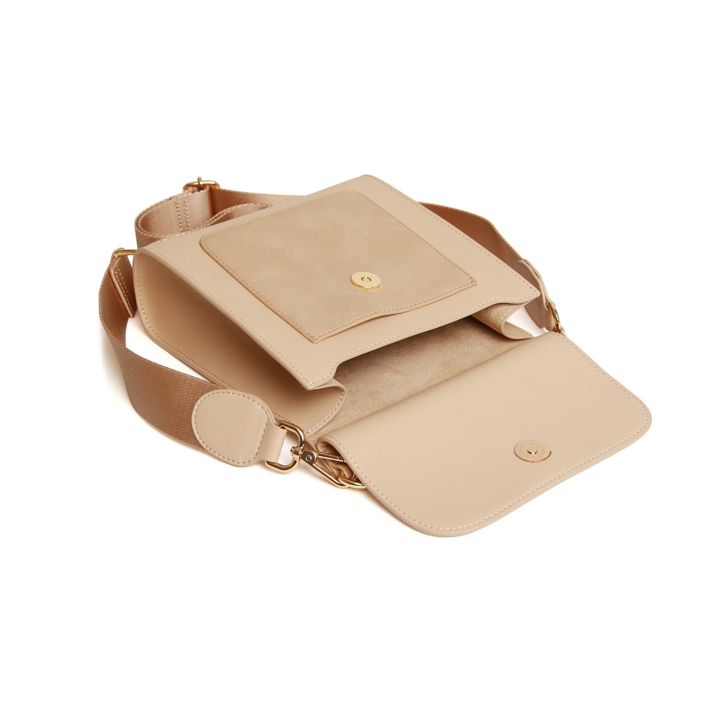 This bag isa twist on our classic Bloomsbury style satchel design with a vegan Nappa material and a suede accent on the front.