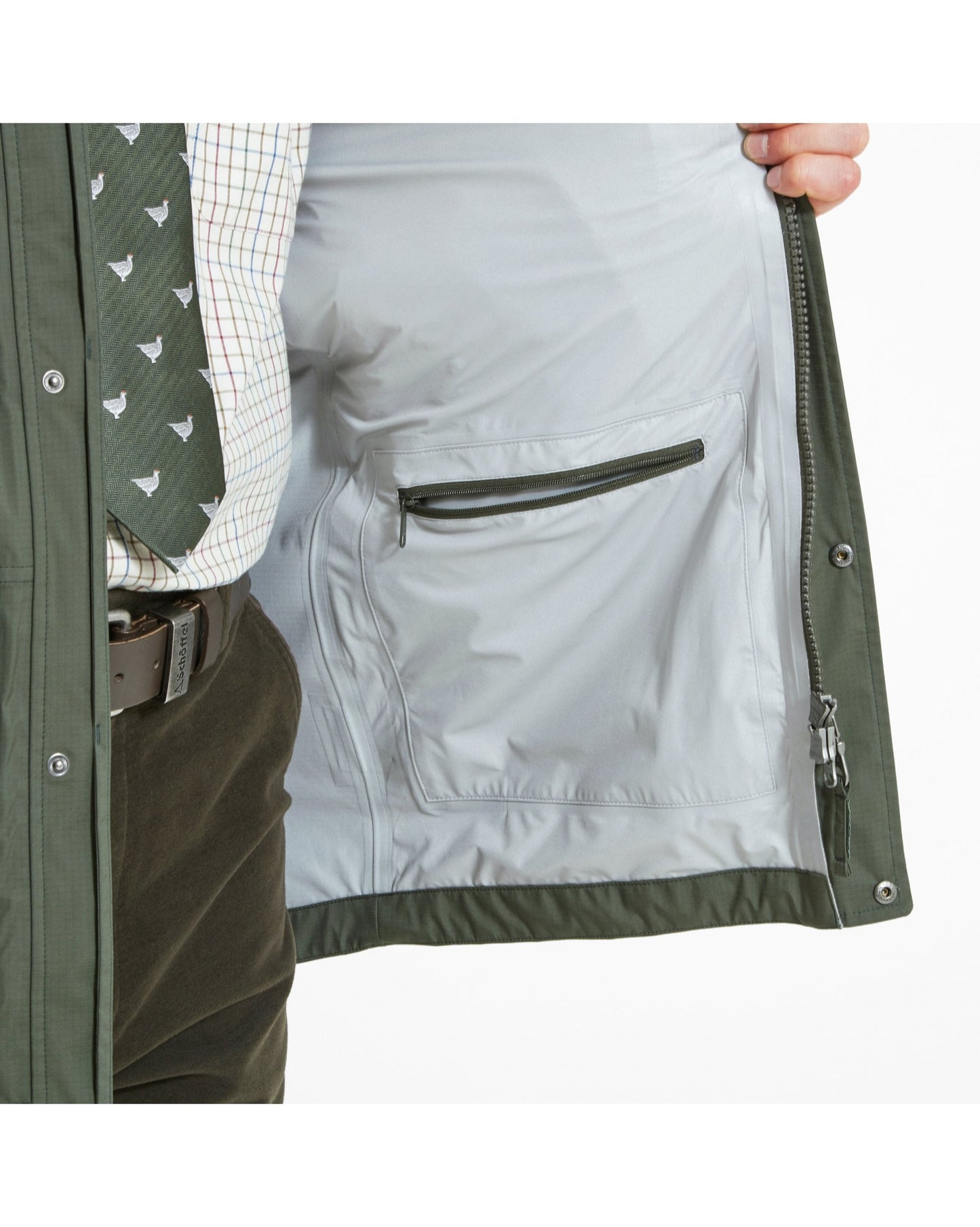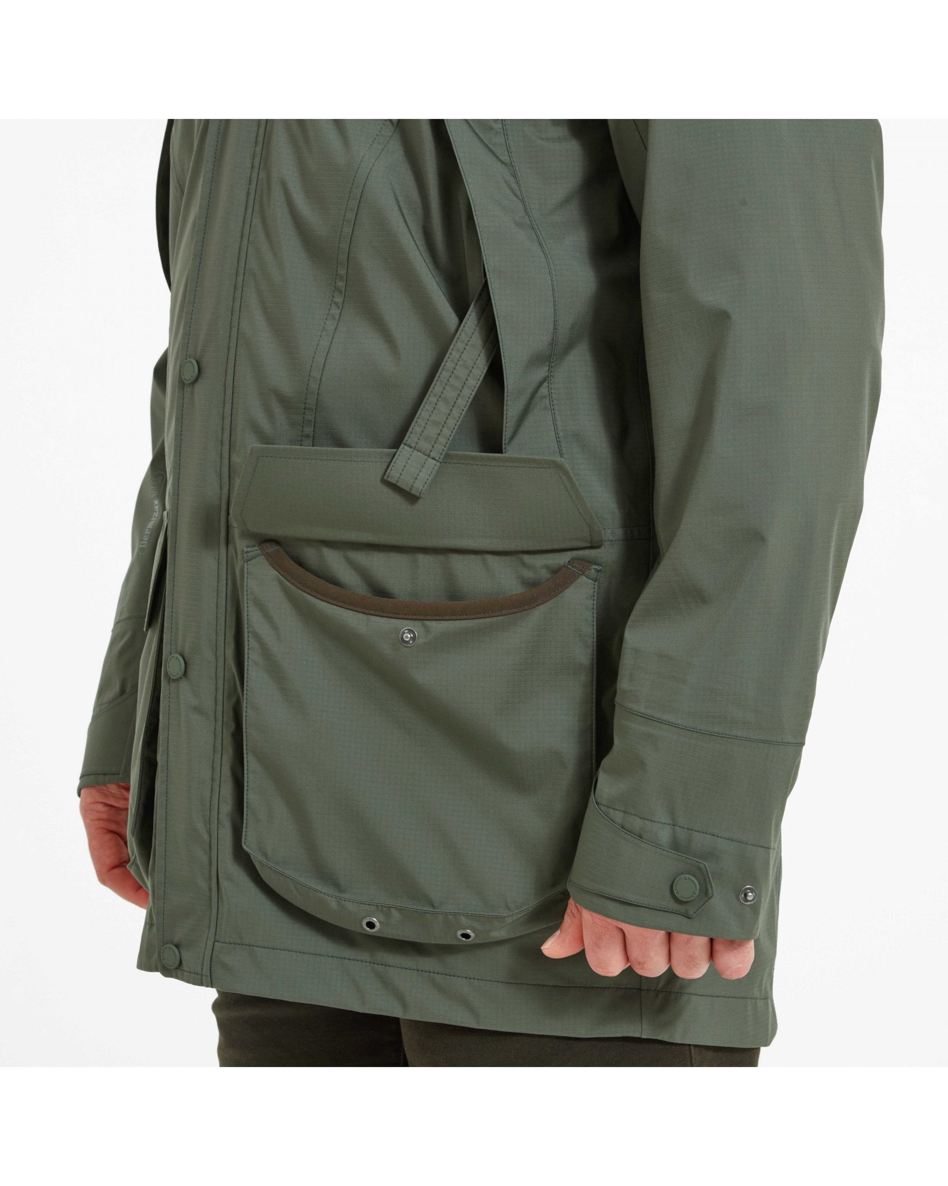 The Ptarmigan Cirrus Coat is a key element of Schöffel’s new season collection. Our lightest weight shooting coat, it's the perfect outer layer for rainy days. Composed from an ultralight, highly breathable 3-layer Dermizax NX with a durable water repellent finish, this coat provides all-weather protection. It’s gorgeously designed with a contemporary sport cut. An underarm gusset provides comfortable lift and complete freedom of movement when shooting. Microfleece-lined-hand-warming pockets and an easily adjustable hood deliver additional protection during stormier days out. Ultralight, versatile and luxurious, the YKK® two-way zipper at the front with popper closure enables quick ventilation and easy wearing.