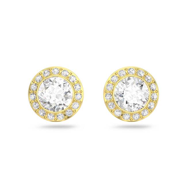 Angelic Stud Pierced Earrings- White and Gold Tone