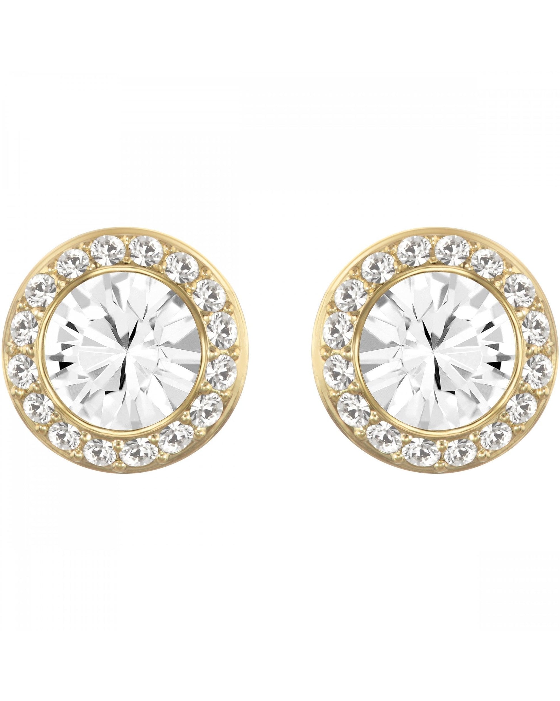 This classic pair of pierced earrings will enhance any outfit with their timeless and elegant design. The gold-tone plated design displays a single clear crystal framed in pavé for beautiful sparkle. Pair with the matching bracelet and necklace to complete the look. Perfect for gift giving.
