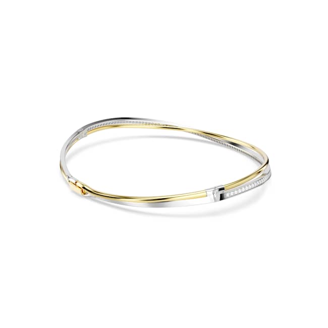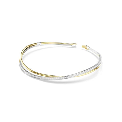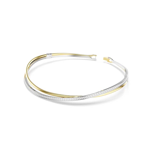 A double dose of luxury, this refined Swarovski necklace features two overlapping bands in contrasting colours. A gold-tone plated strand is interwoven with a rhodium plated strand, adorned with round-cut Swarovski Zirconia in a radiant channel setting. A mesmerising fusion of mixed metals that pairs beautifully with a matching Hyperbola range.