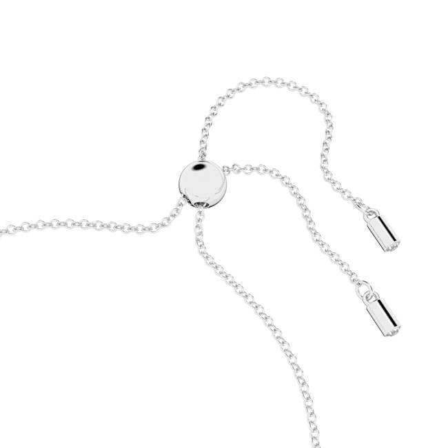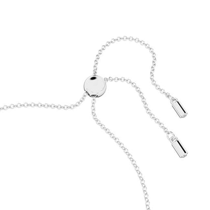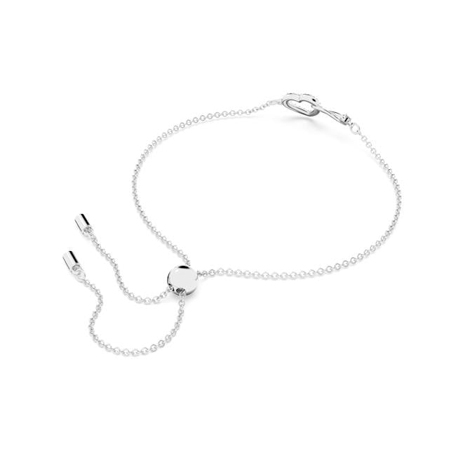 This rhodium-plated bracelet by Swarovski is an expression of eternal love. It features a twin element showing a heart and an infinity symbol intertwined. A single, bright stone adorns the infinity symbol, adding a brilliant touch to the design. This Swarovski bracelet is the perfect gift for an important woman in your life.